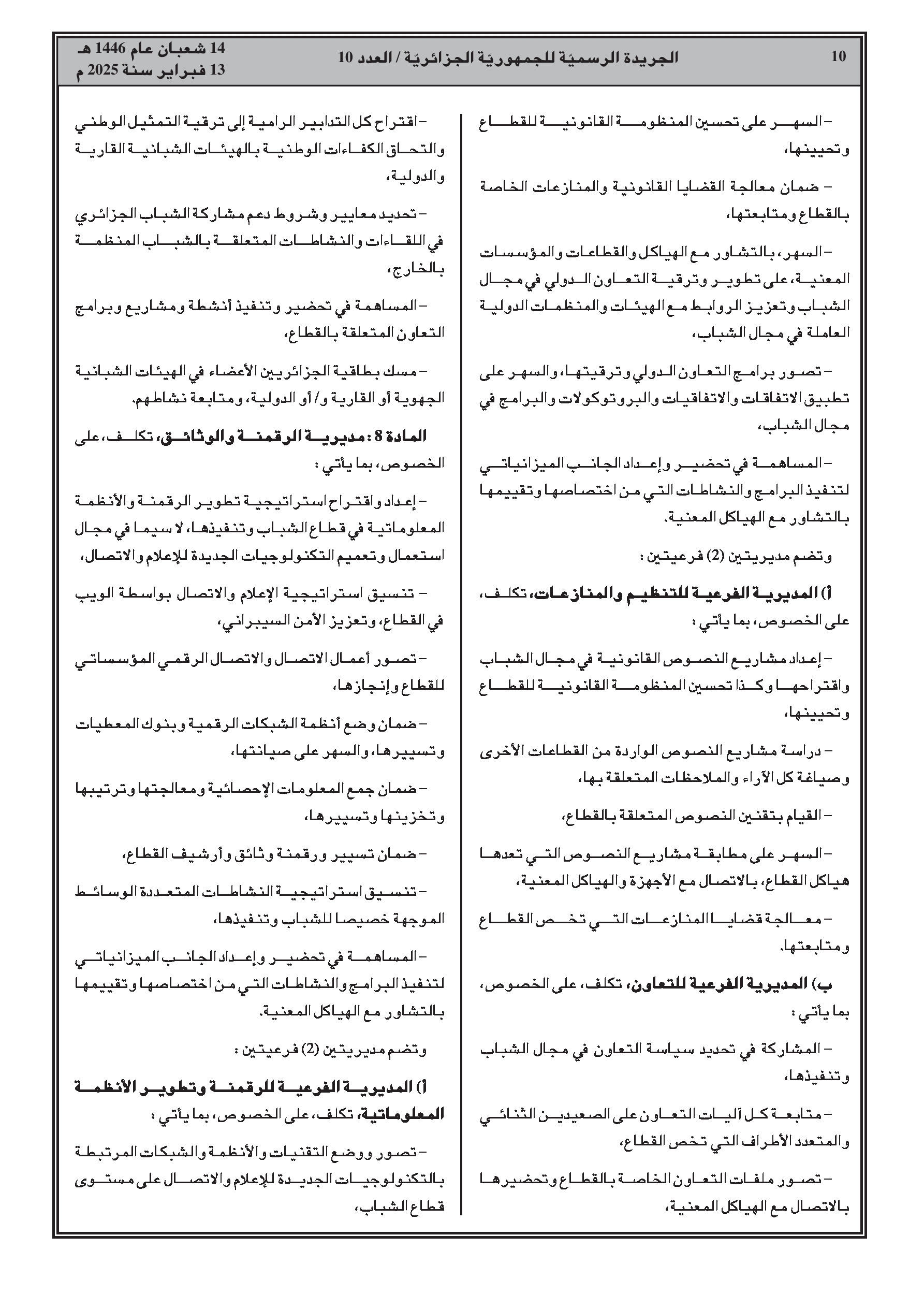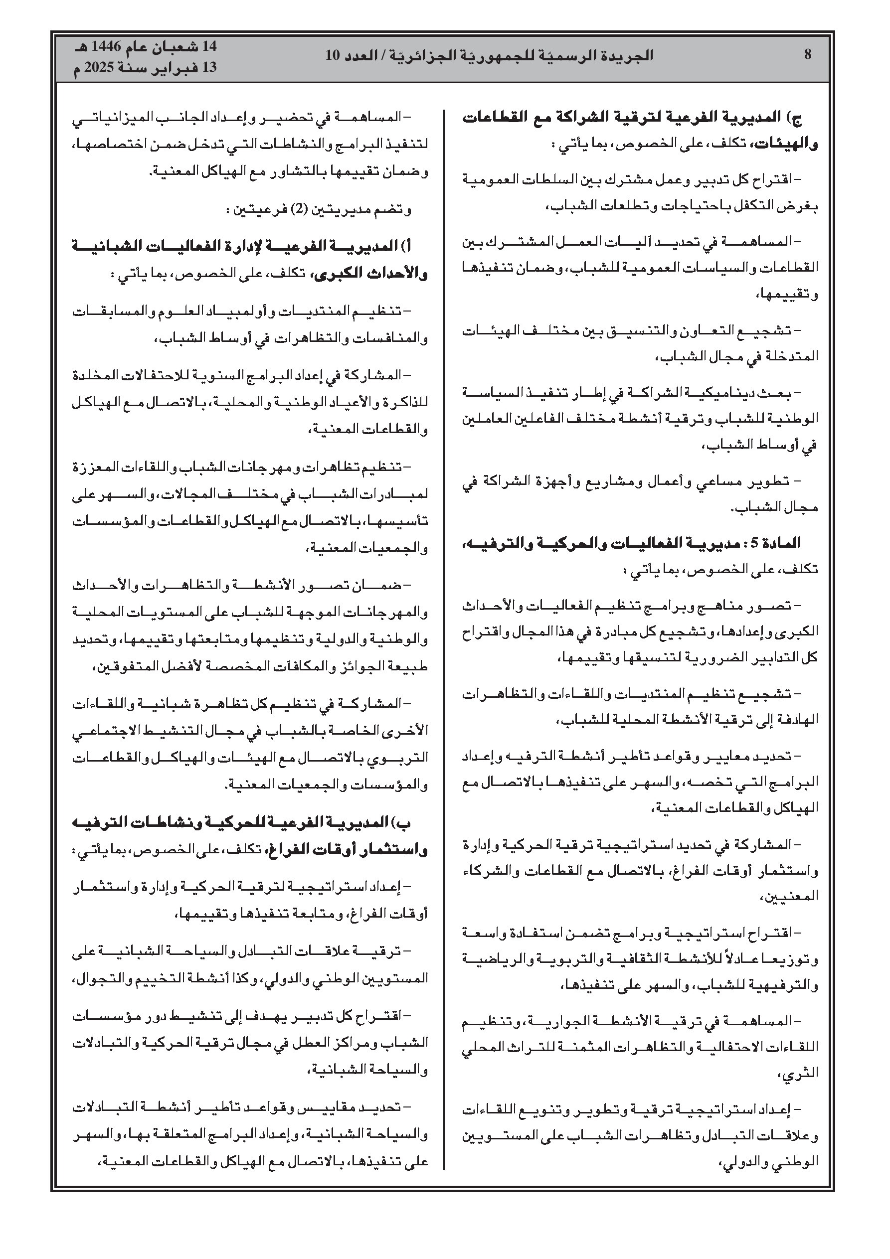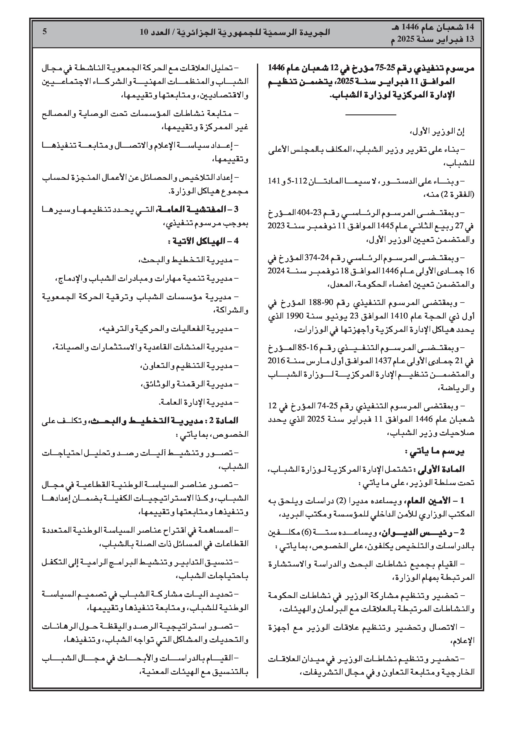 المرسوم التنفيذي رقم 25-75 يحدد الهيكل التنظيمي للإدارة المركزية لوزارة الشباب.