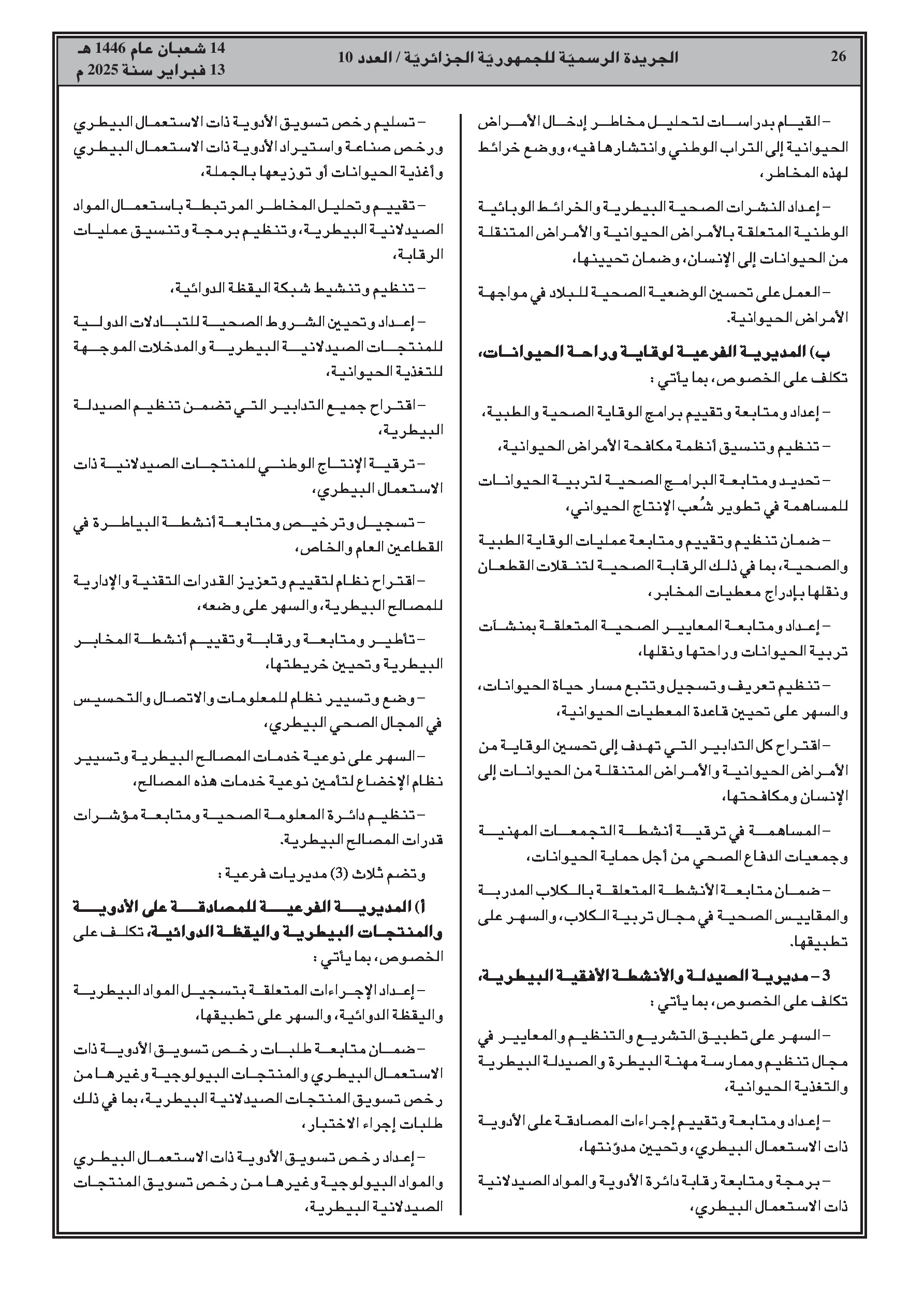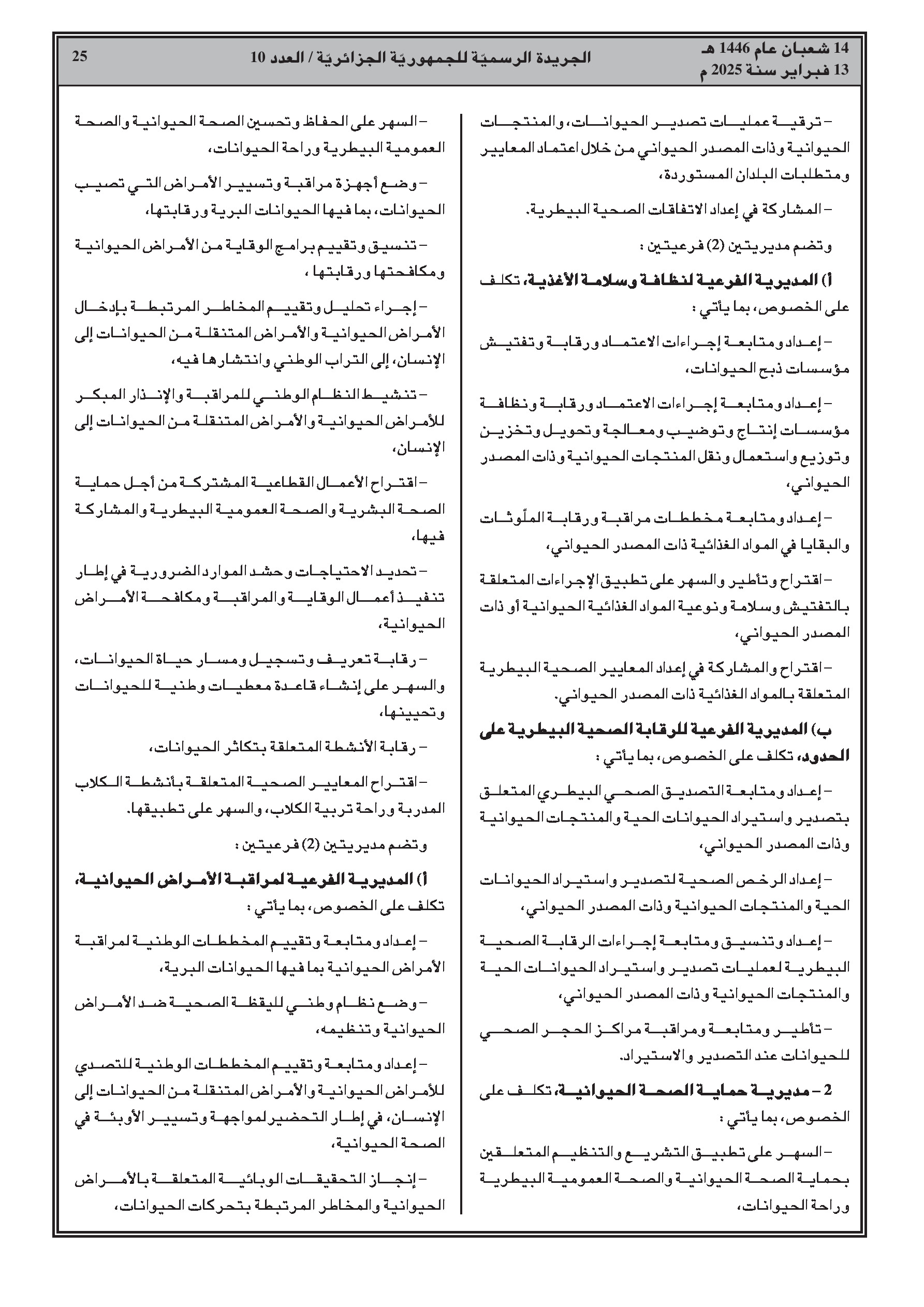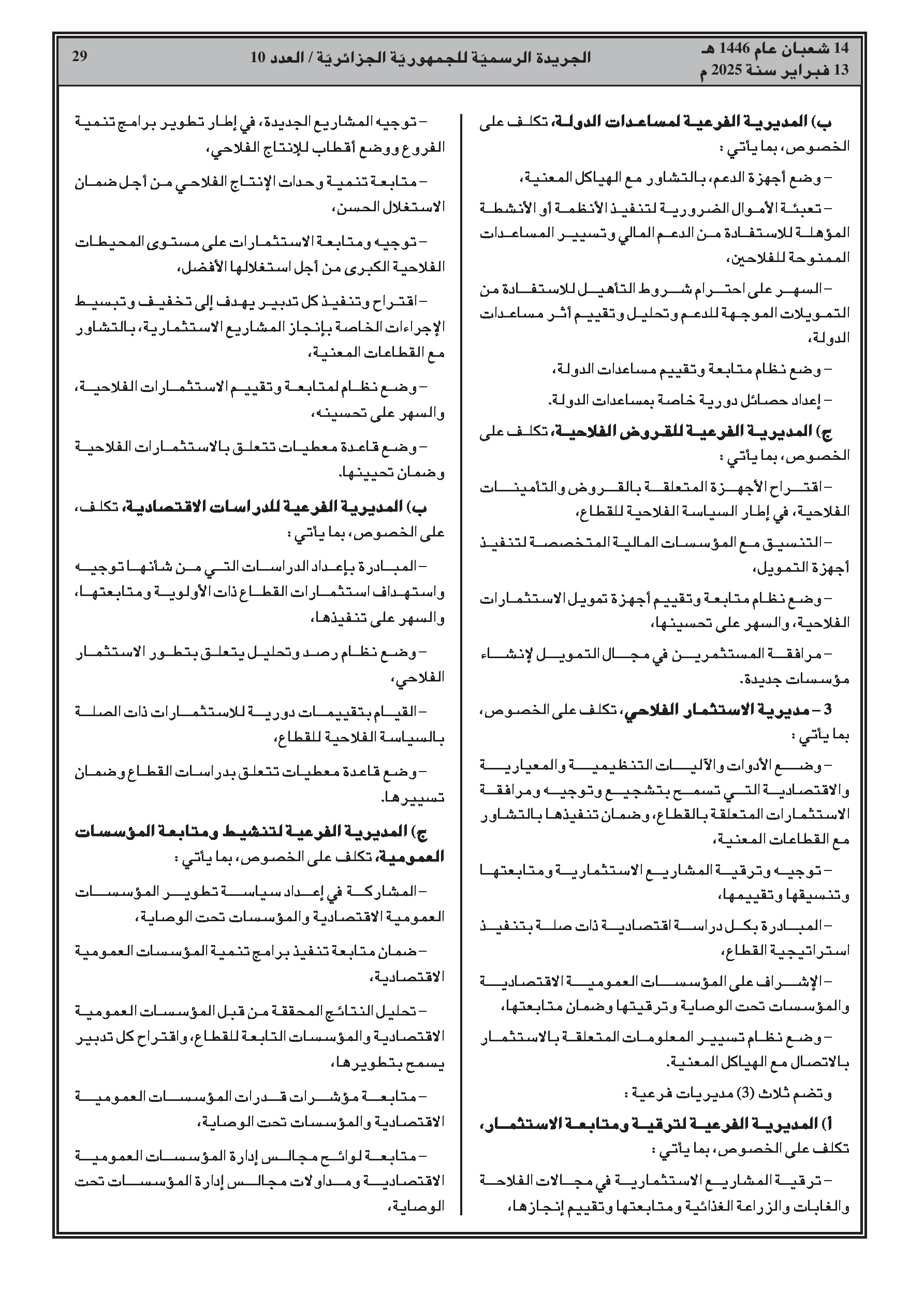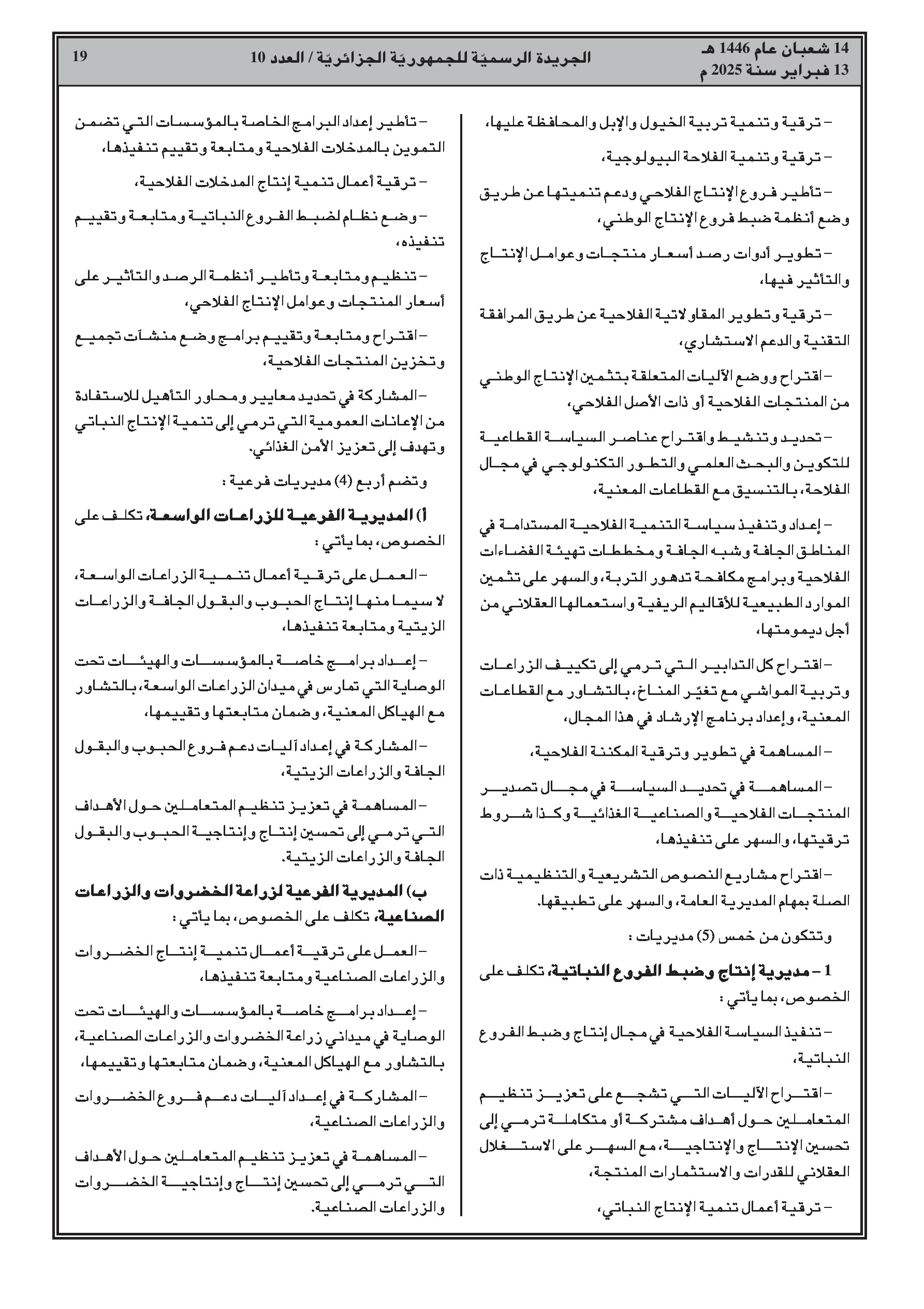 المرسوم التنفيذي رقم 25-76 يحدد صلاحيات وزير الفلاحة والتنمية الريفية والصيد البحري، وتشمل الفلاحة، التنمية الريفية، الغابات، الصيد البحري، وتربية المائيات.