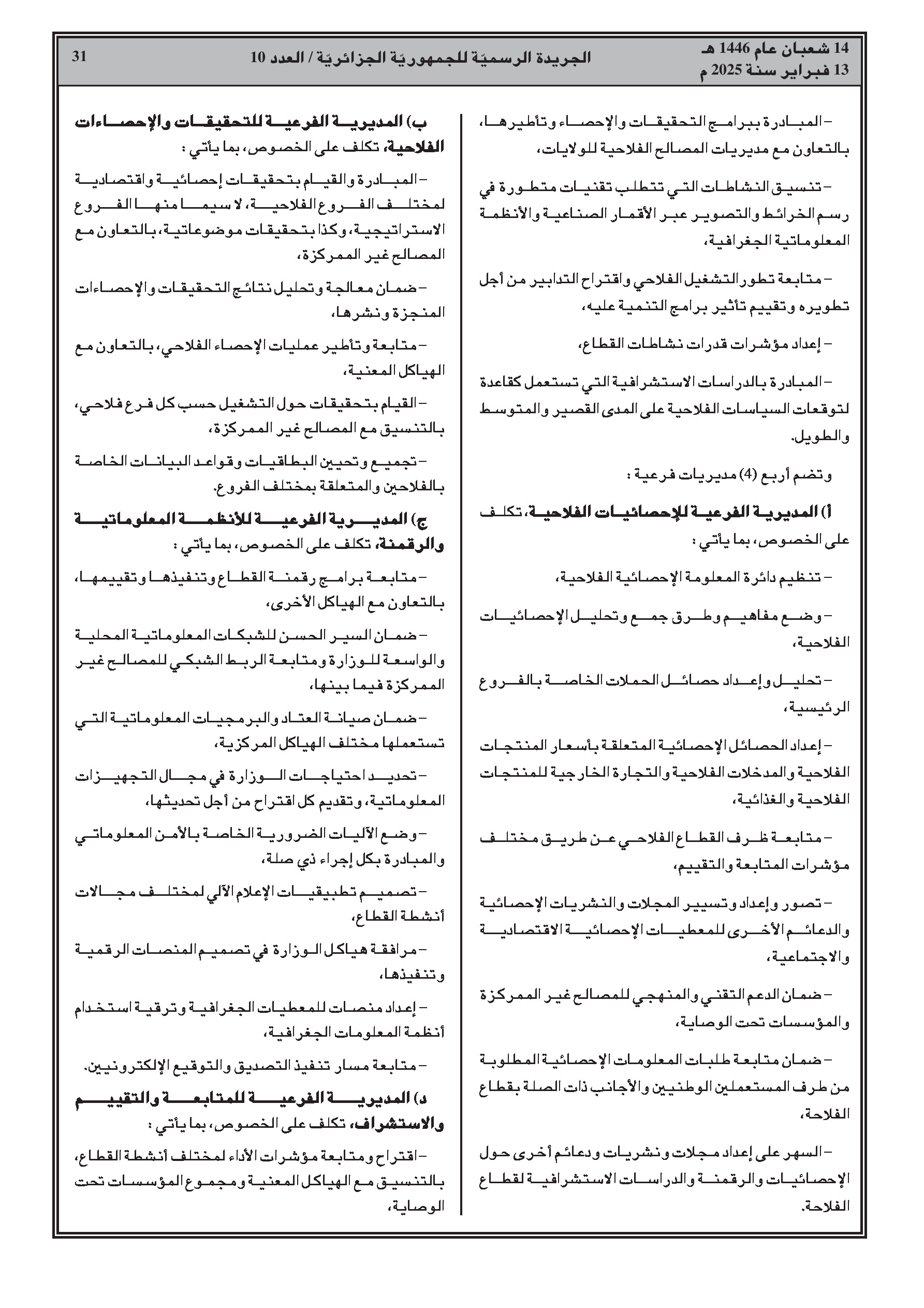 المرسوم التنفيذي رقم 25-77 يفصل تنظيم الإدارة المركزية لوزارة الفلاحة والتنمية الريفية والصيد البحري.