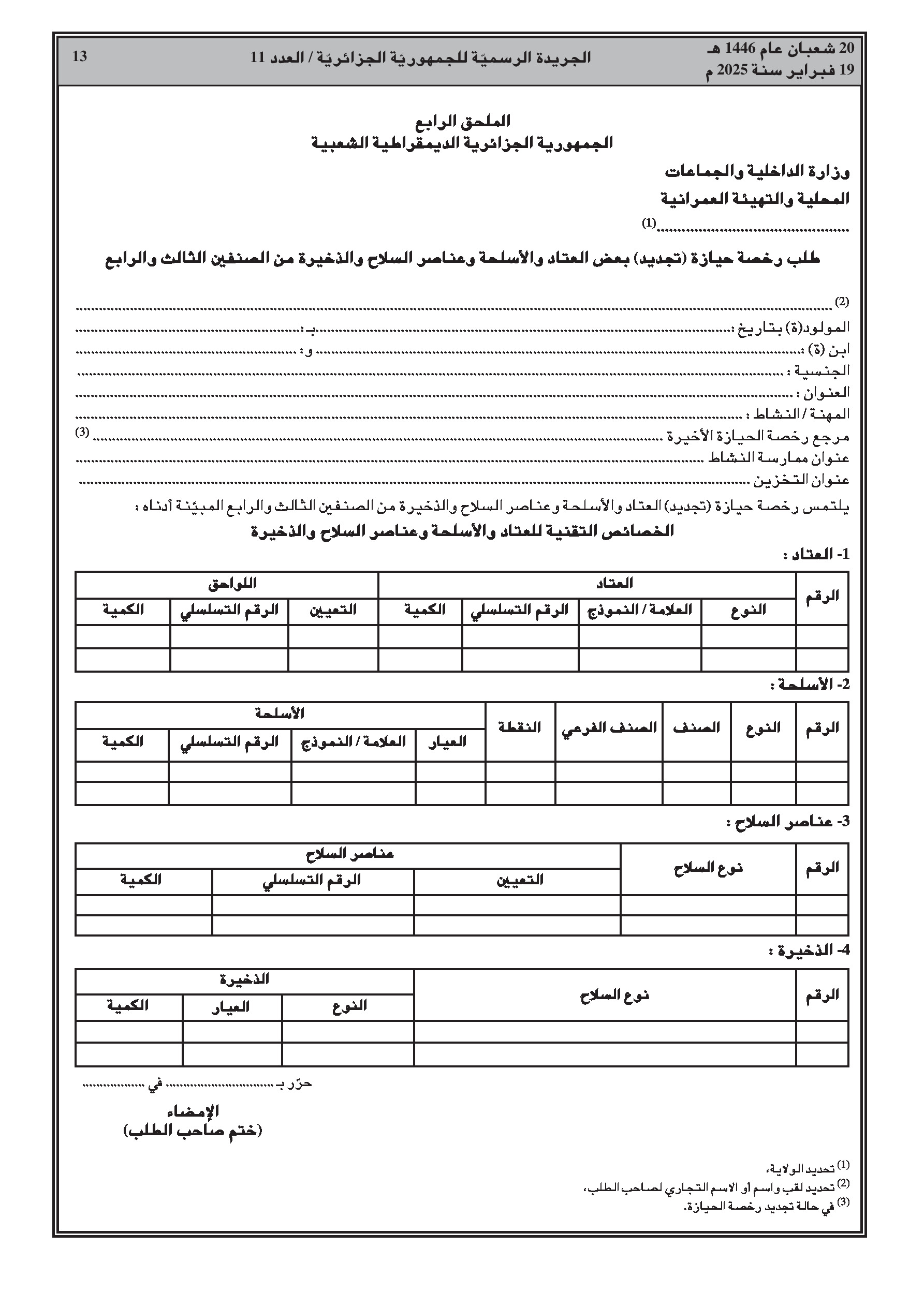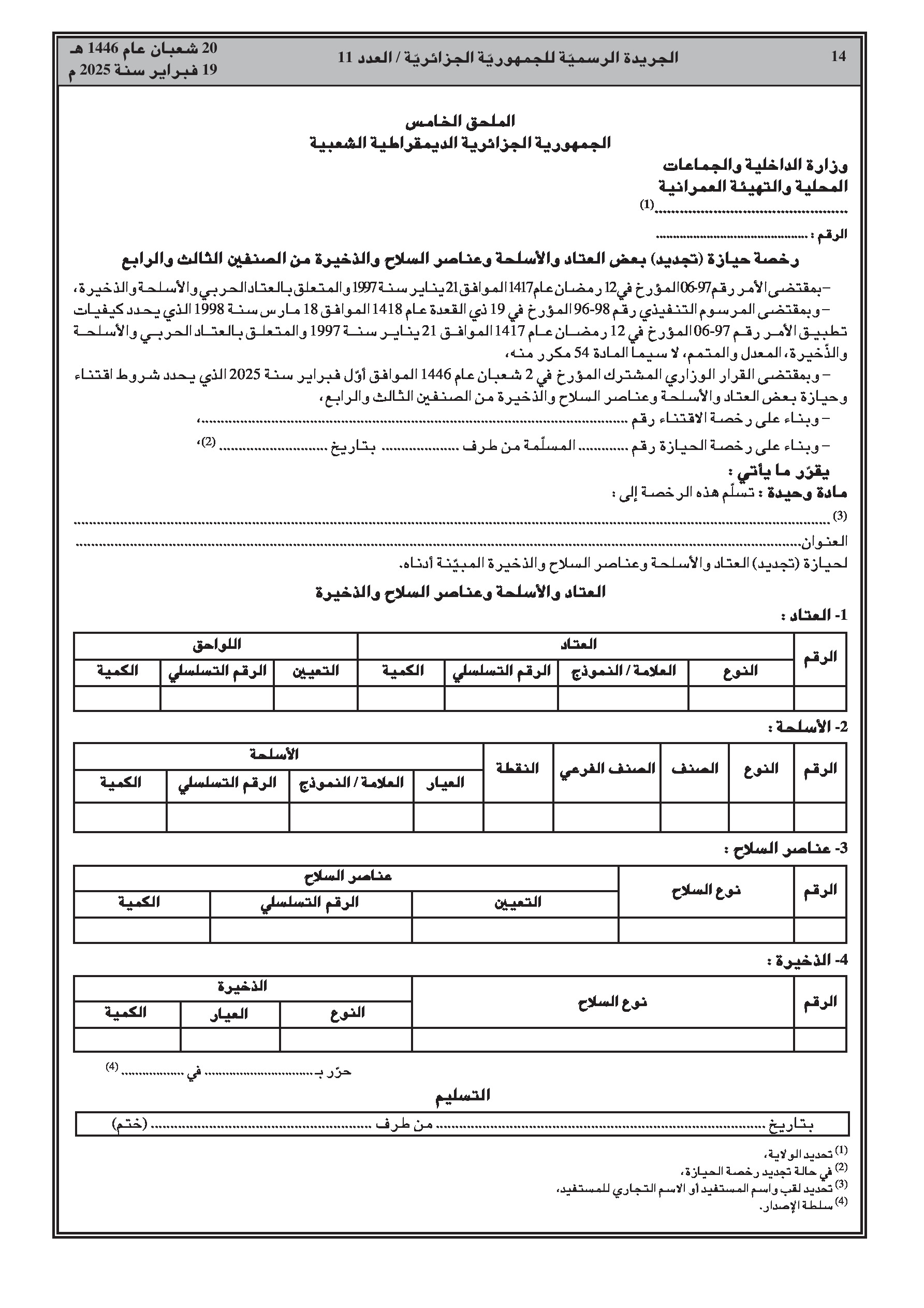 تنظيمات جديدة لحيازة وحمل الأسلحة من الصنفين 3 و4.