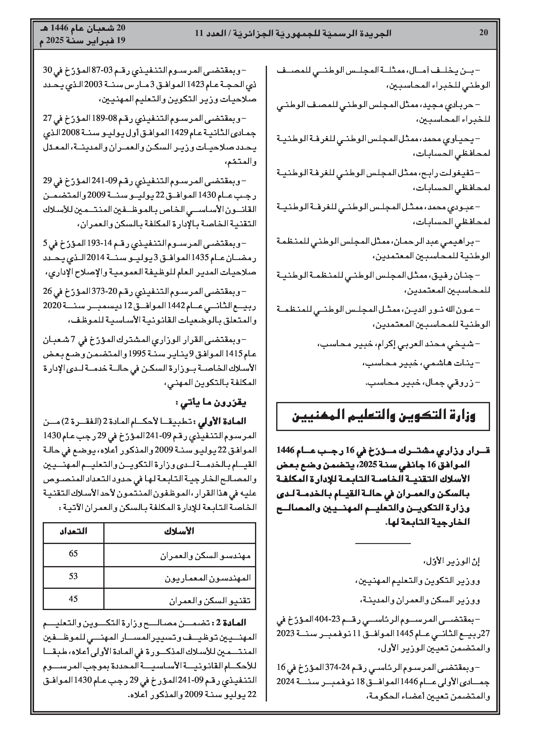 - قرار وزاري مشترك يتعلق بوضع بعض الأسلاك التقنية الخاصة التابعة للإدارة المكلفة بالسكن والعمران في حالة نشاط لدى وزارة التكوين والتعليم المهنيين والمصالح الخارجية التابعة لها.