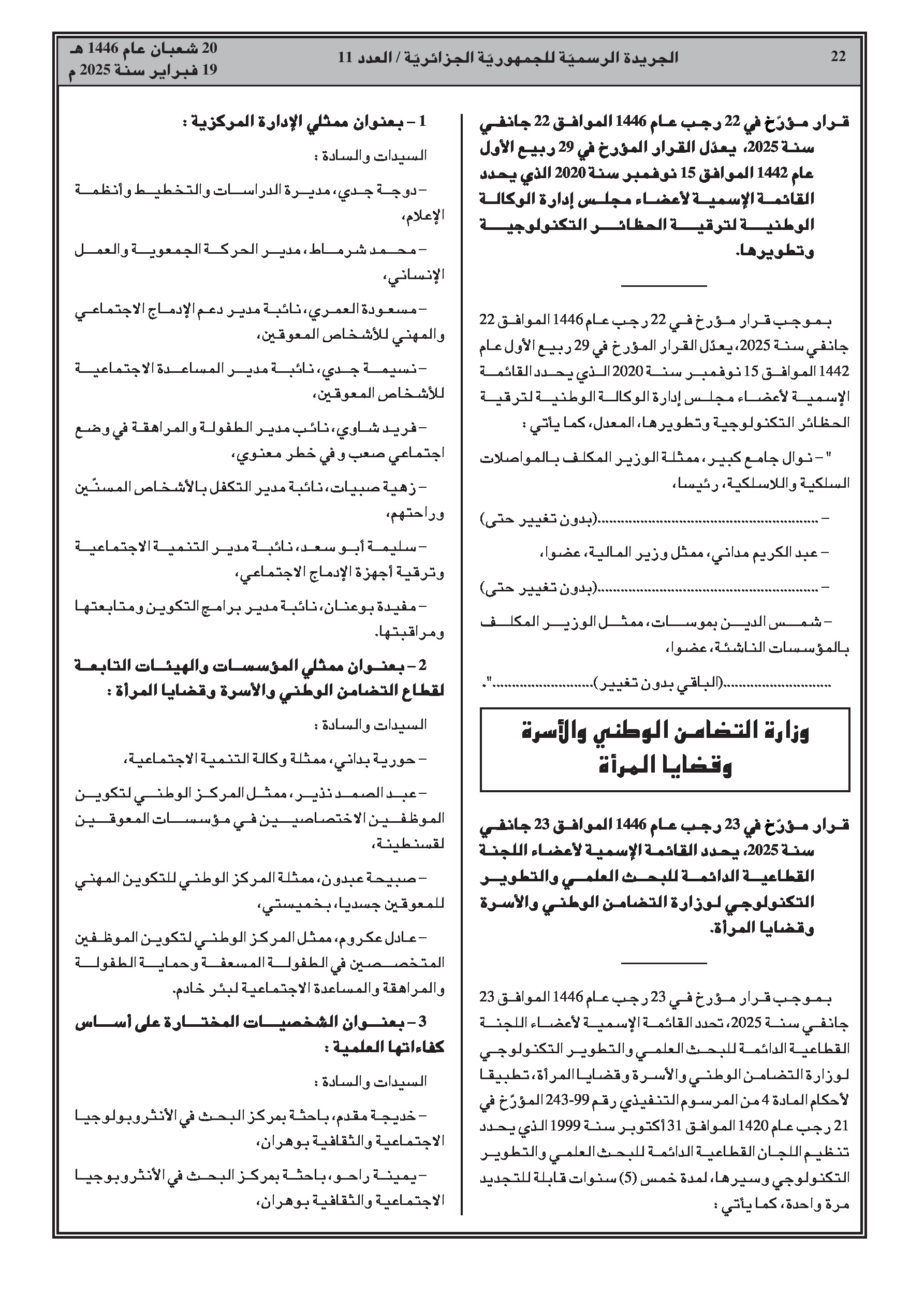 - قرار يحدد القائمة الاسمية لأعضاء اللجنة القطاعية الدائمة للبحث العلمي والتطوير التكنولوجي لوزارة التضامن الوطني والأسرة وقضايا المرأة.