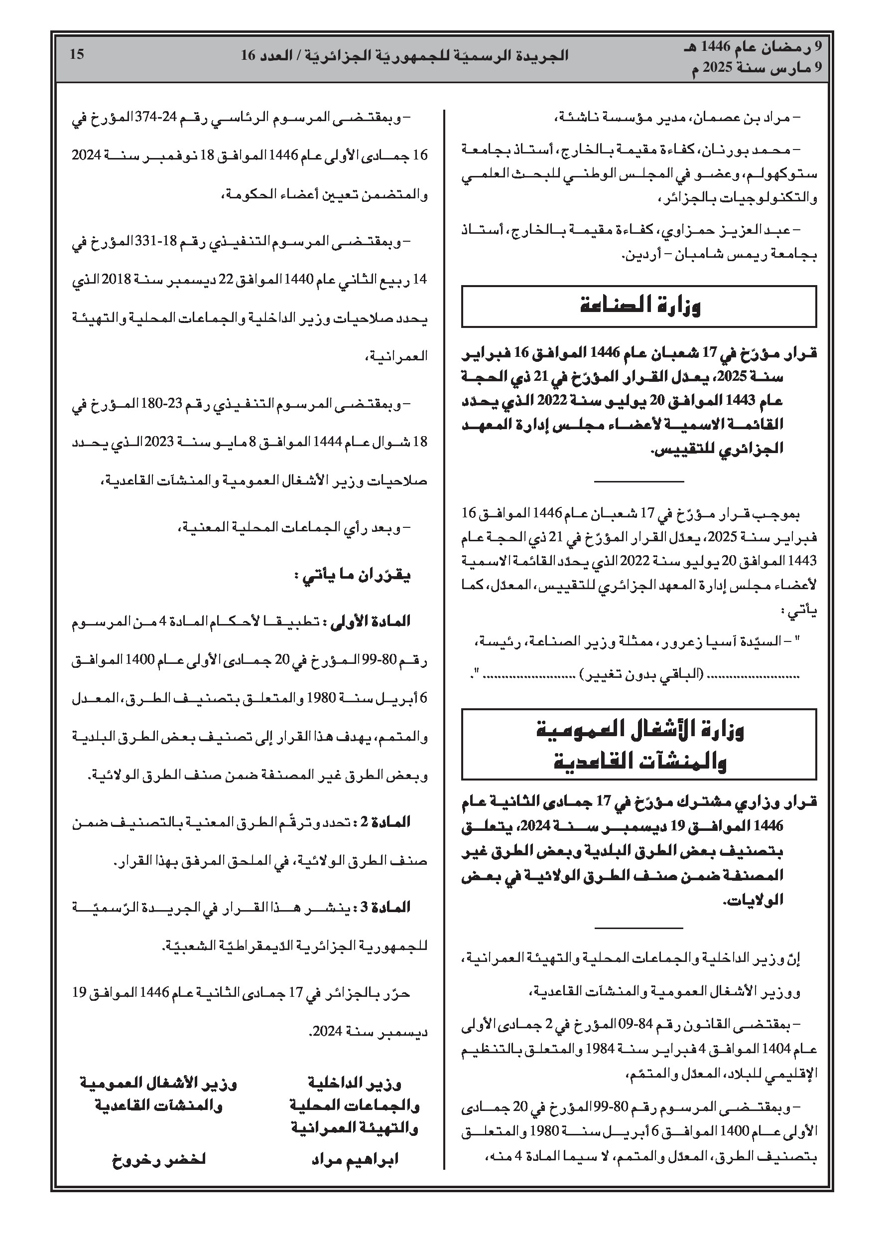 العدد 16 الأمانة العامة للحكومة الجزائرية