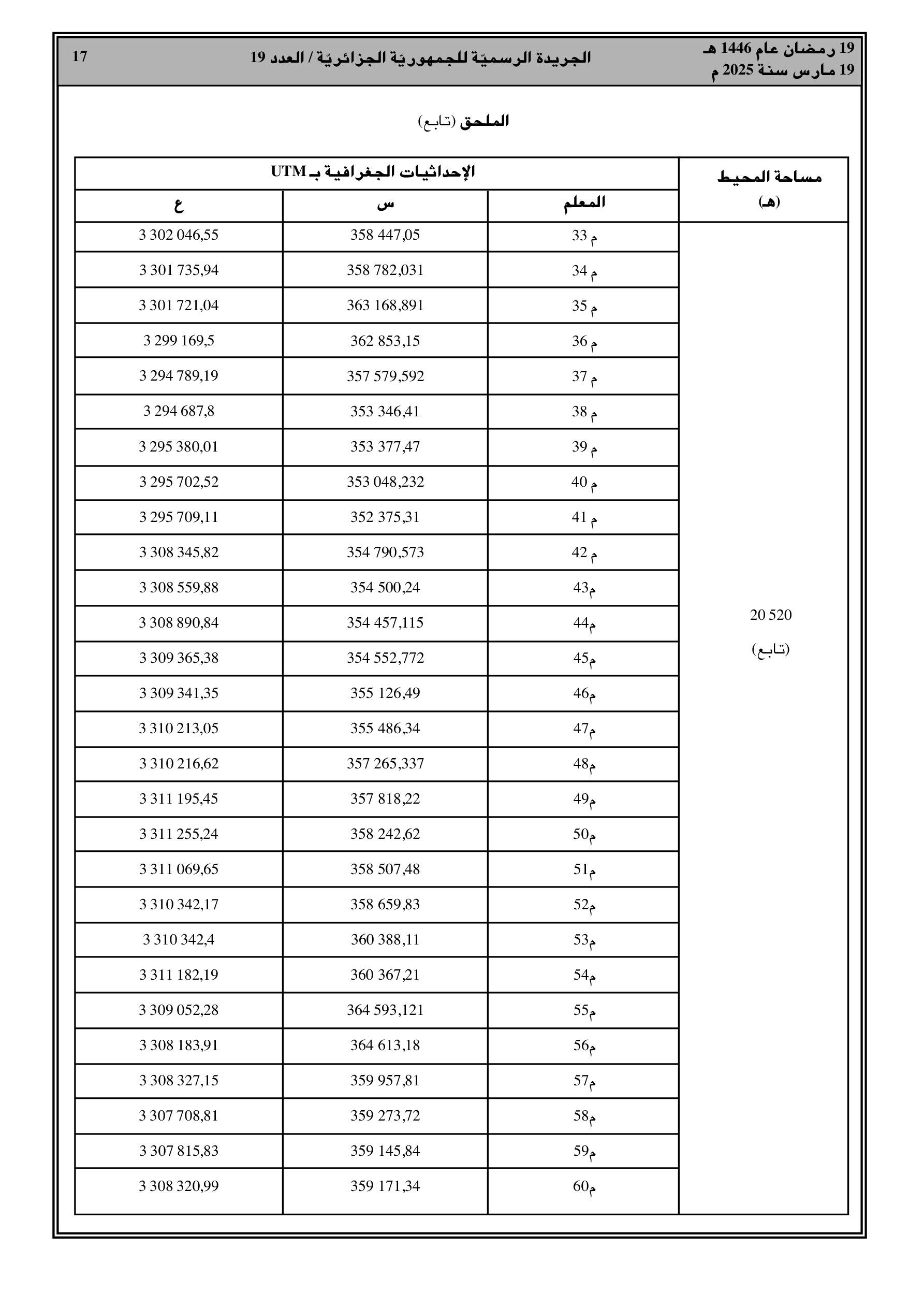 يكمل هذا القرار الوزاري المشترك (المالية، الفلاحة، الري) الملحق الخاص بالقرار الوزاري المشترك المؤرخ في 5 ماي 2021. يضيف مساحة 6728 هكتارًا إلى محيط 29272 هكتارًا، ومحيطًا جديدًا بمساحة 20520 هكتارًا بولاية تيميمون، لفائدة ديوان تنمية الفلاحة الصناعية بالأراضي الصحراوية. يتضمن القرار الإحداثيات الجغرافية لهذه المساحات.