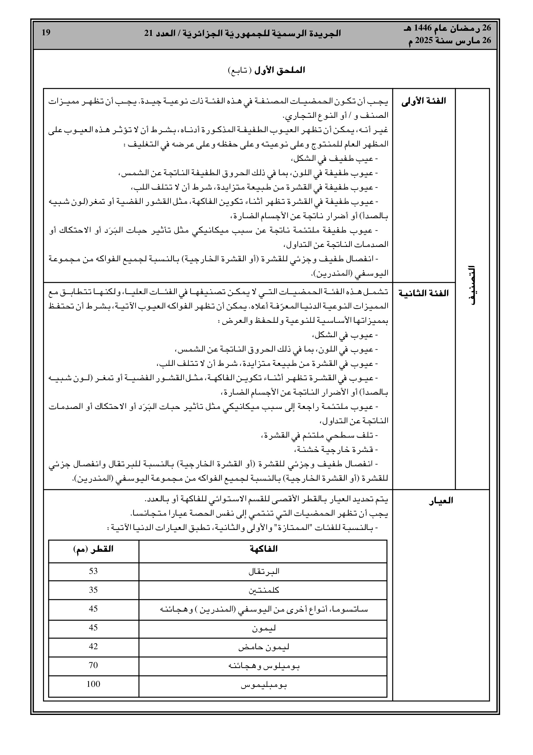 لوائح فنية جديدة تحدد معايير جودة وعرض وتوسيم الفواكه والخضر الطازجة.