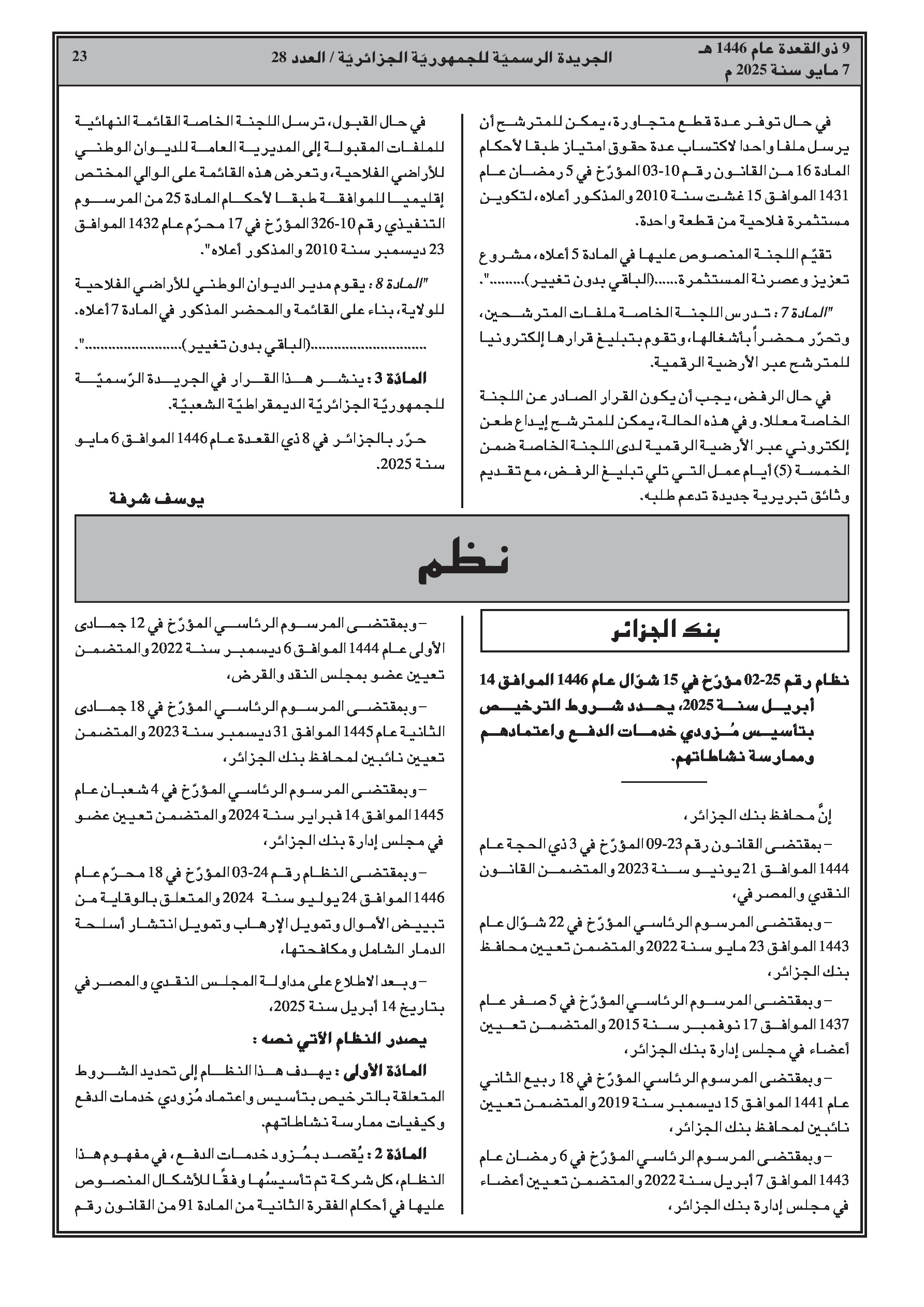 نظام بنك الجزائر رقم 25-02 يحدد الشروط المتعلقة بترخيص وتأسيس واعتماد وممارسة نشاطات مقدمي خدمات الدفع (PSP).