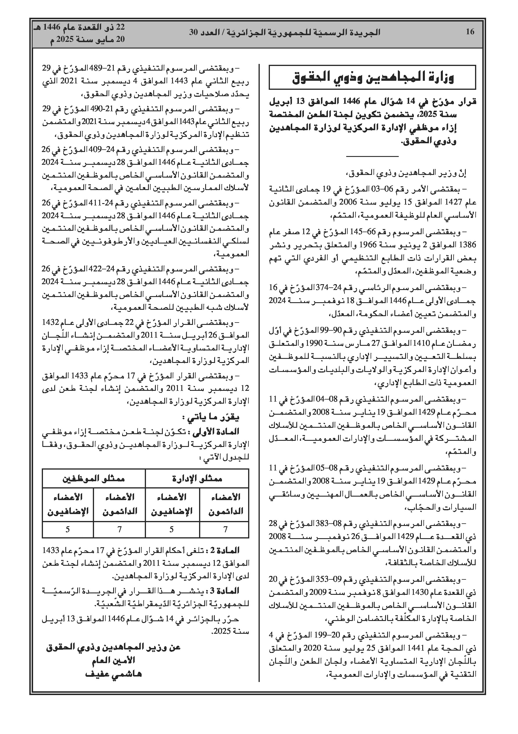 - المجاهدين: تأسيس لجنة طعون للموظفين.