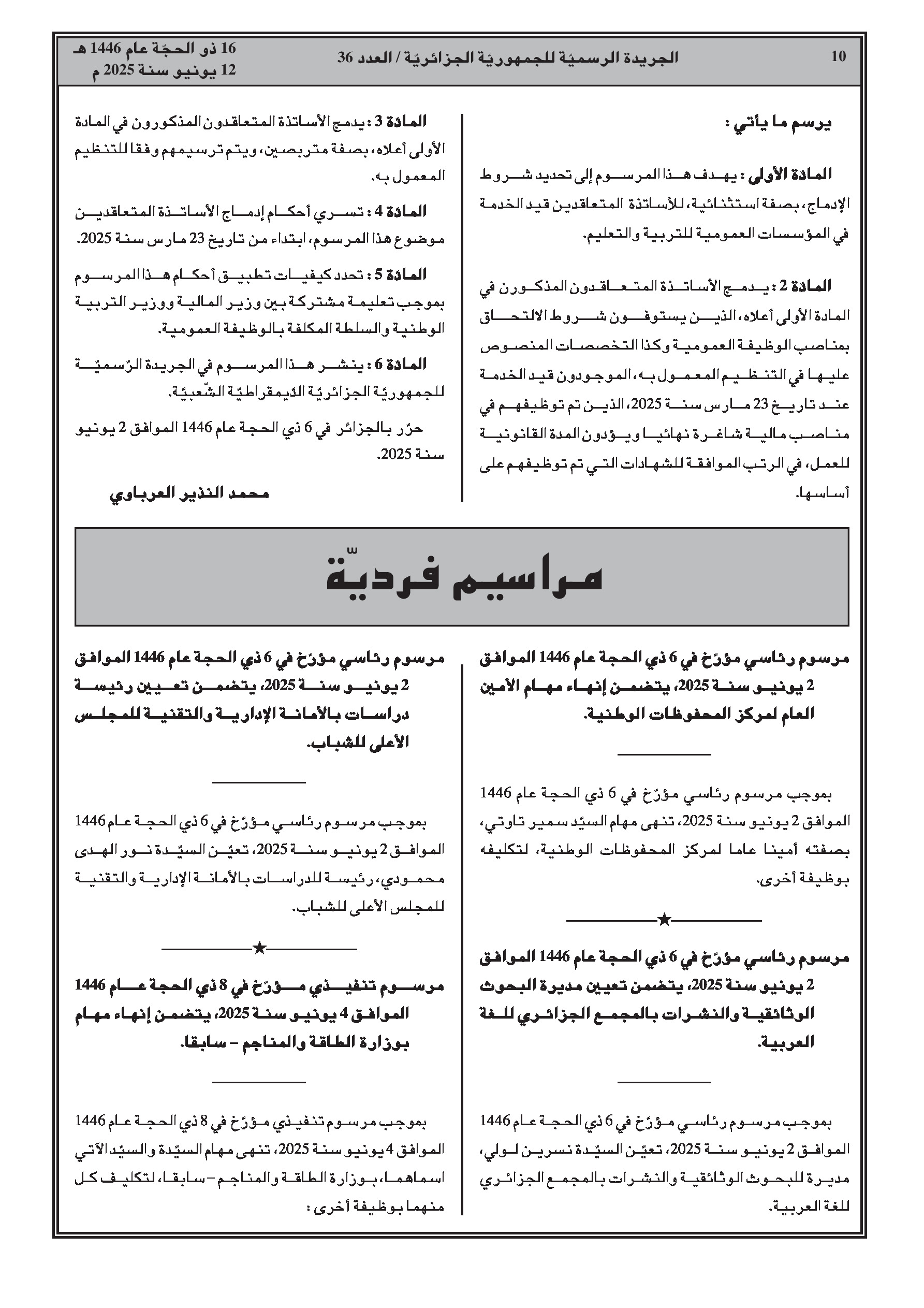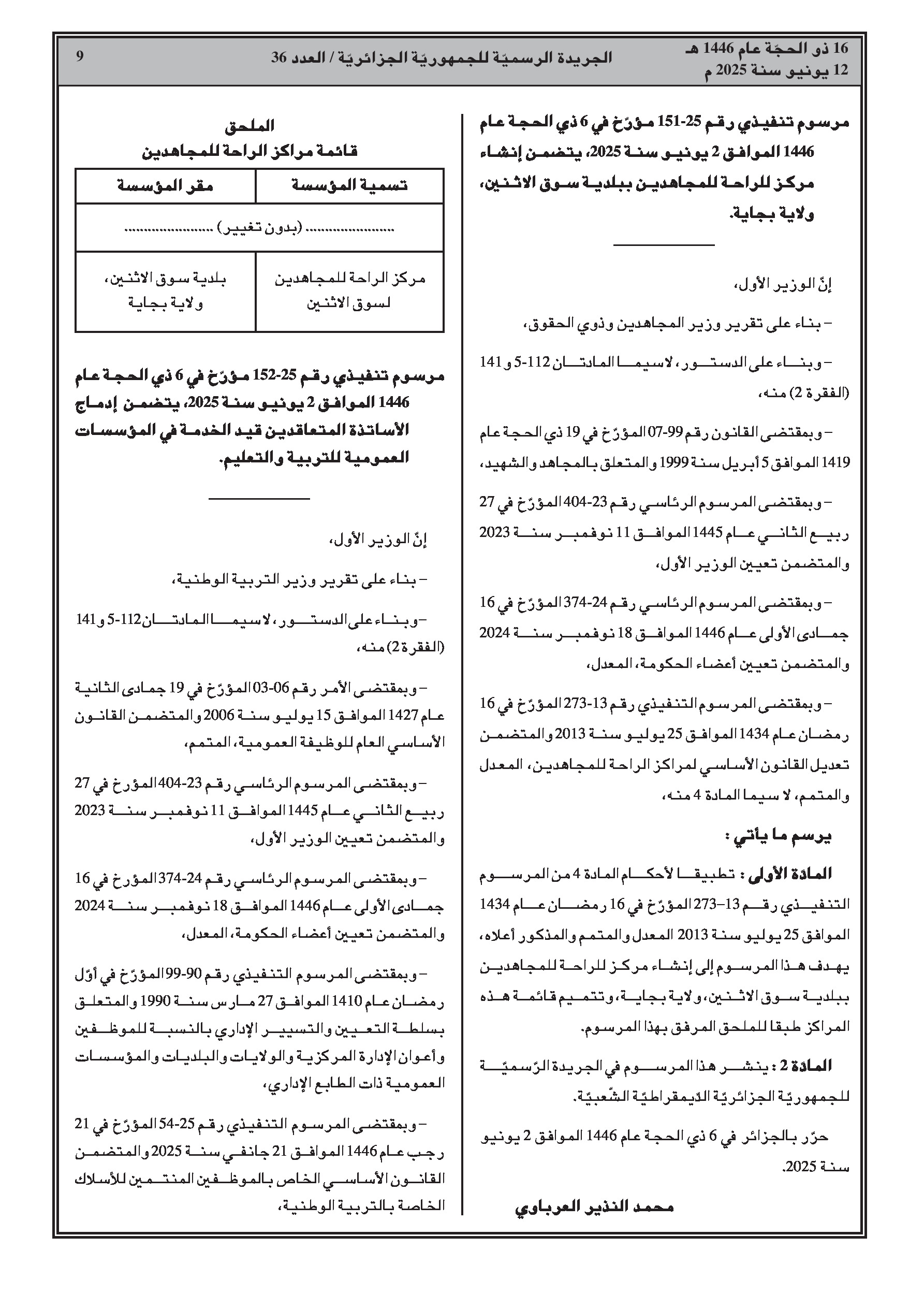 العدد 36 الأمانة العامة للحكومة الجزائرية