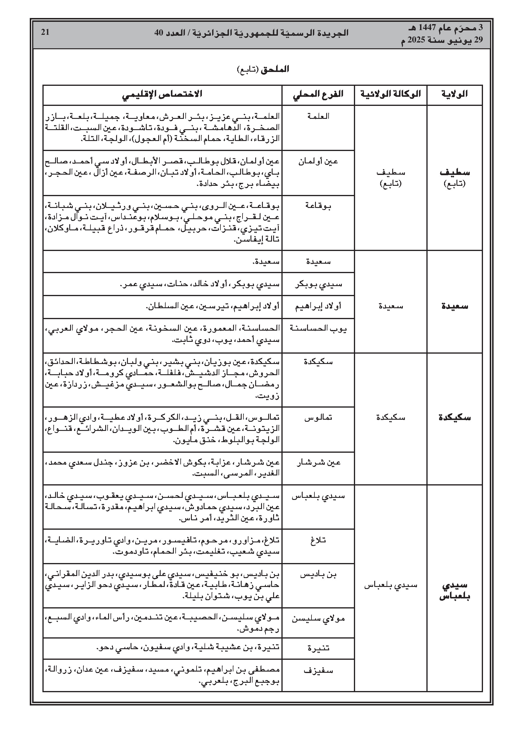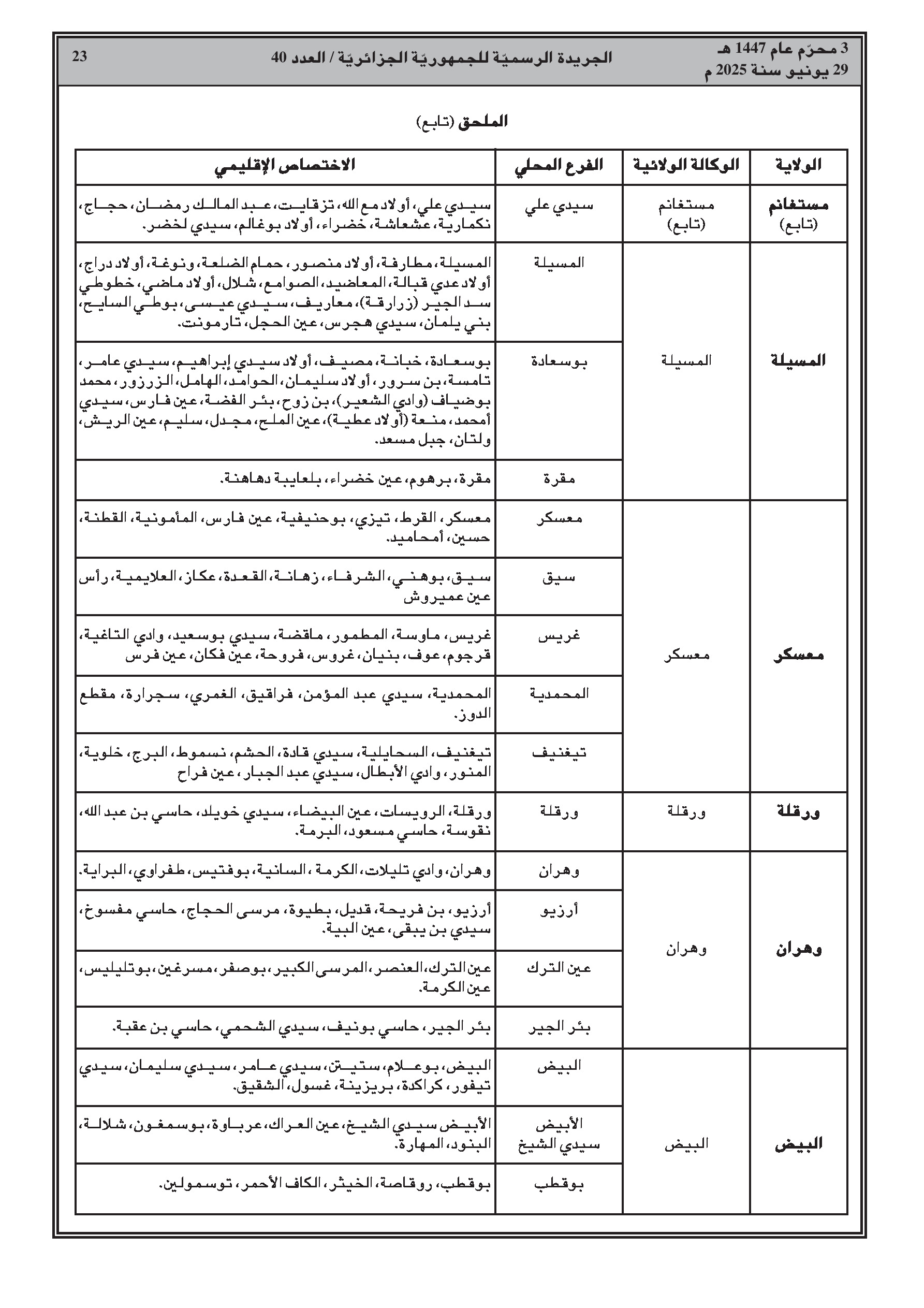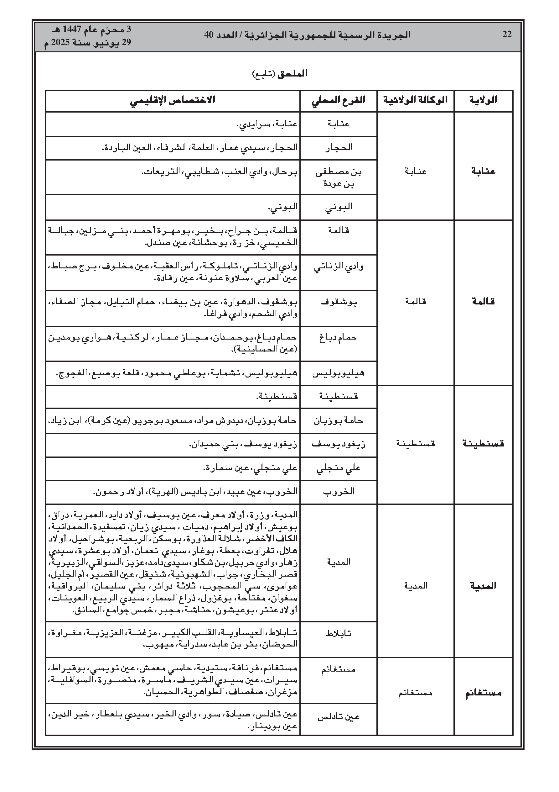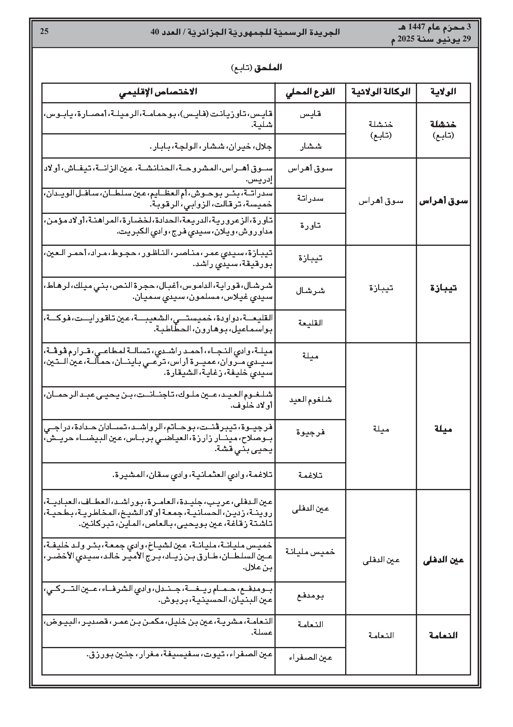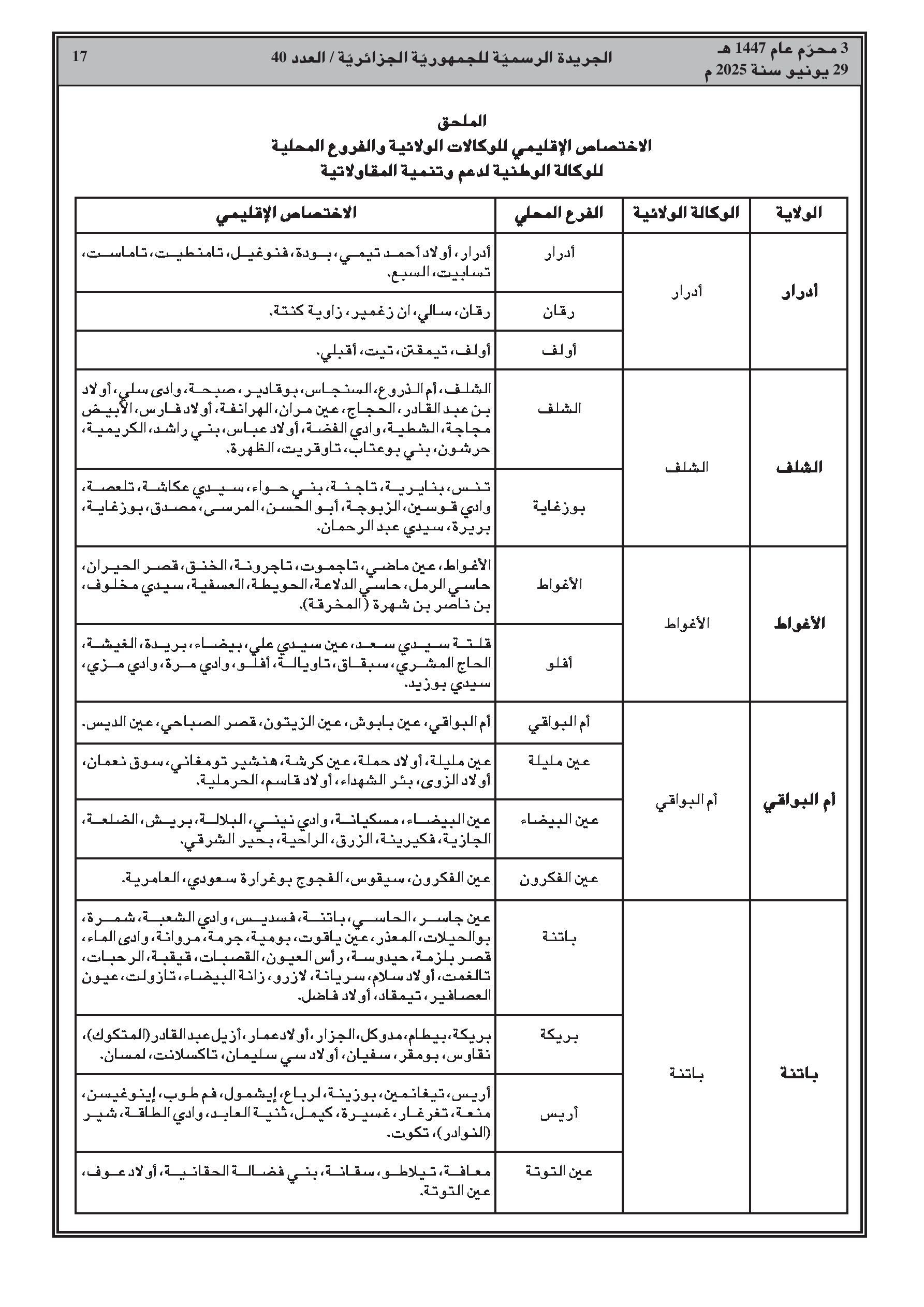 يحدد القرار التنظيم الداخلي للوكالة الوطنية لدعم وتنمية المقاولاتية، مفصلاً هياكلها المركزية والمحلية ومهامها. تم تعديل قوائم أعضاء مجالس إدارة كل من المعهد الجزائري للتقييس والديوان الوطني للسقي وصرف المياه، بالإضافة إلى المجلس العلمي لمركز البحث في علم الفلك والفيزياء الفلكية والجيوفيزياء.