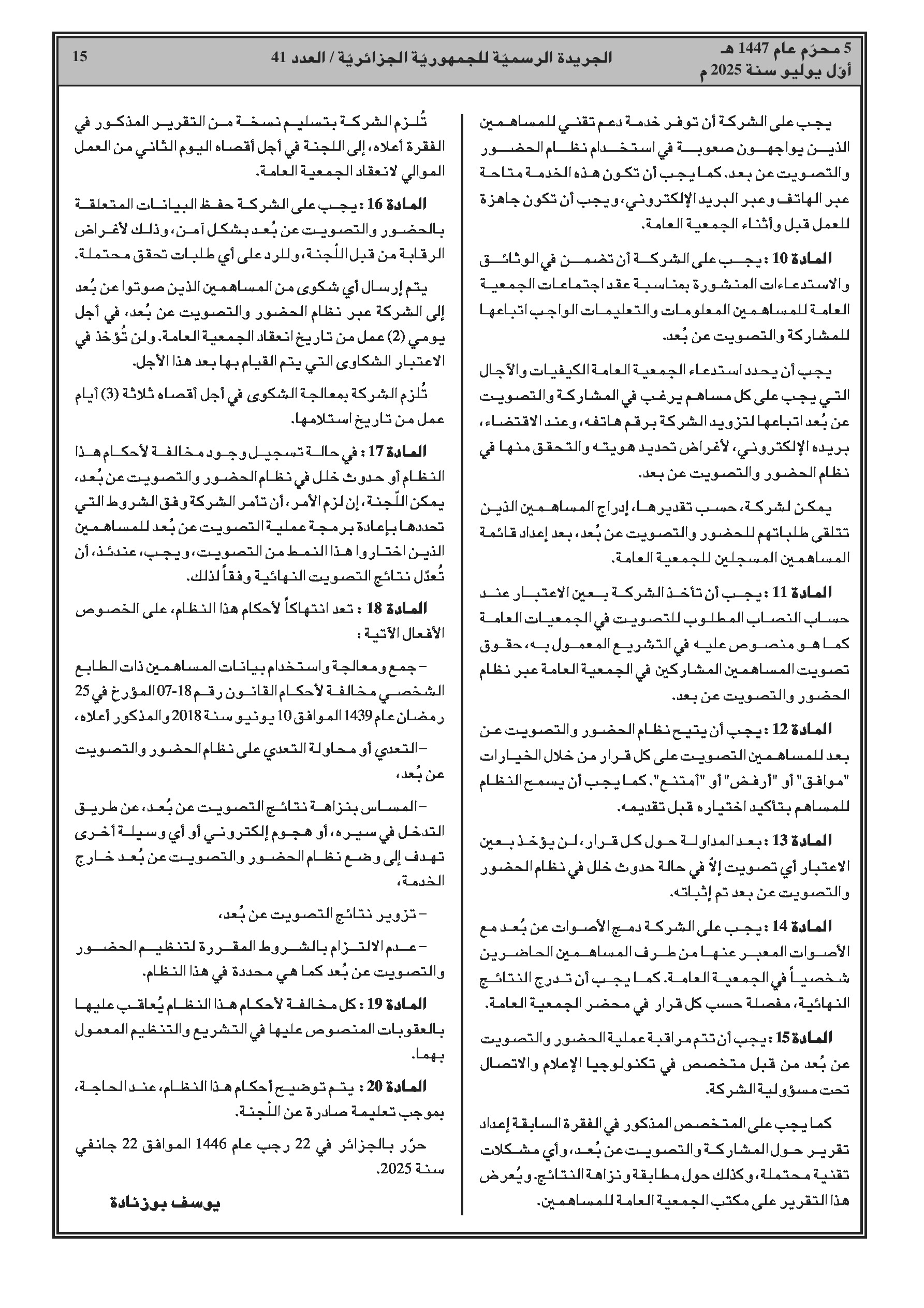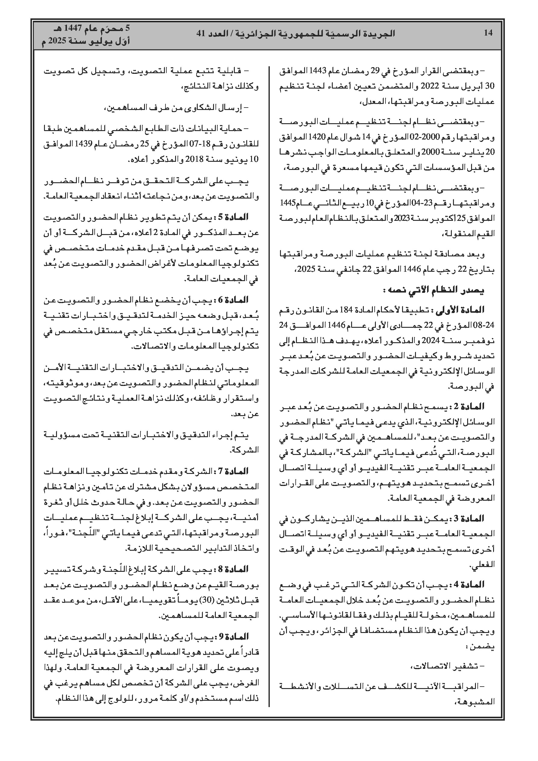 يشهد القطاع المالي المصادقة على التصويت الإلكتروني في الجمعيات العامة للشركات المدرجة. أصبحت المؤسسات الصناعية ملزمة بالإبلاغ عن بيانات الإنتاج والمدخلات عبر منصة رقمية جديدة. تم تحديث القائمة الرسمية للأنشطة المؤهلة لصفة 'المقاول الذاتي'.