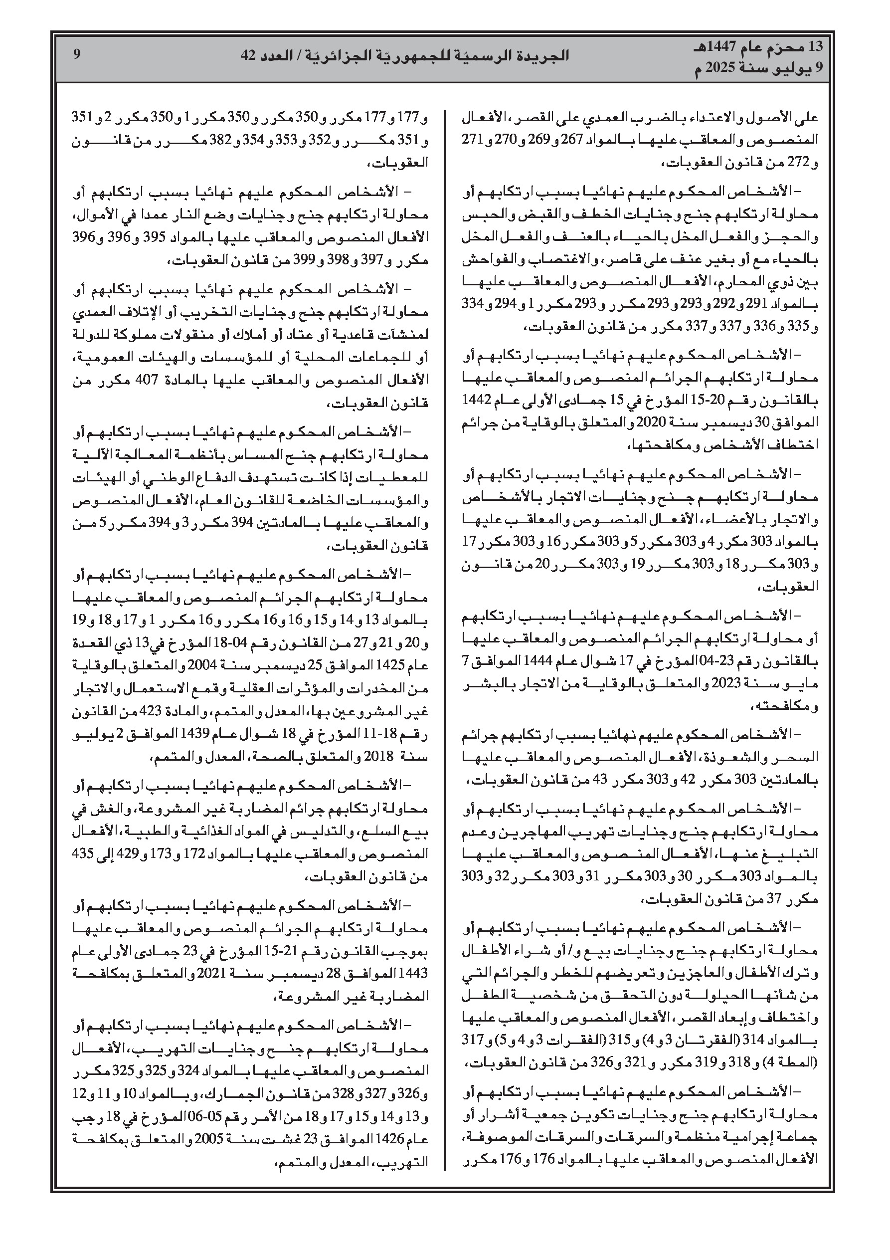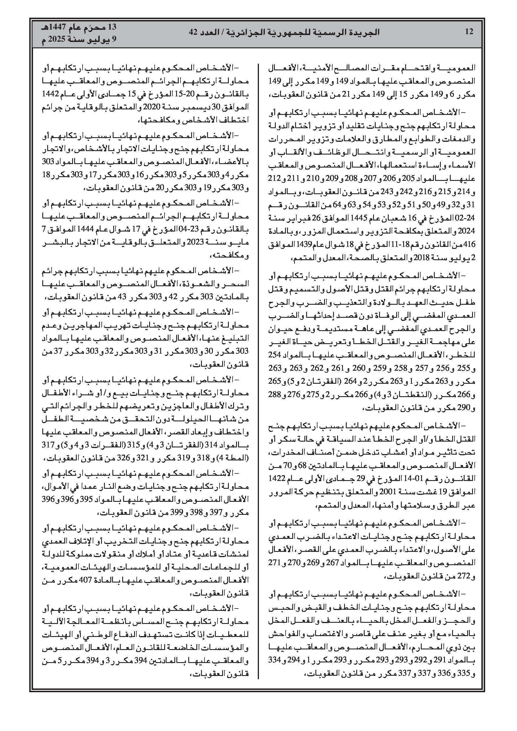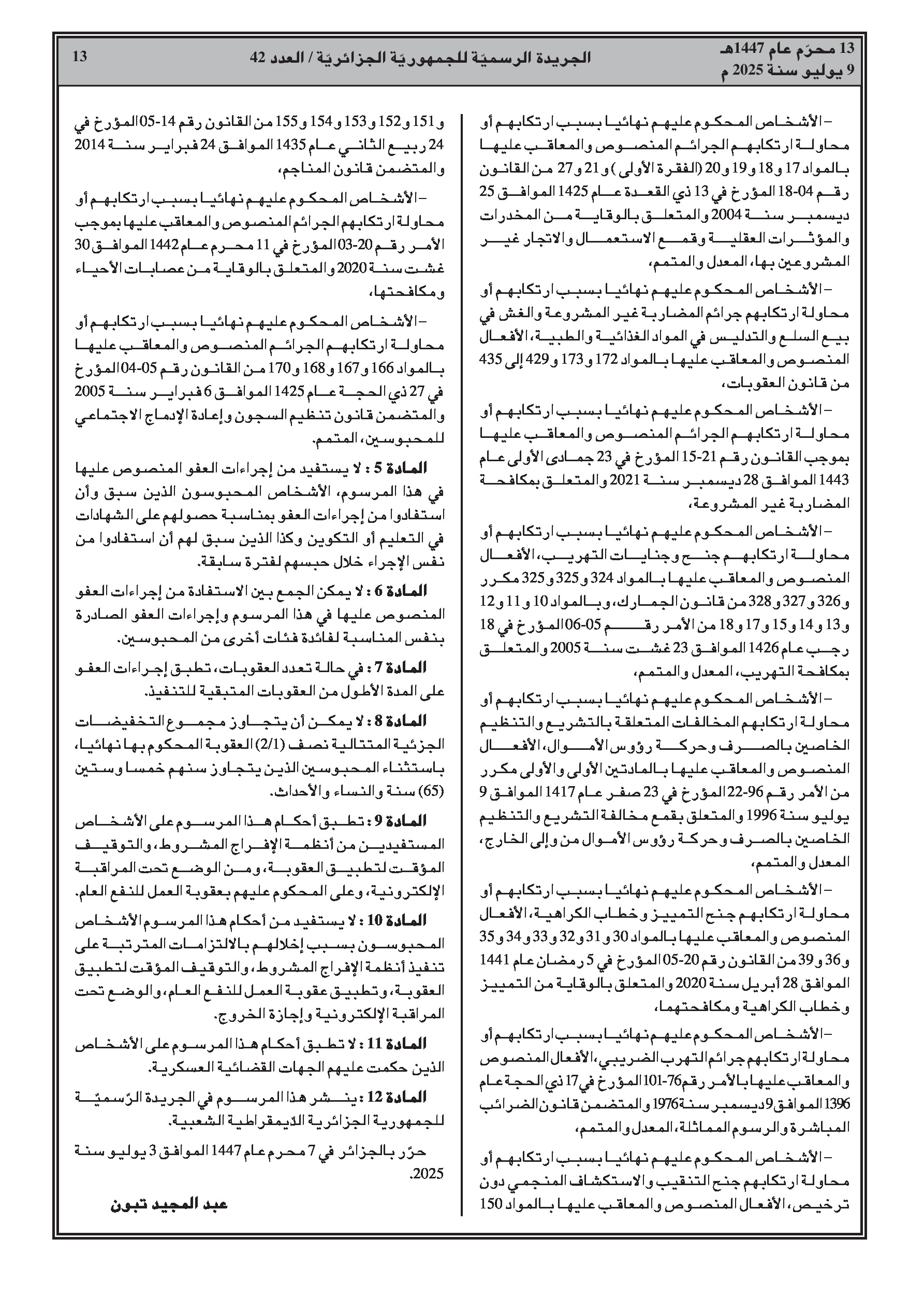 - إجراءات عفو رئاسي بمناسبة الذكرى 63 لعيد الاستقلال والشباب، تشمل تخفيضًا كليًا أو جزئيًا للعقوبات.