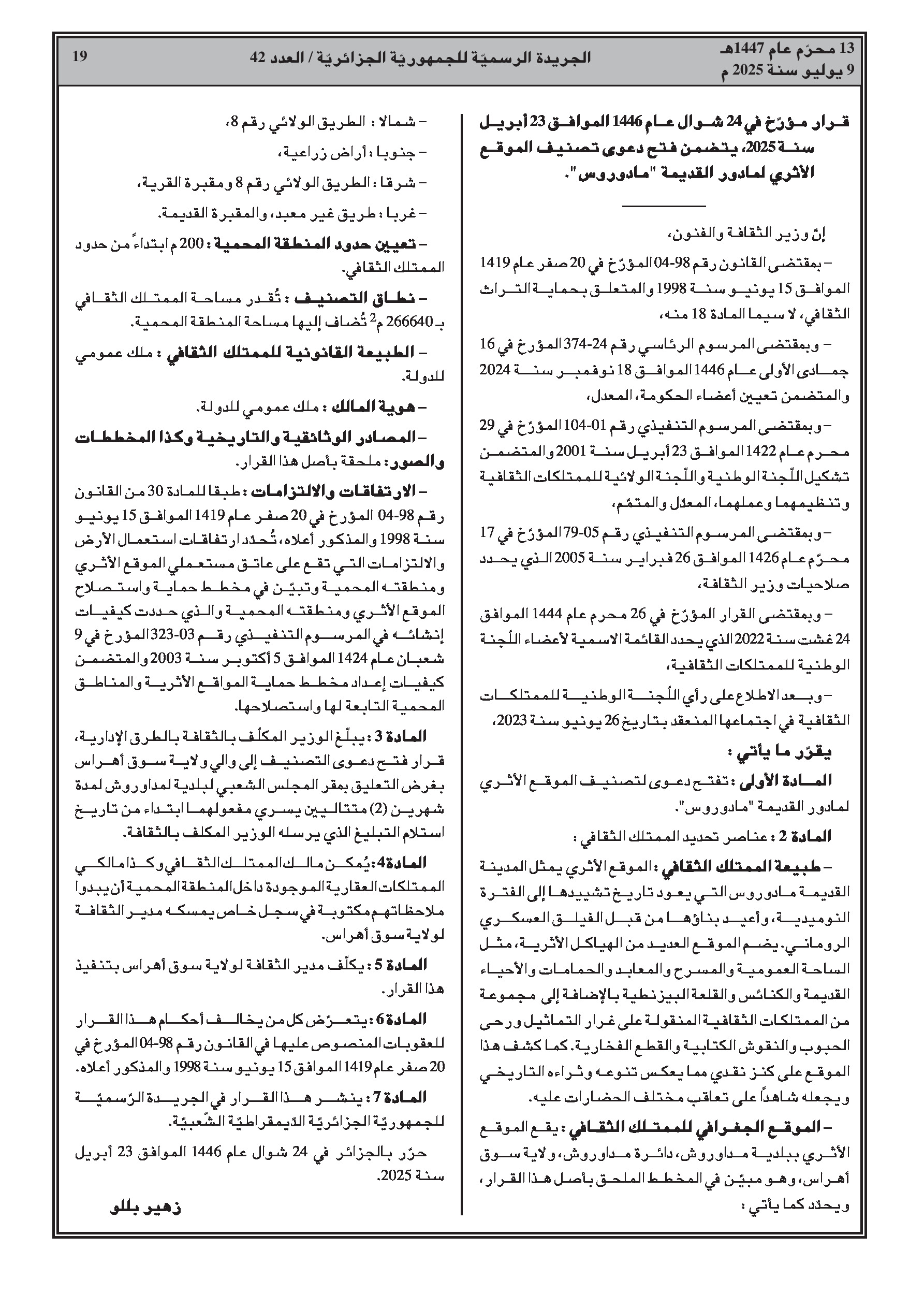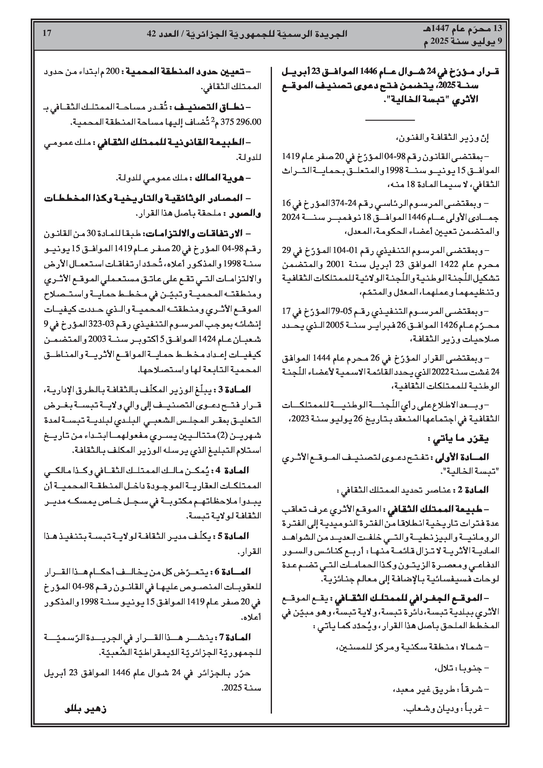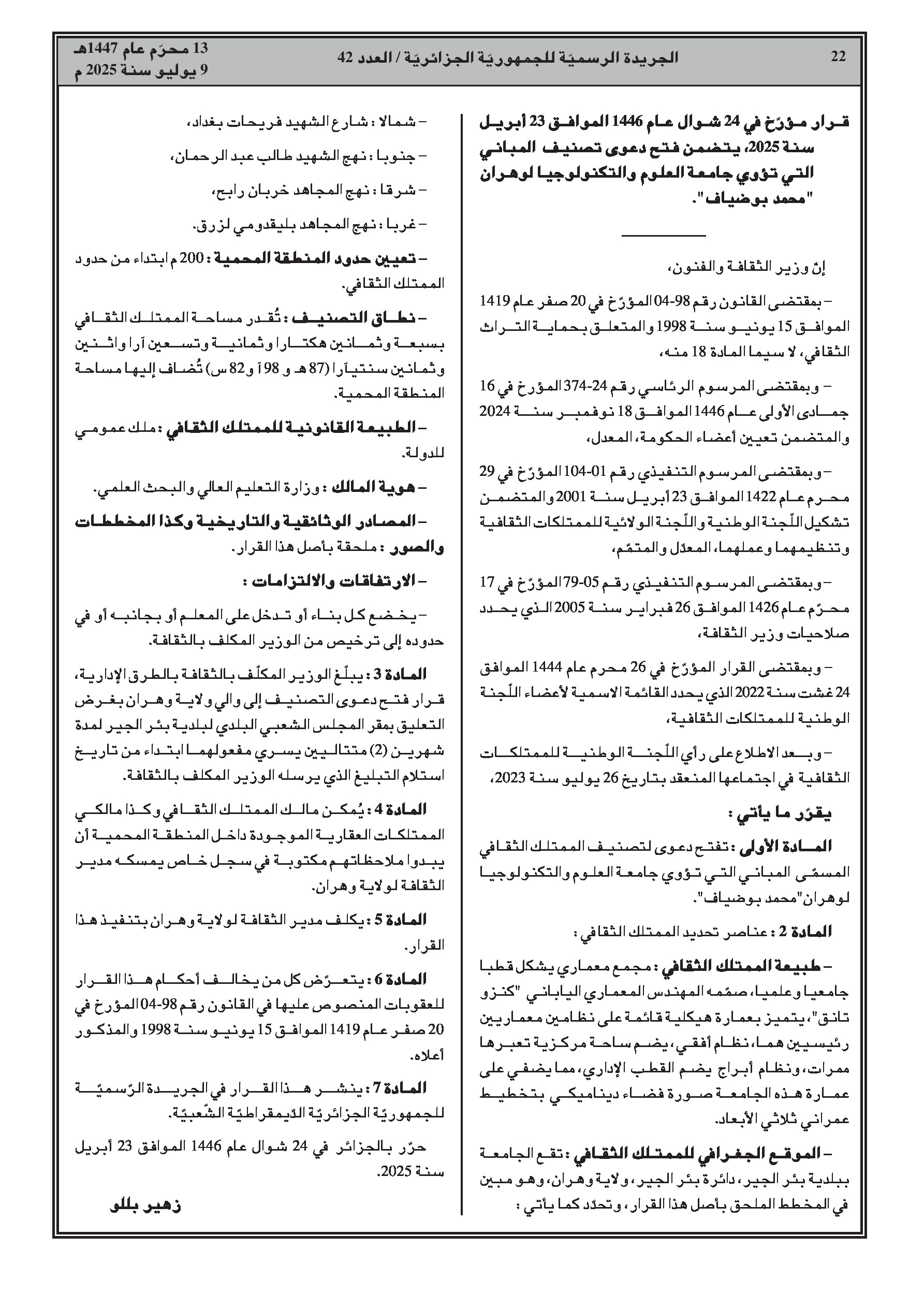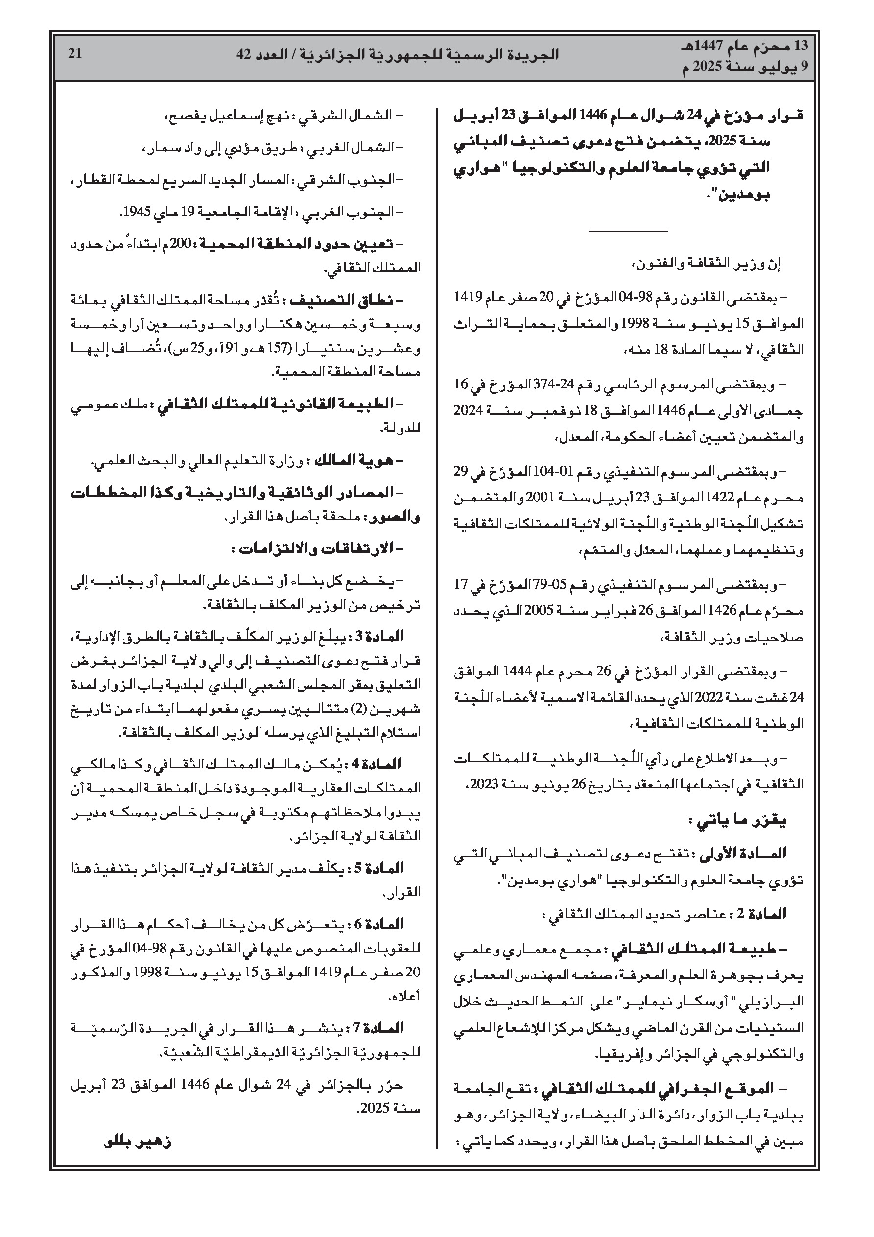- وزارة الثقافة: فتح إجراءات تصنيف مواقع أثرية ومبانٍ جامعية تاريخية (جامعة هواري بومدين، جامعة وهران، جامعة قسنطينة 1).