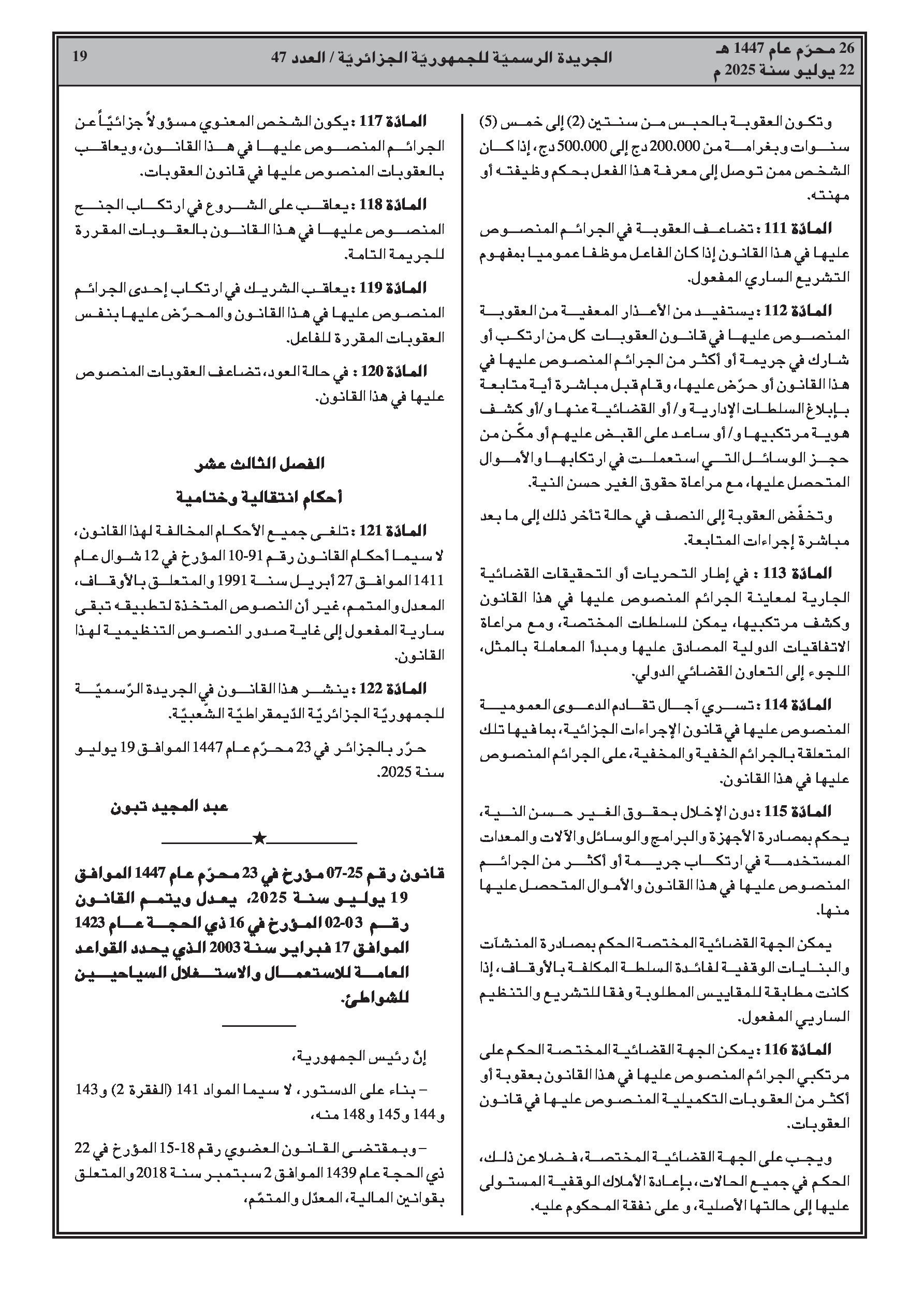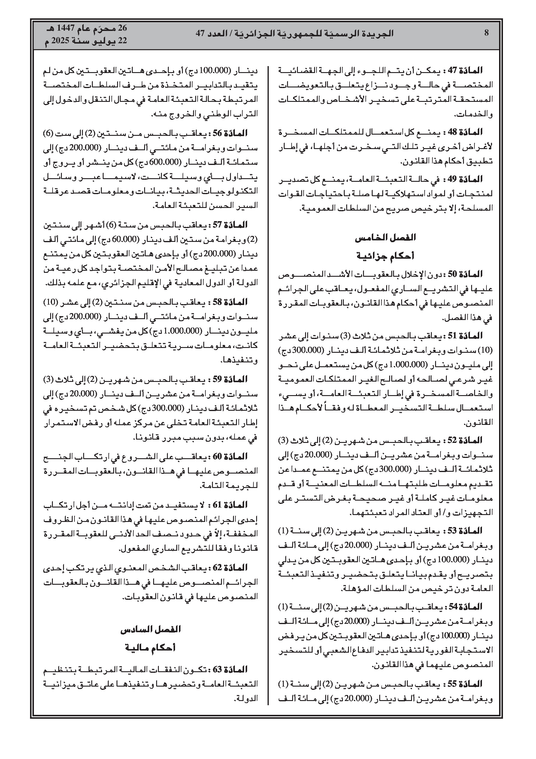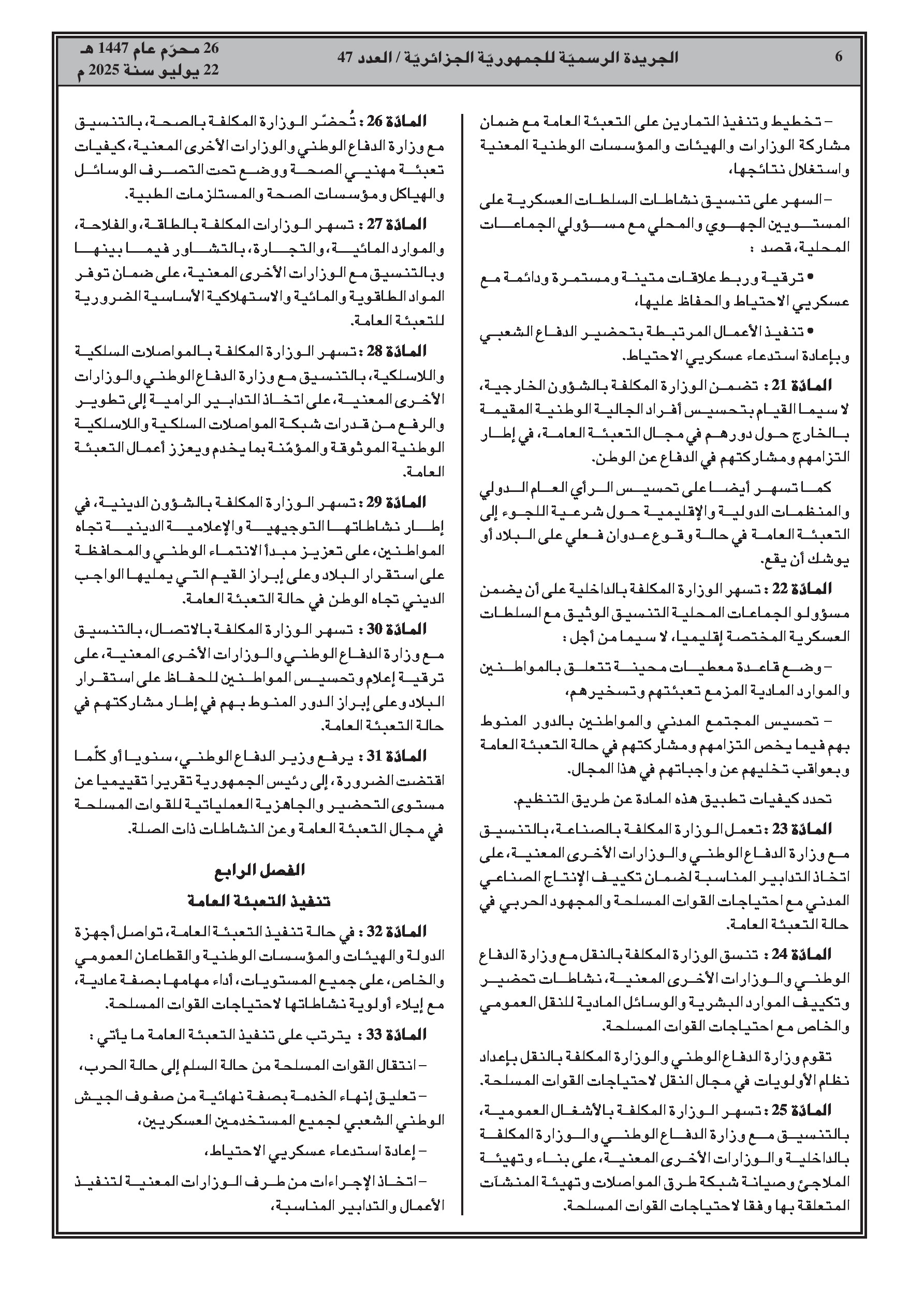 قانون جديد يضع الإطار التنظيمي للتعبئة العامة للموارد البشرية والمادية للأمة في حالات الطوارئ أو الحرب، ويحدد مسؤوليات كافة الأطراف المعنية.