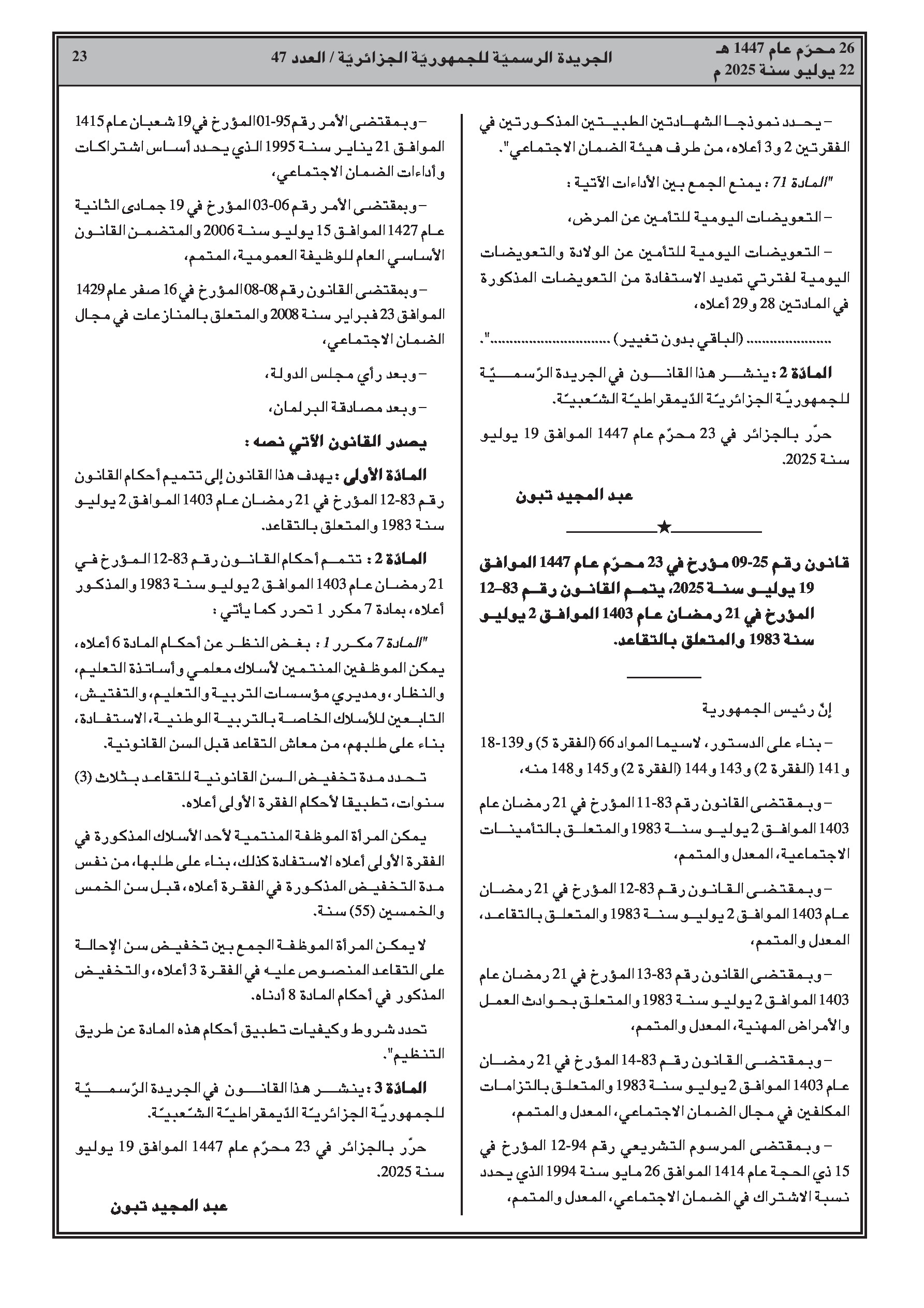 تعديلات مهمة في قانوني الضمان الاجتماعي والتقاعد، تشمل تمديد عطلة الأمومة في حالات صحية خاصة للمولود، وتوفير خيار التقاعد المبكر لبعض موظفي قطاع التعليم.