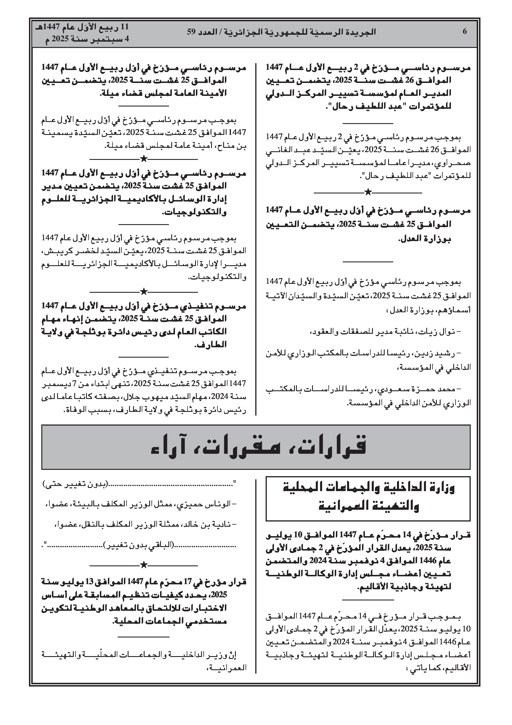 5. تعيينات وإنهاء مهام في الإدارة العمومية