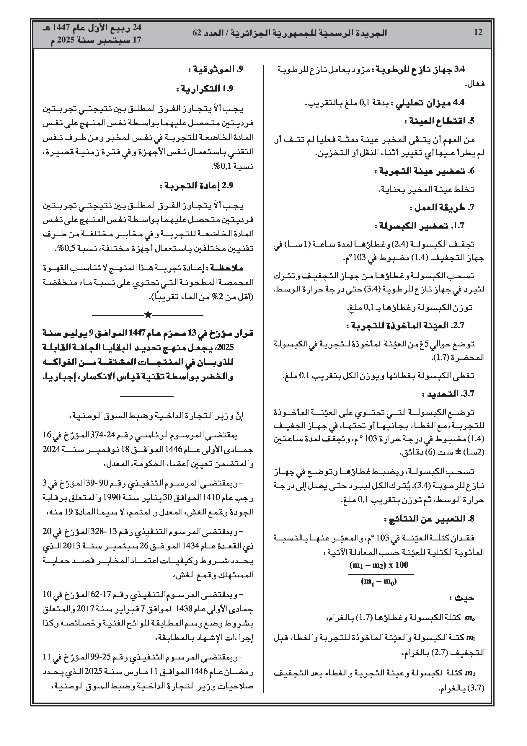 - طريقة إلزامية لتحديد نسبة الماء في القهوة المحمصة والمطحونة.