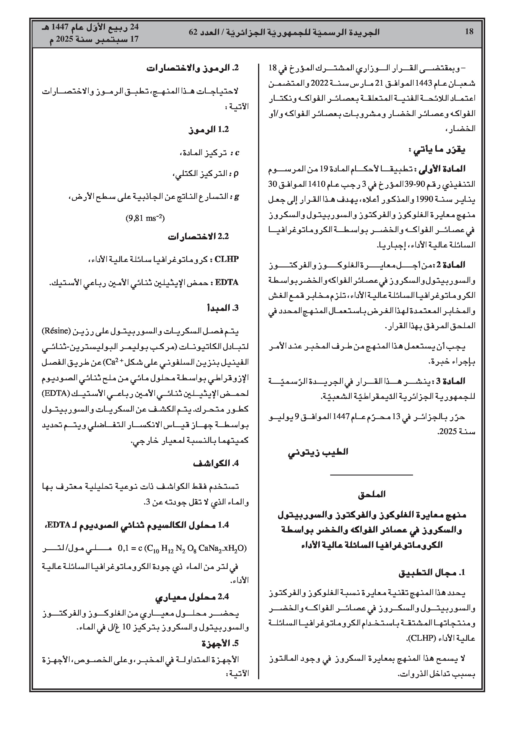 - طريقة إلزامية لتقدير الغلوكوز، الفركتوز، السوربيتول والسكروز في عصائر الفواكه والخضروات.
