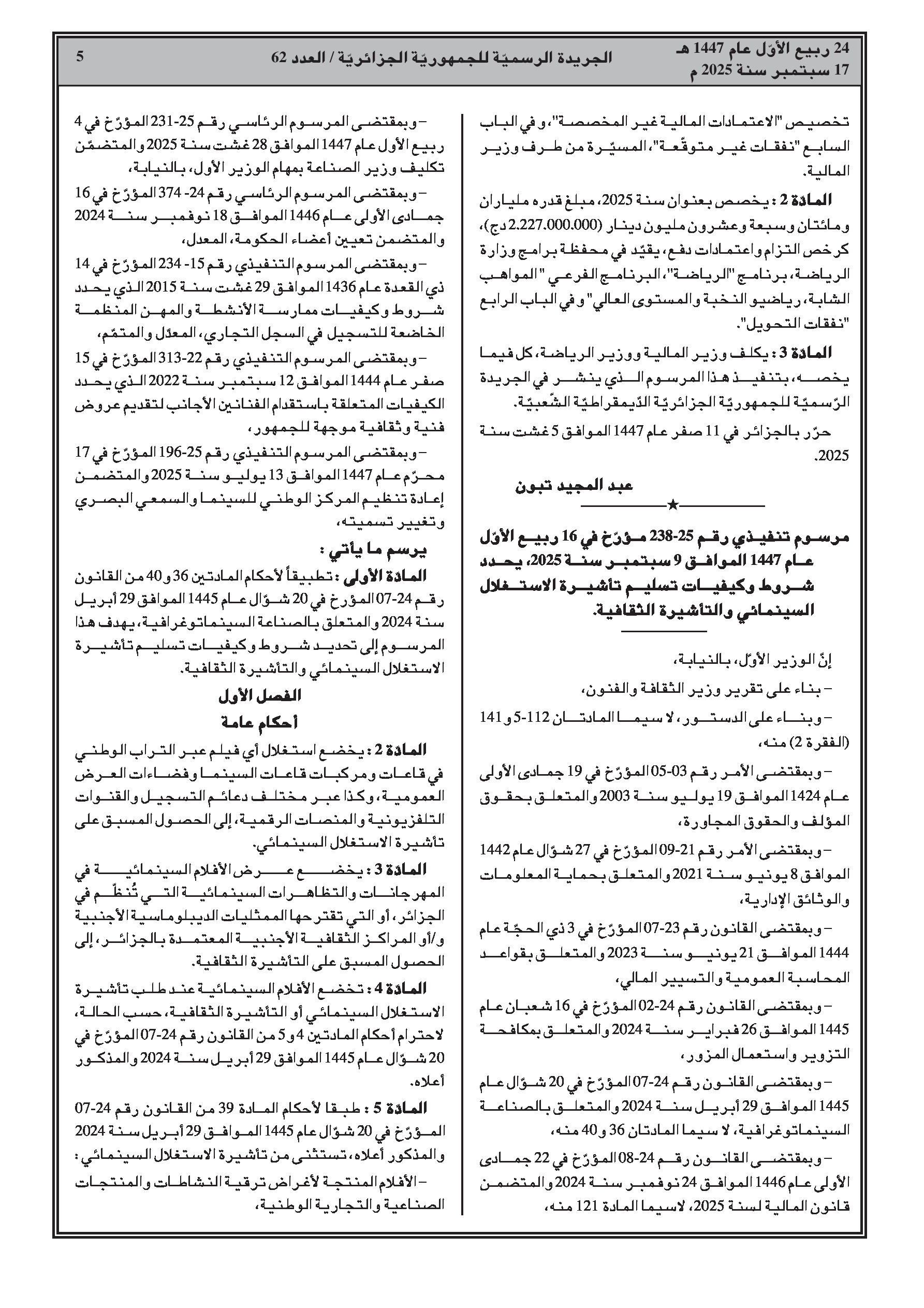العدد 62 الأمانة العامة للحكومة الجزائرية
