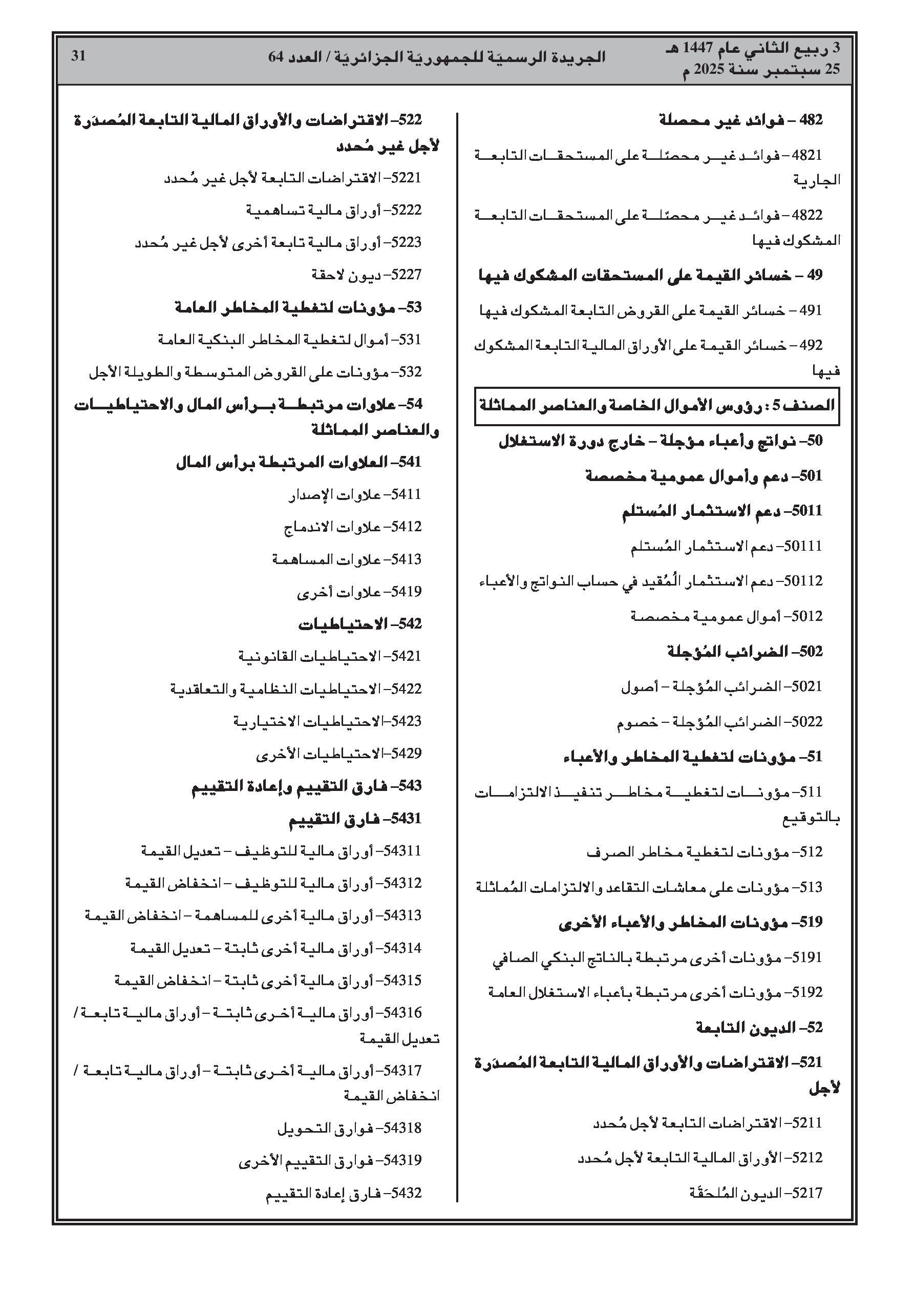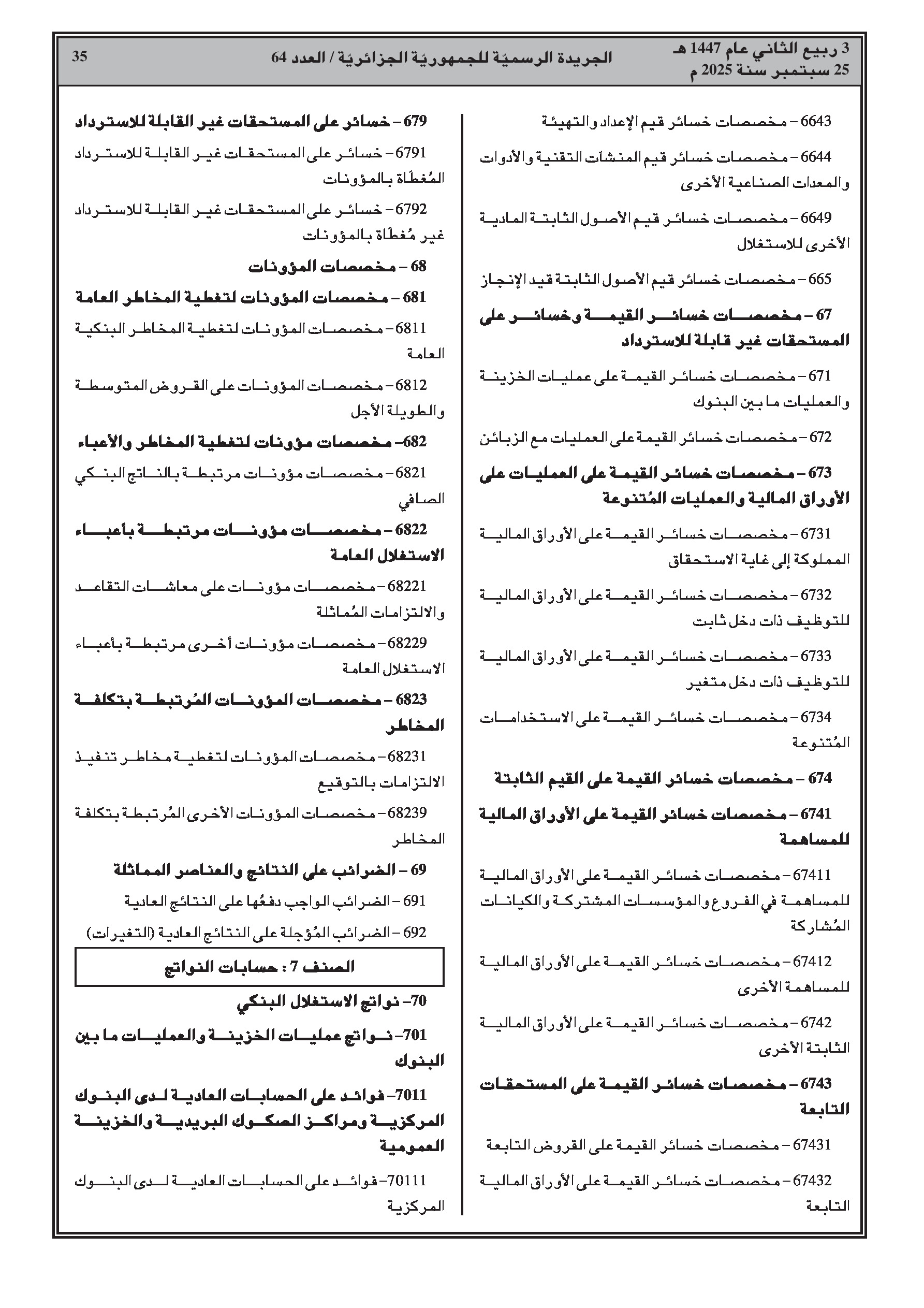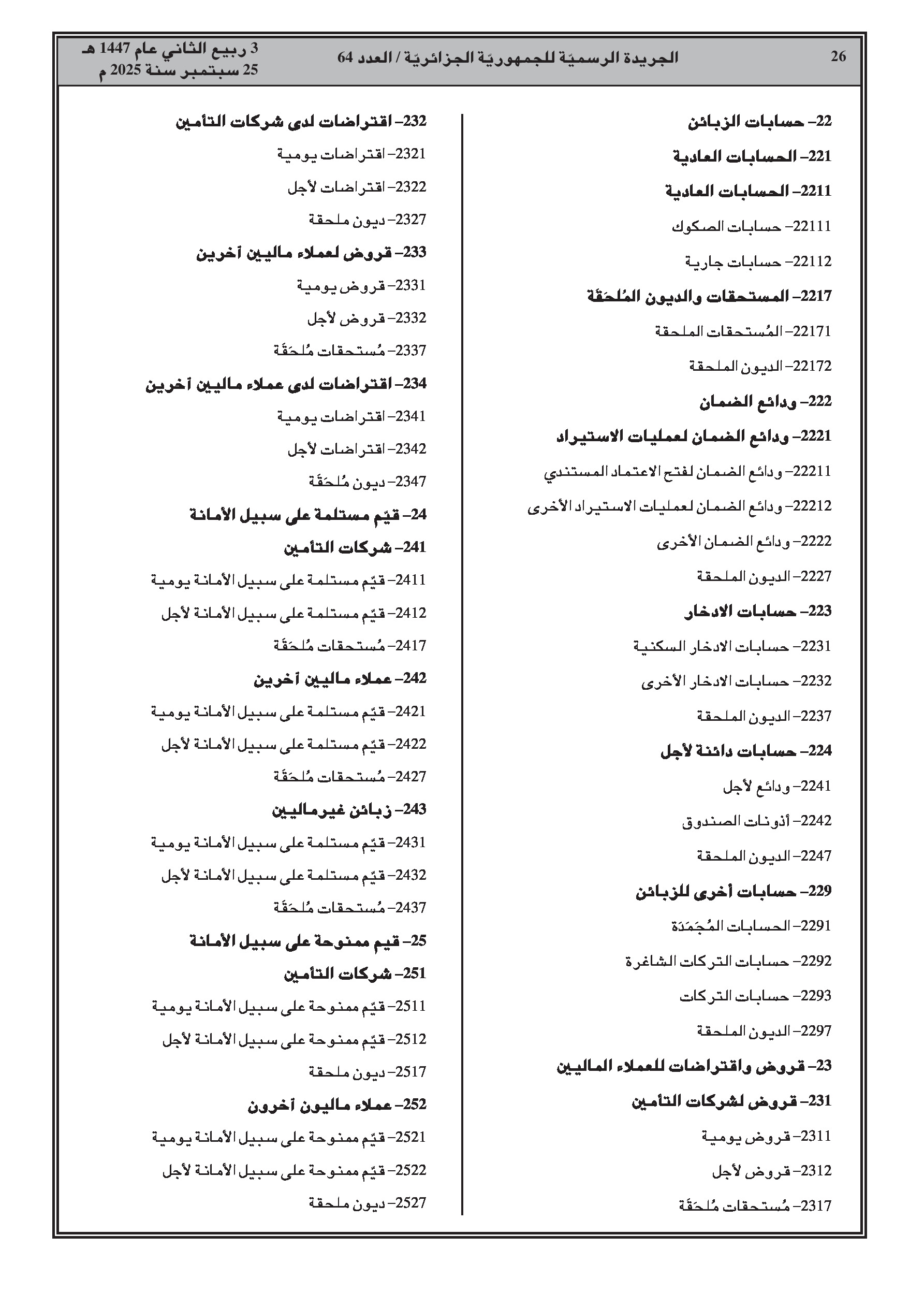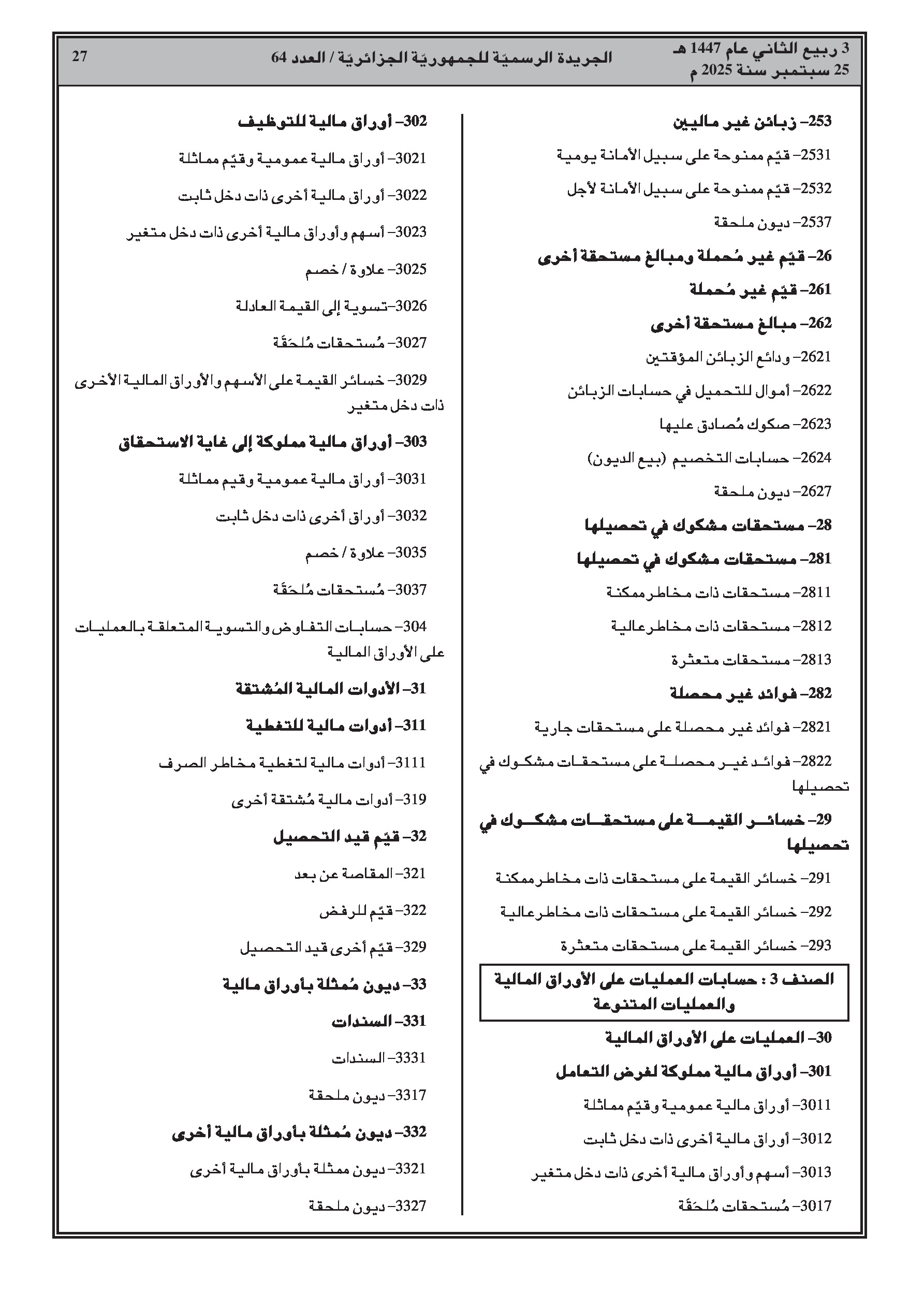 النظام 25-07: يضع مخطط الحسابات الجديد المطبق على البنوك والمؤسسات المالية.