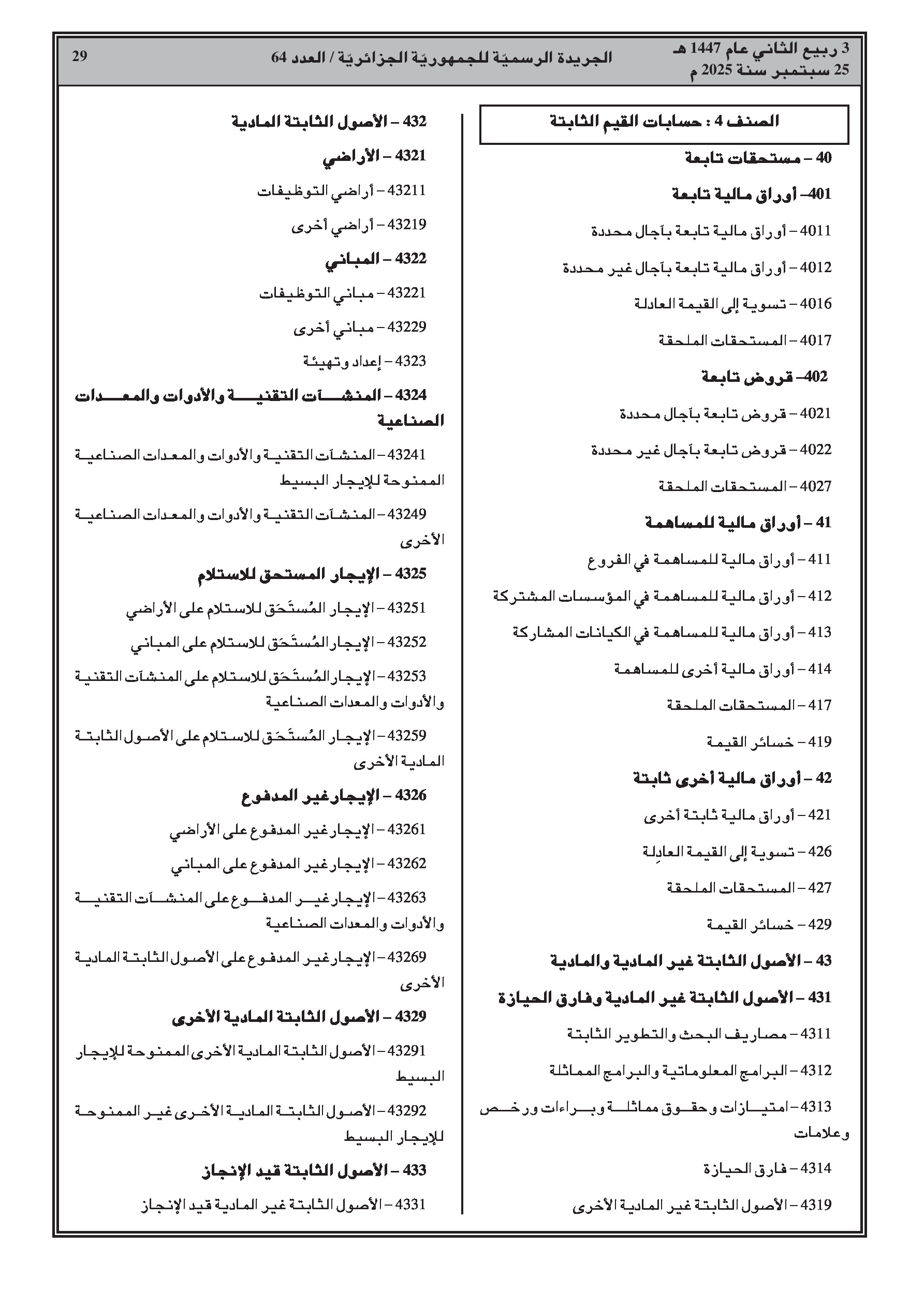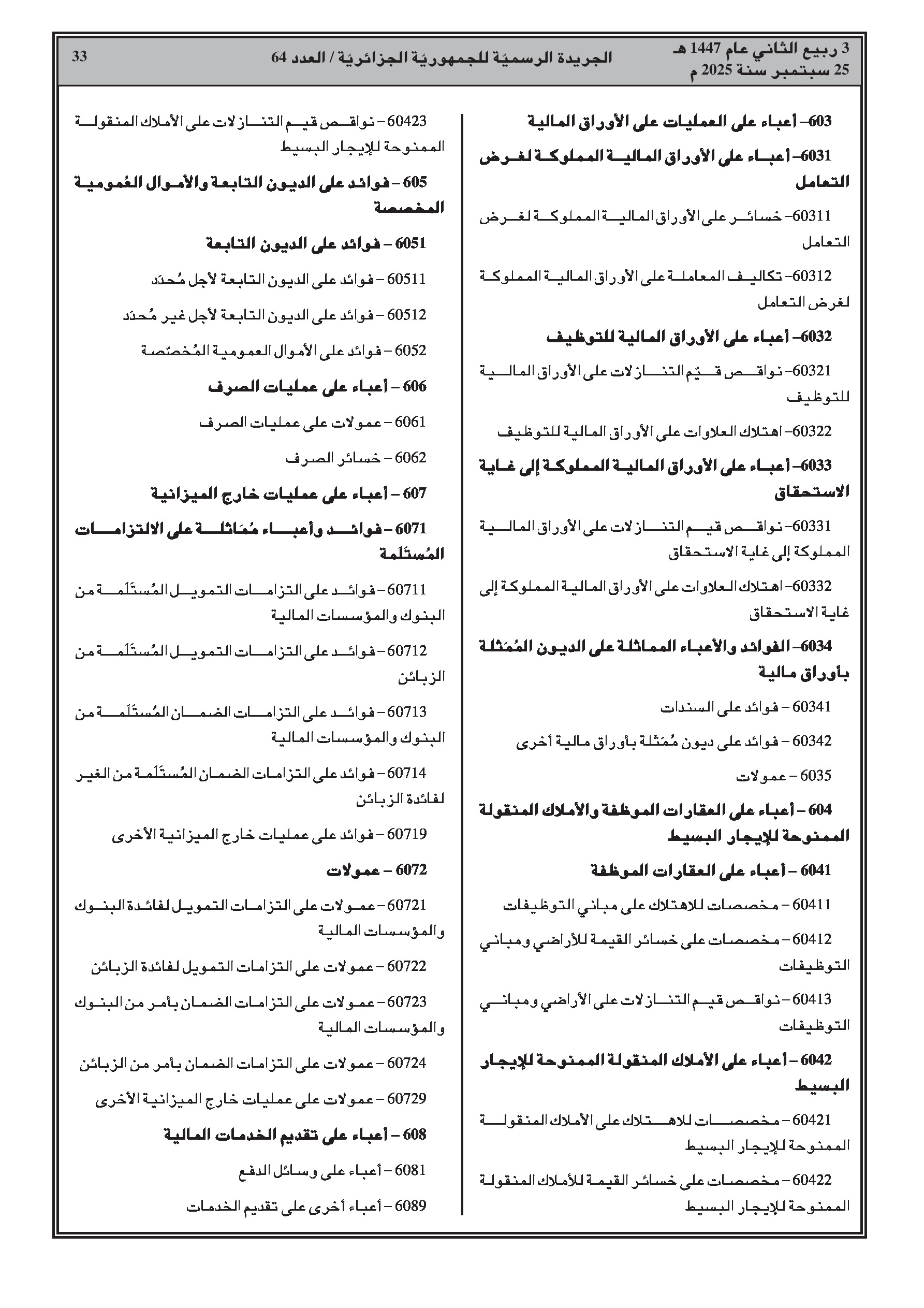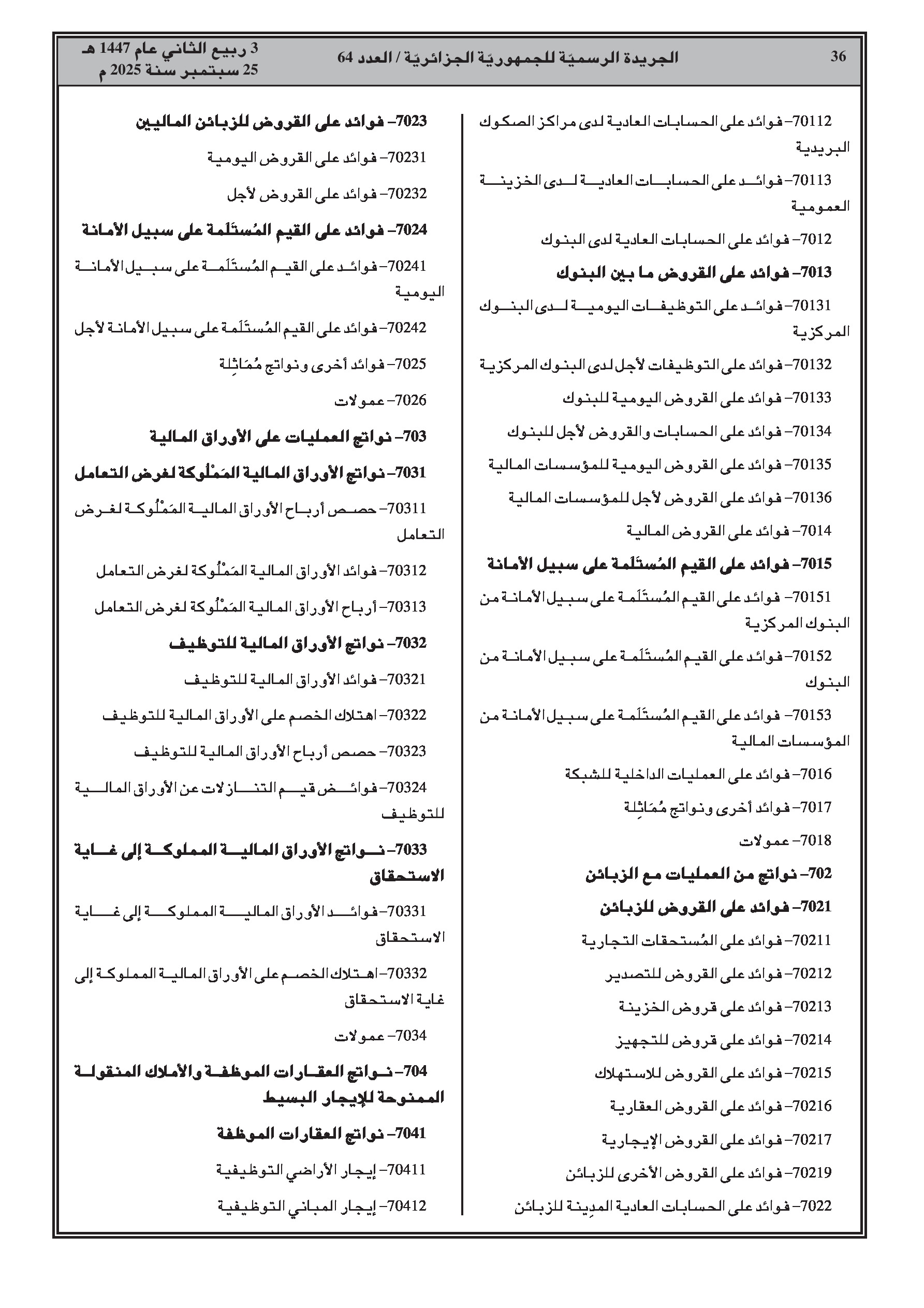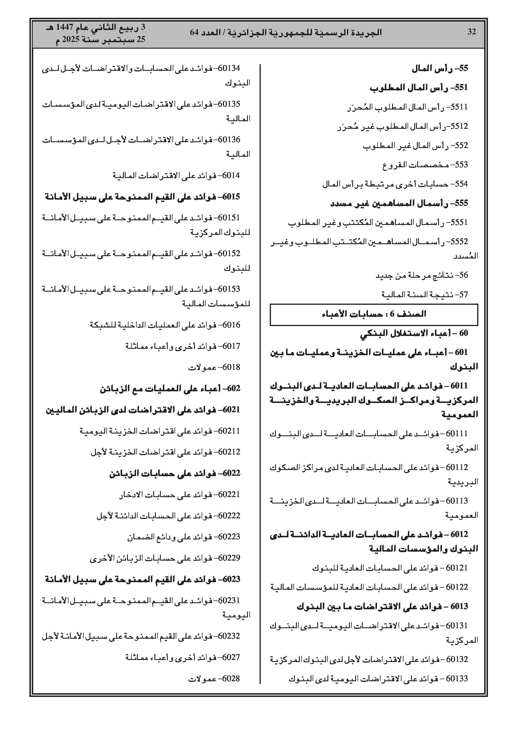 النظام 25-07: يضع مخطط الحسابات الجديد المطبق على البنوك والمؤسسات المالية.