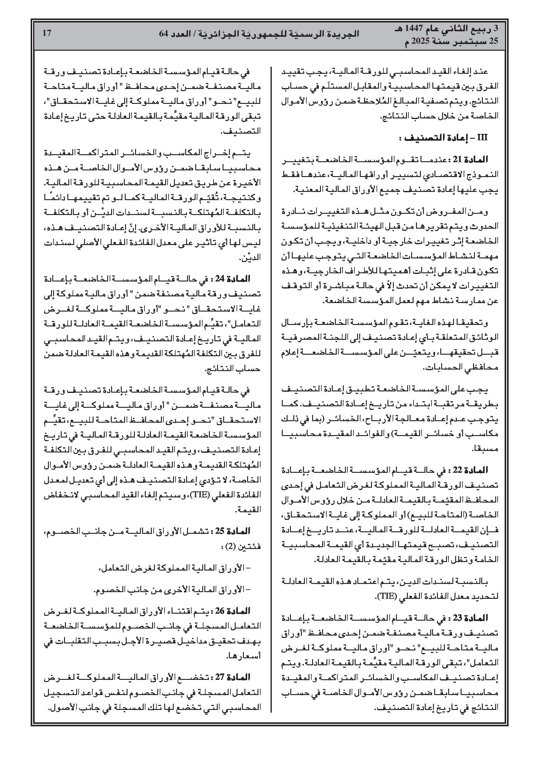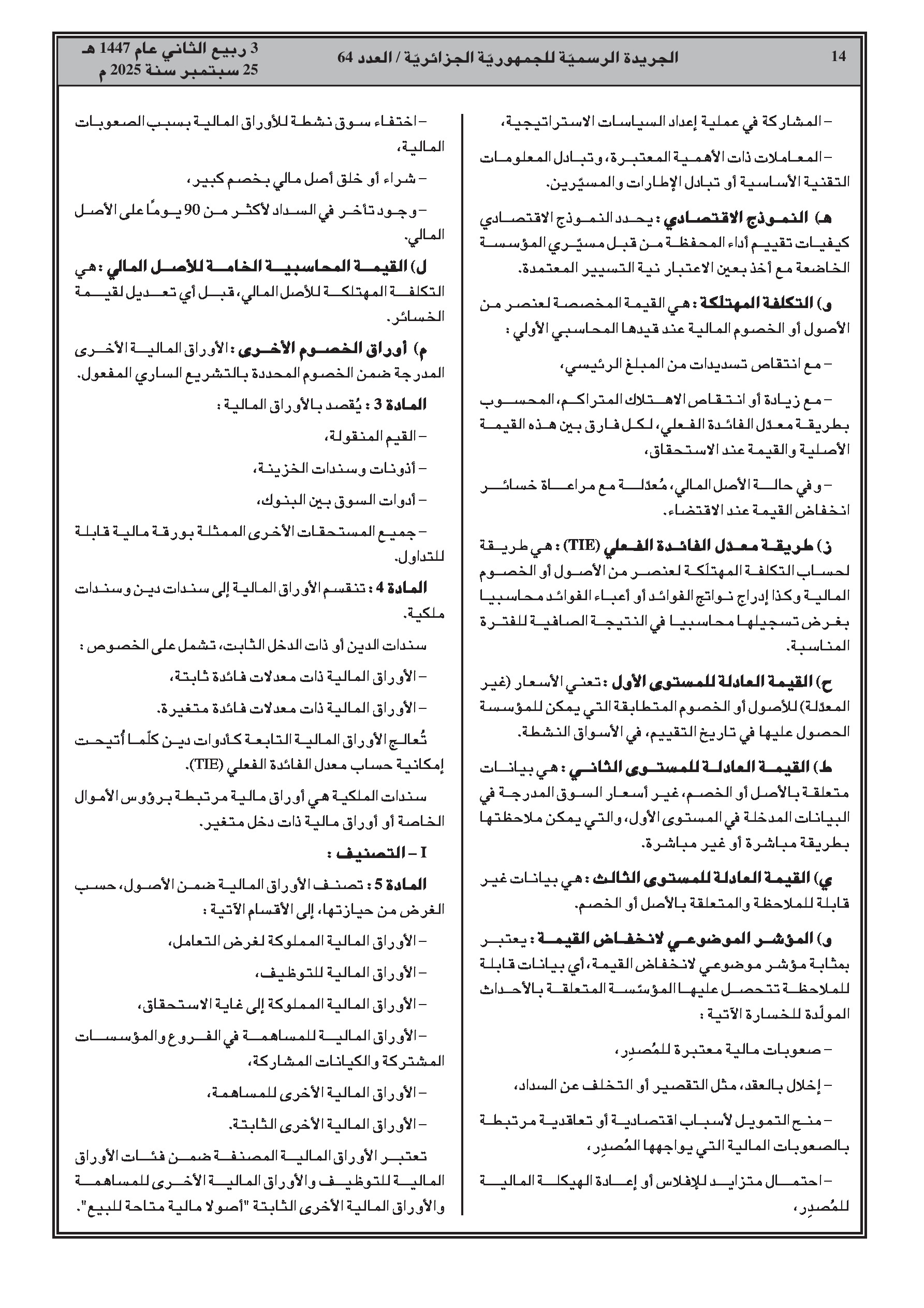 النظام 25-05: يحدد قواعد تقييم ومحاسبة عمليات الأوراق المالية.