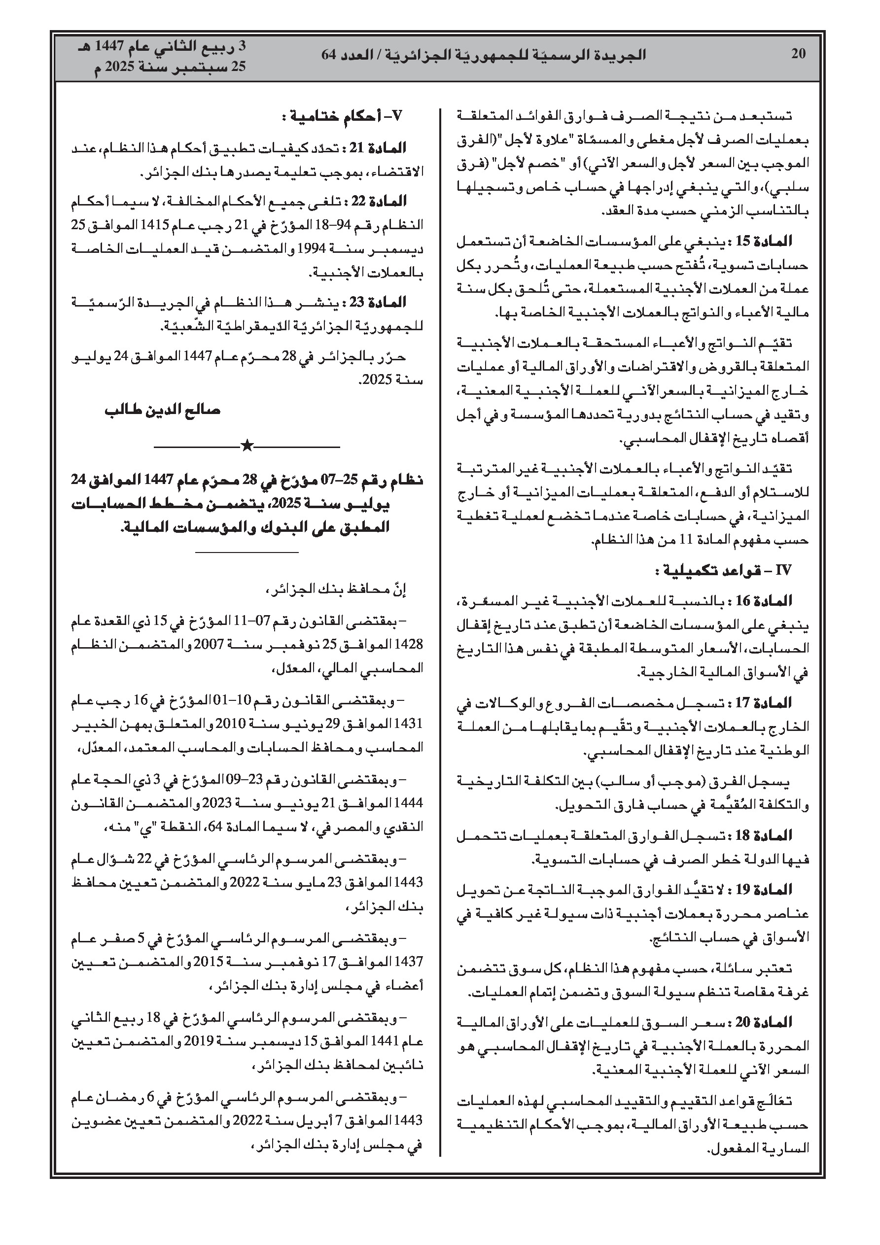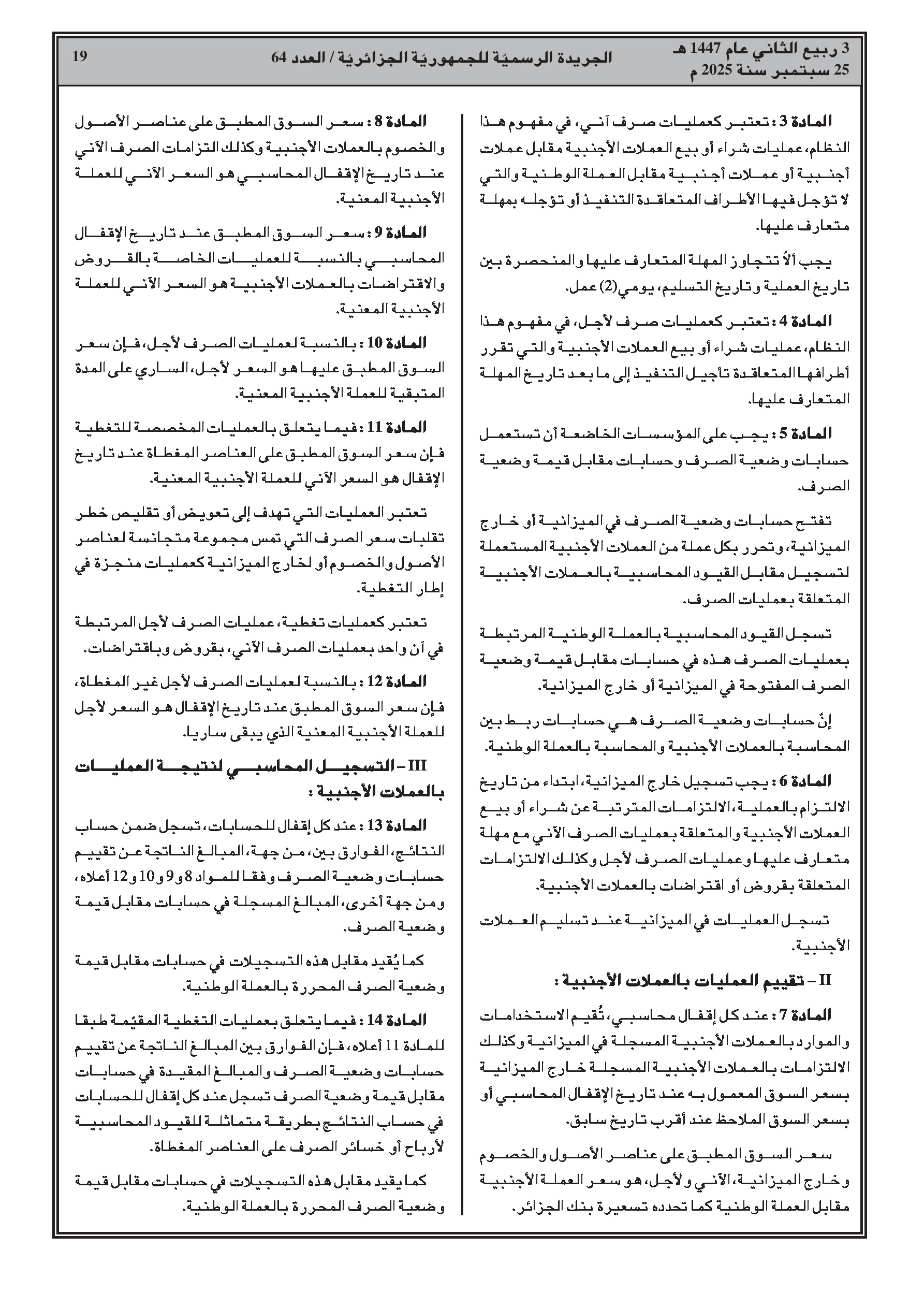 النظام 25-06: ينظم المحاسبة الخاصة بعمليات الصرف بالعملة الصعبة.
