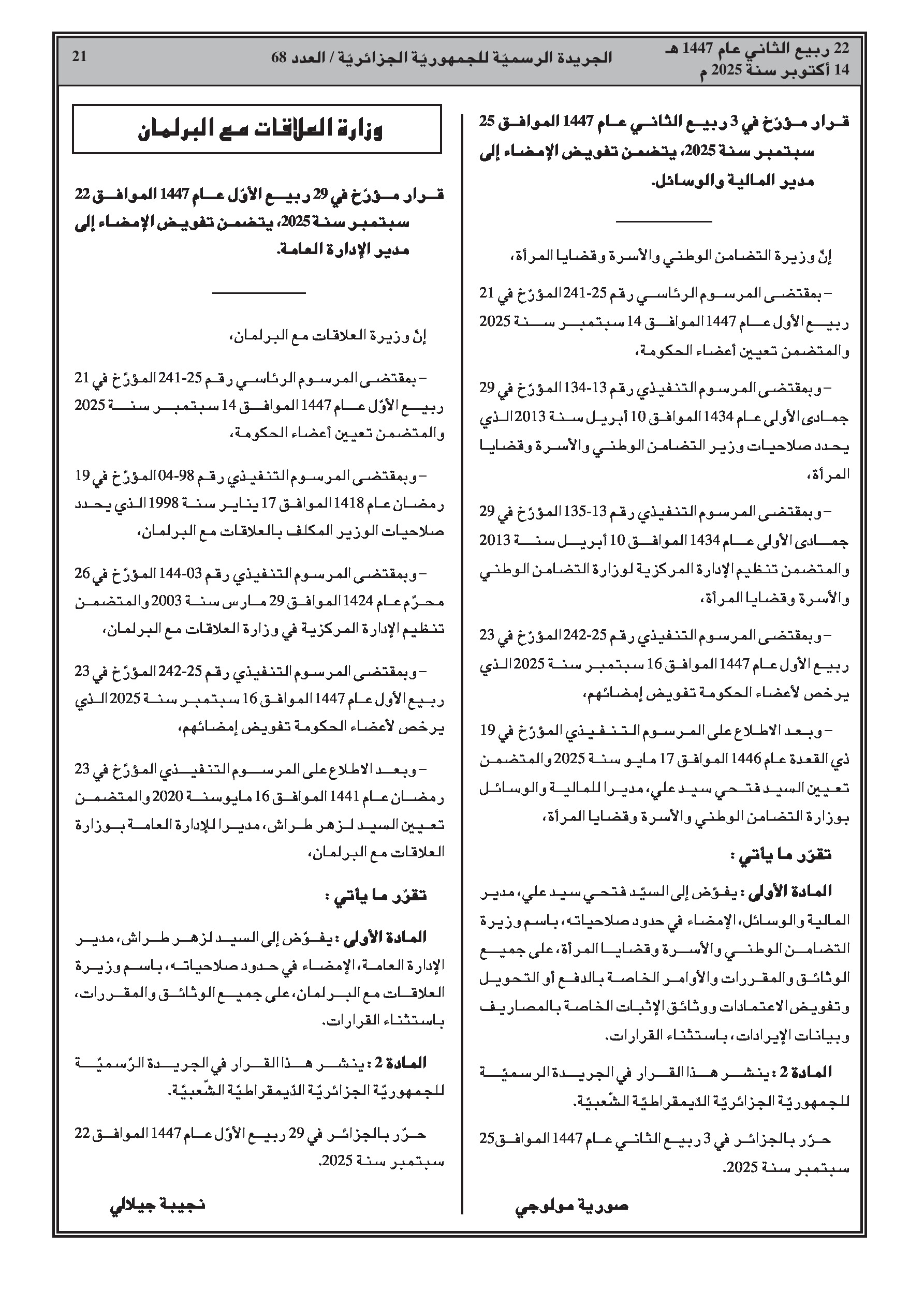 العدد 68 الأمانة العامة للحكومة الجزائرية