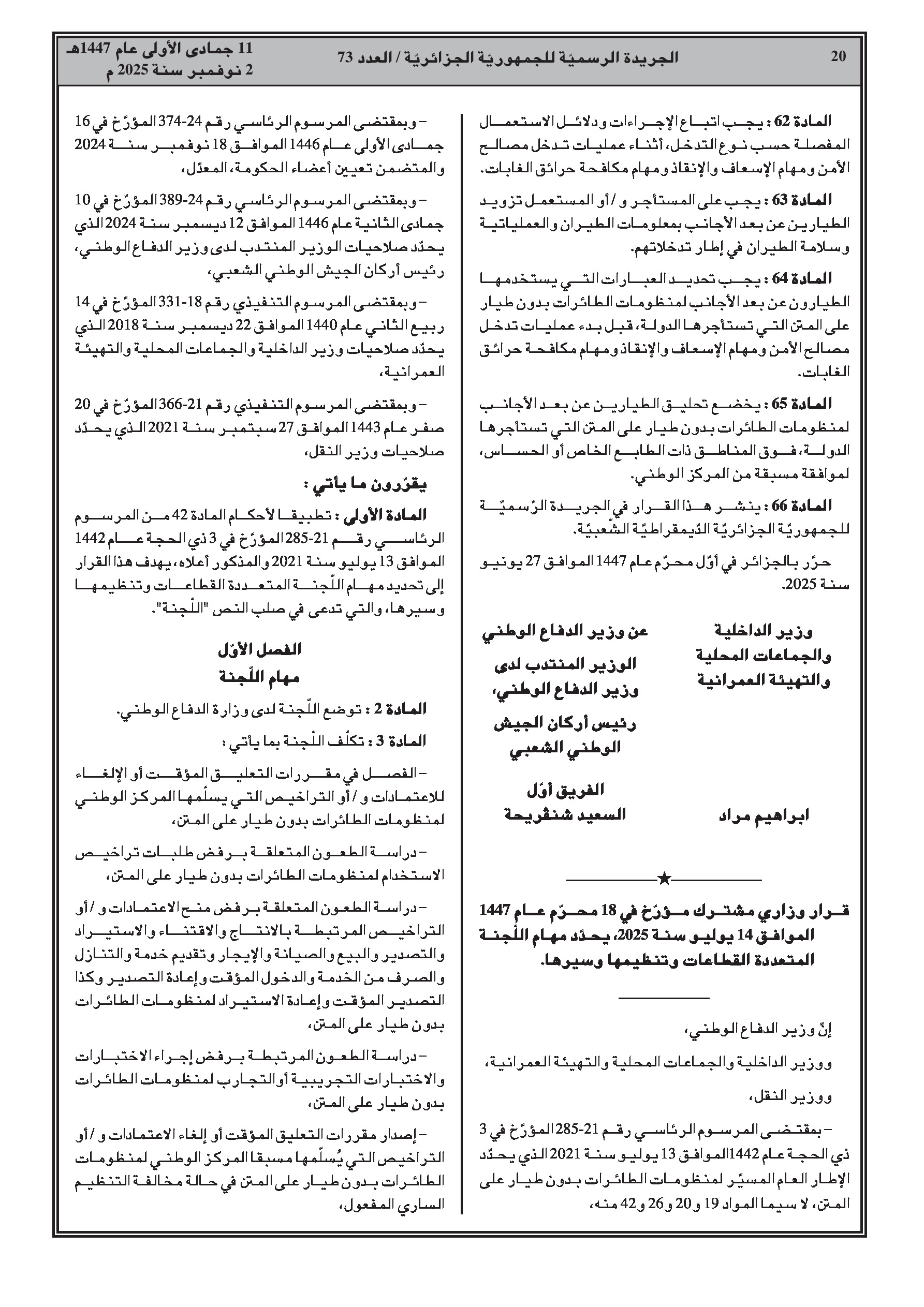 العدد 73 الأمانة العامة للحكومة الجزائرية