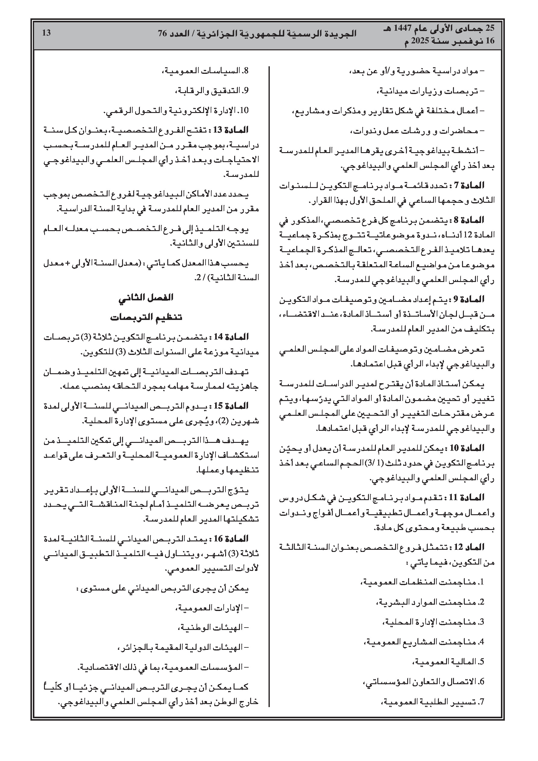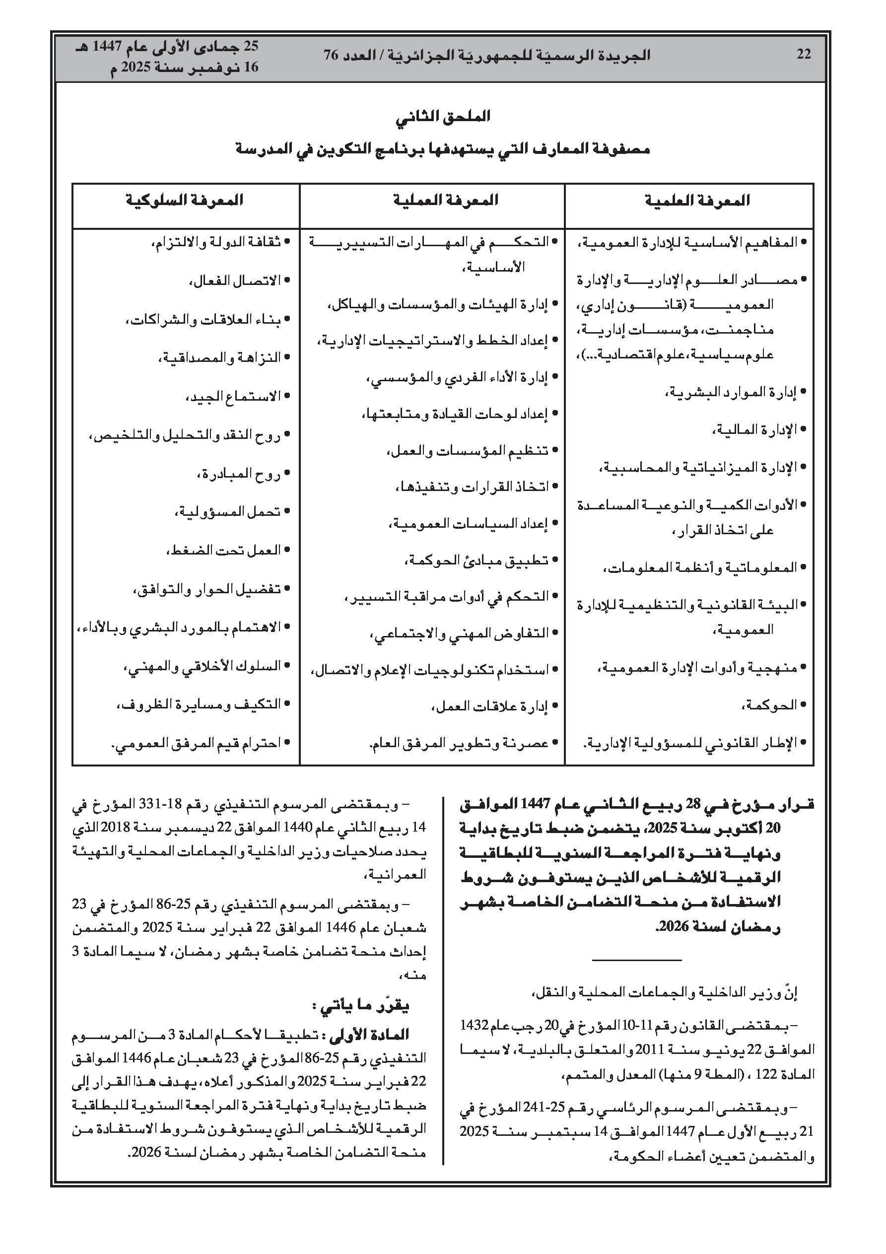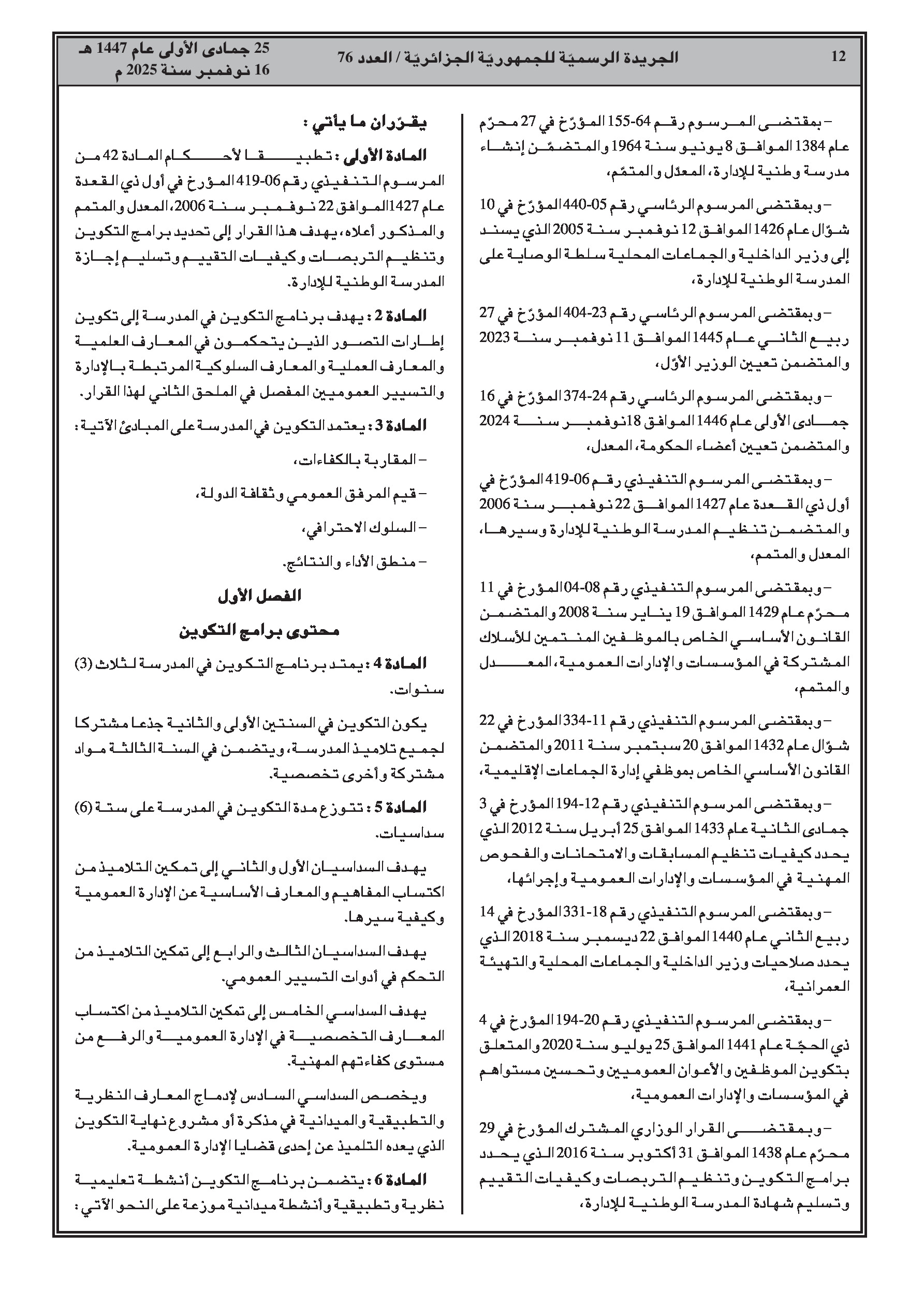 إصدار برنامج تكوين جديد للمدرسة الوطنية للإدارة يمتد لثلاث سنوات، بالتزامن مع نشر سلسلة واسعة من قرارات إنهاء المهام والتعيينات في مختلف القطاعات الوزارية.