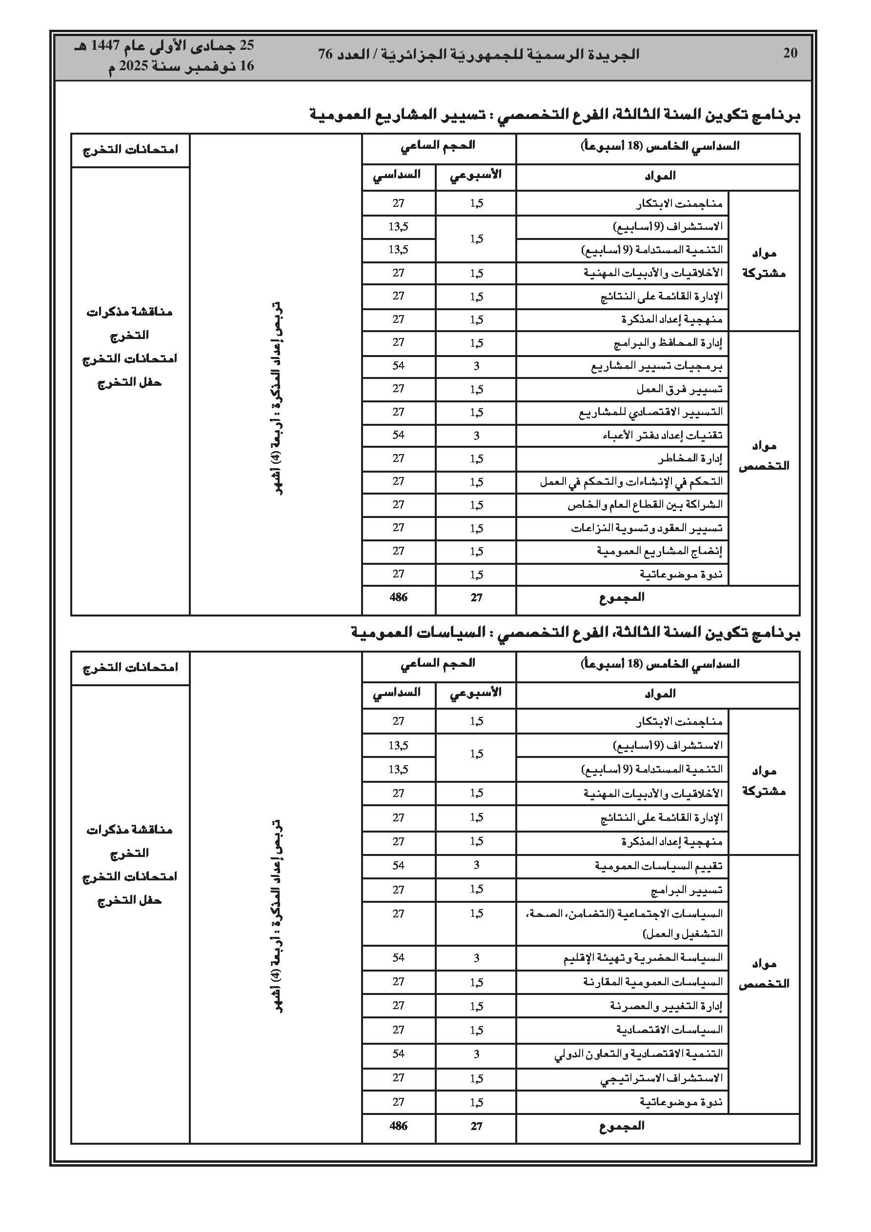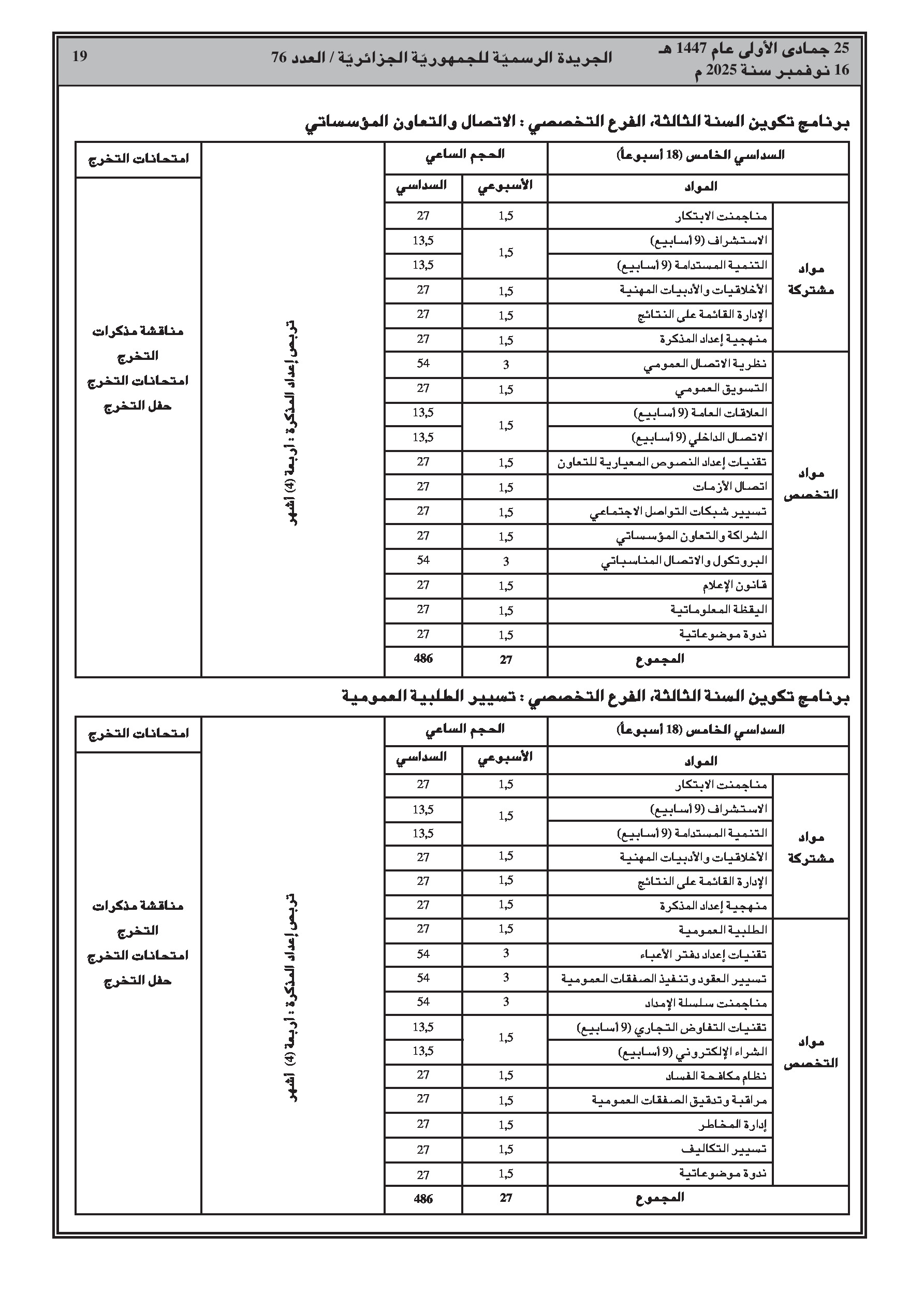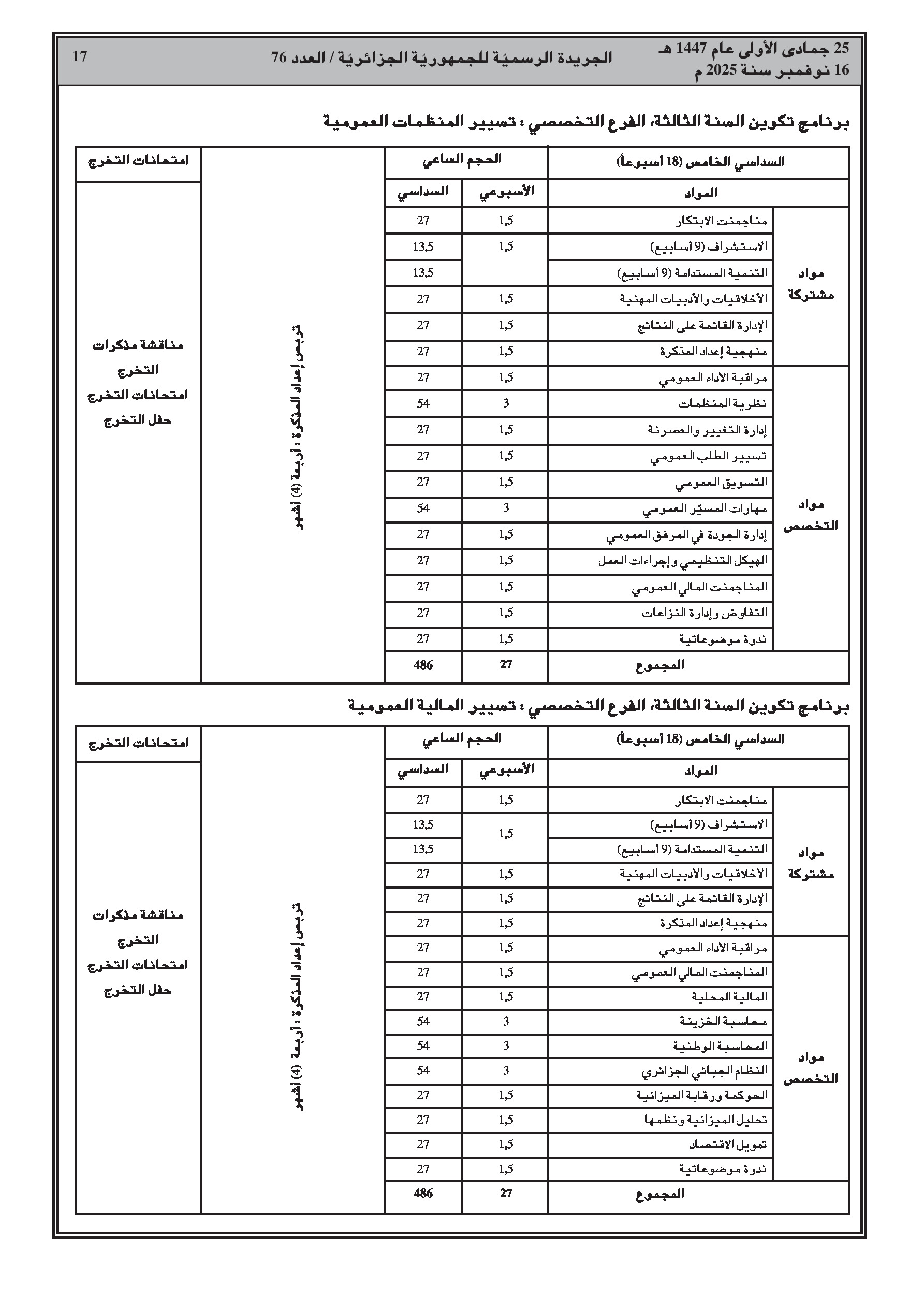 إصدار برنامج تكوين جديد للمدرسة الوطنية للإدارة يمتد لثلاث سنوات، بالتزامن مع نشر سلسلة واسعة من قرارات إنهاء المهام والتعيينات في مختلف القطاعات الوزارية.
