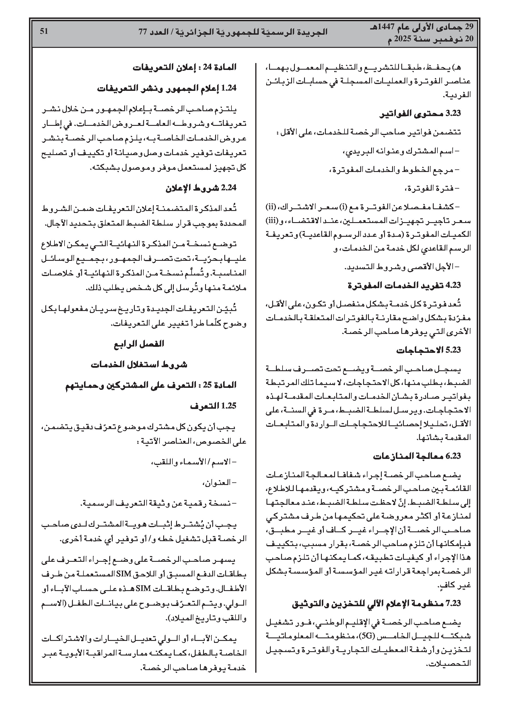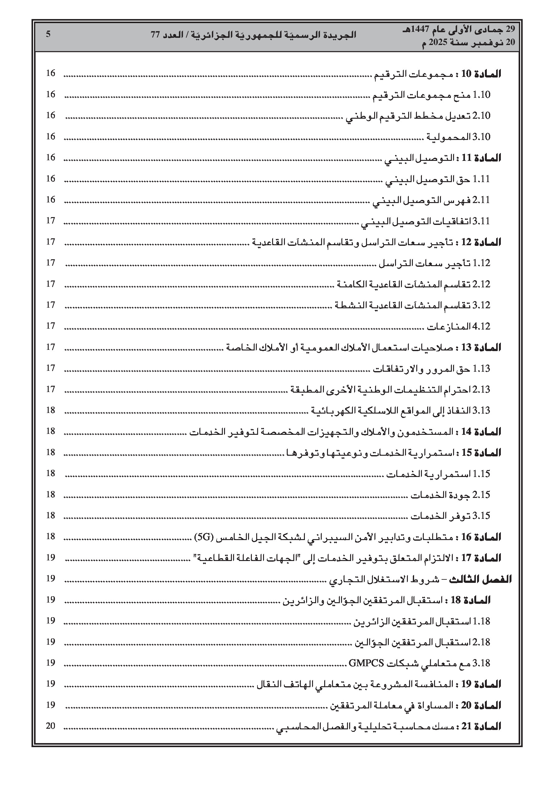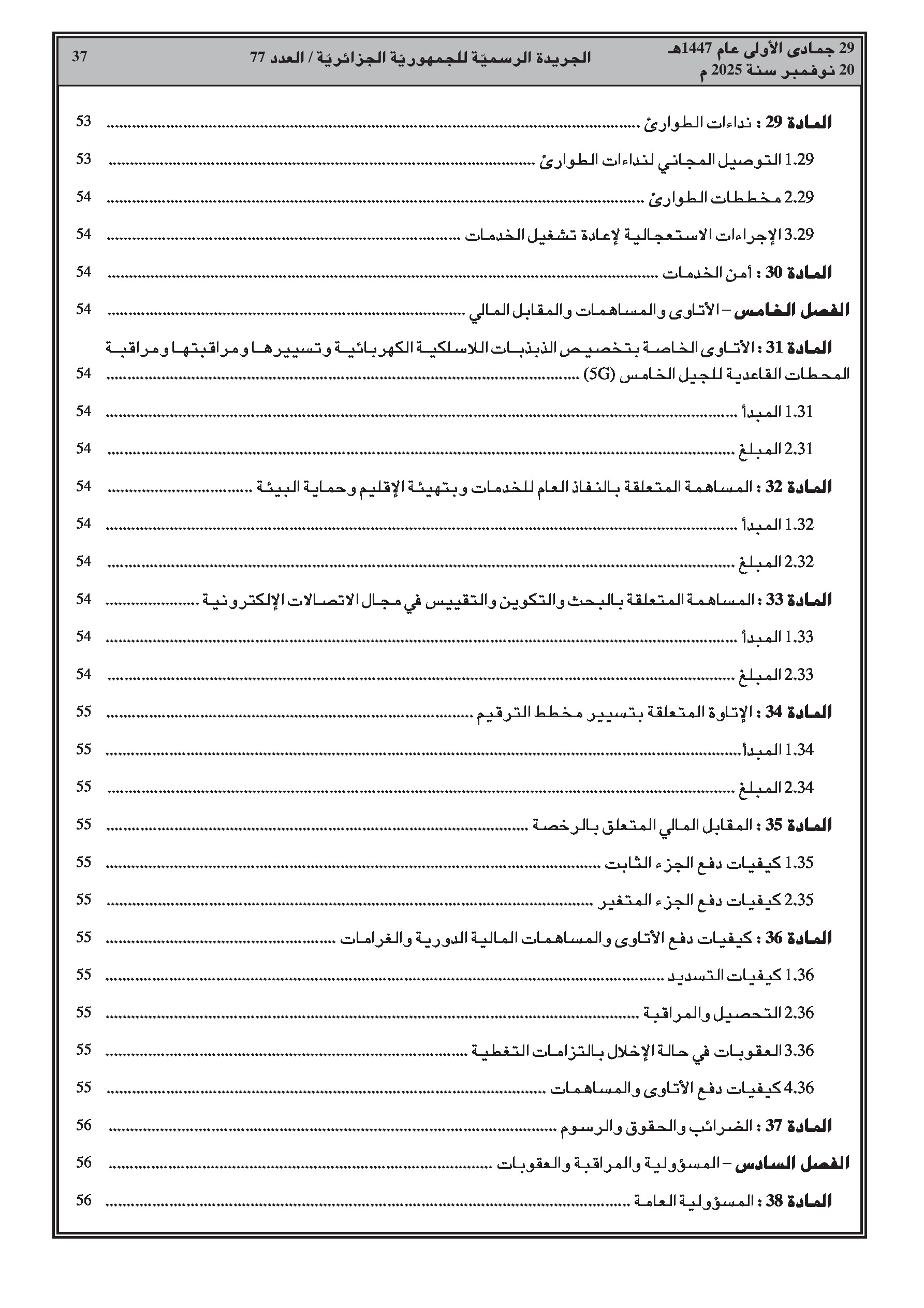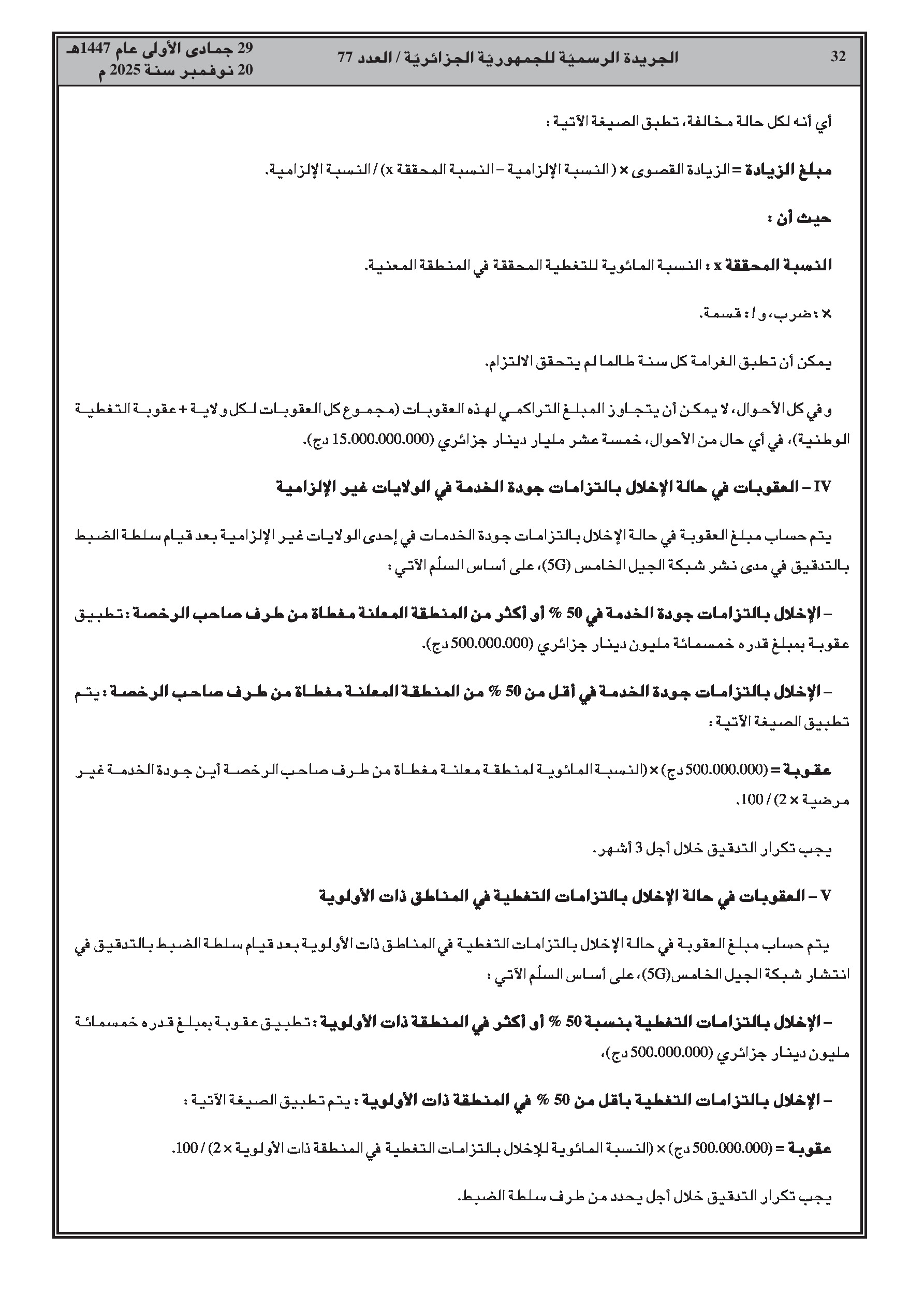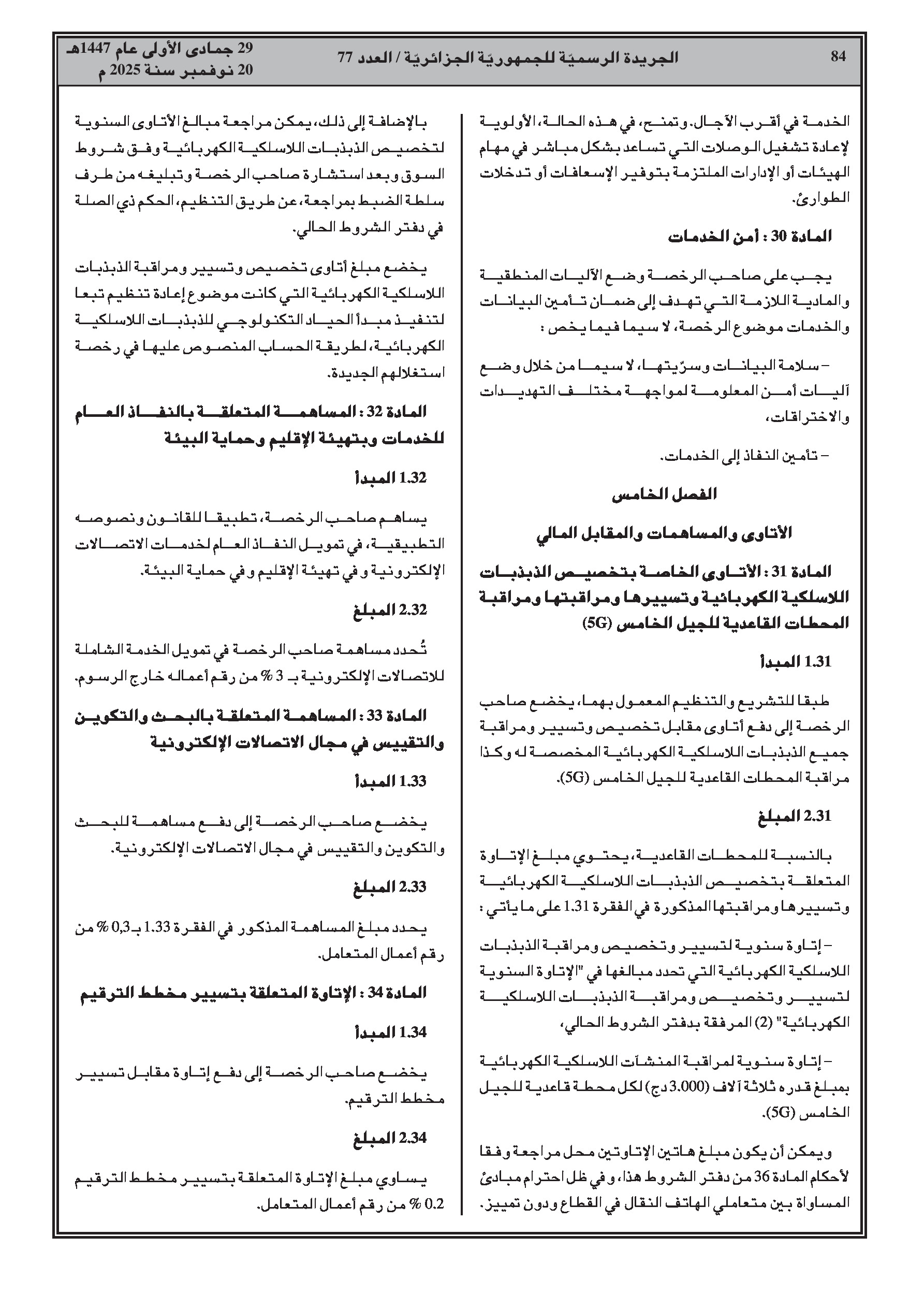 - تحدد دفاتر الشروط المرفقة الالتزامات التقنية، جودة الخدمة، وجدول التغطية التدريجي عبر الولايات على مدى عدة سنوات.