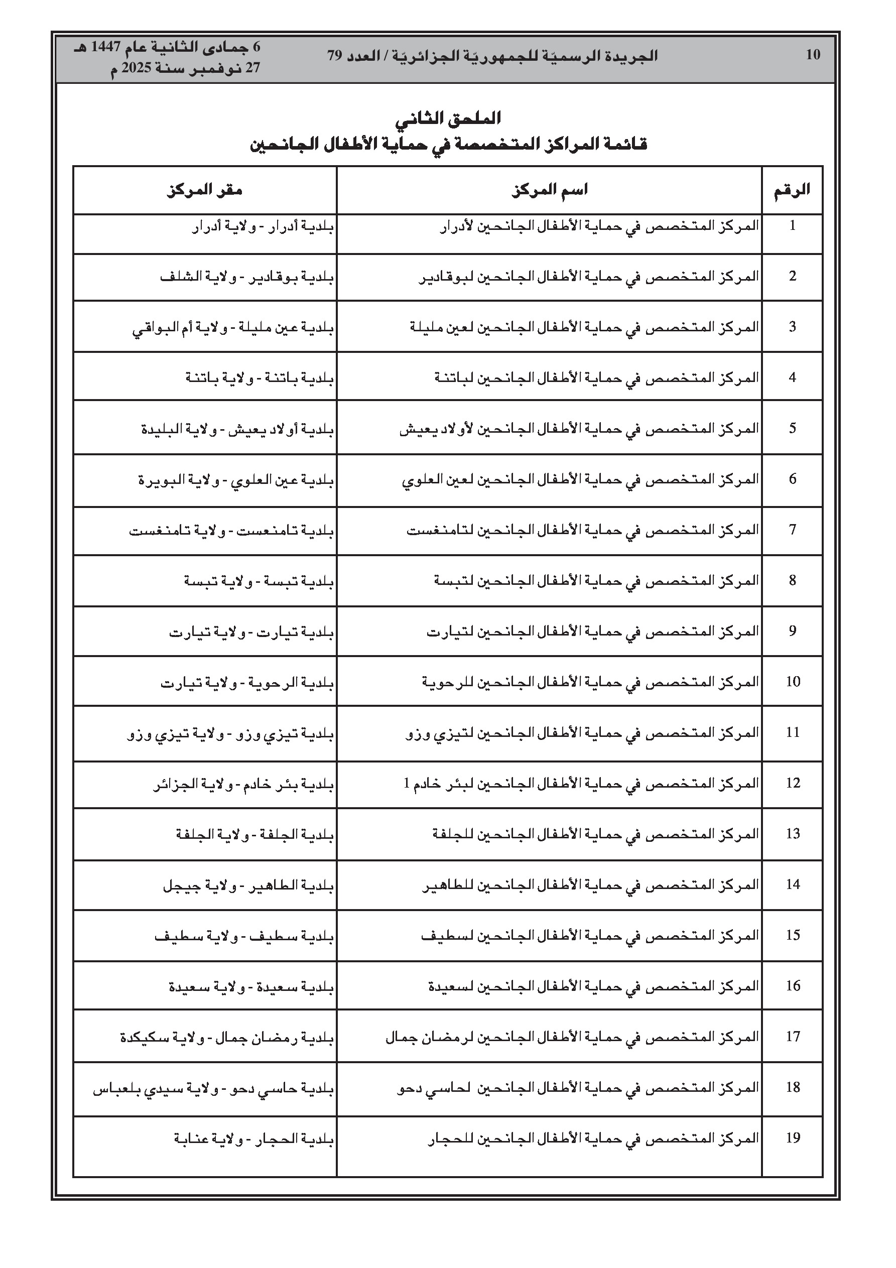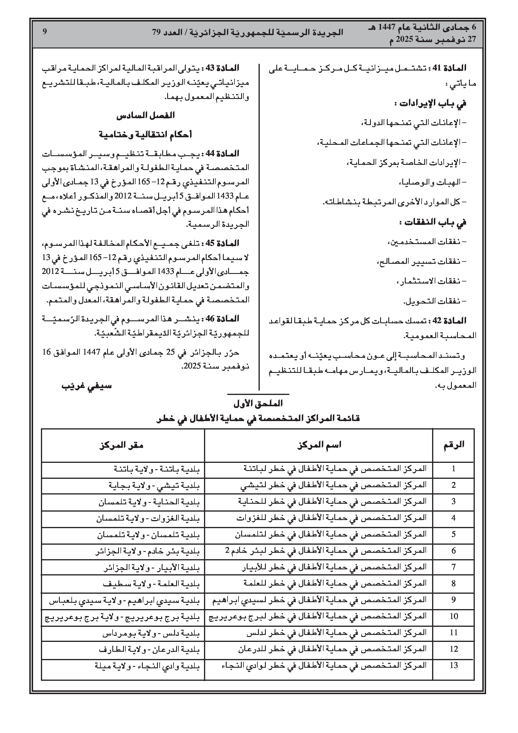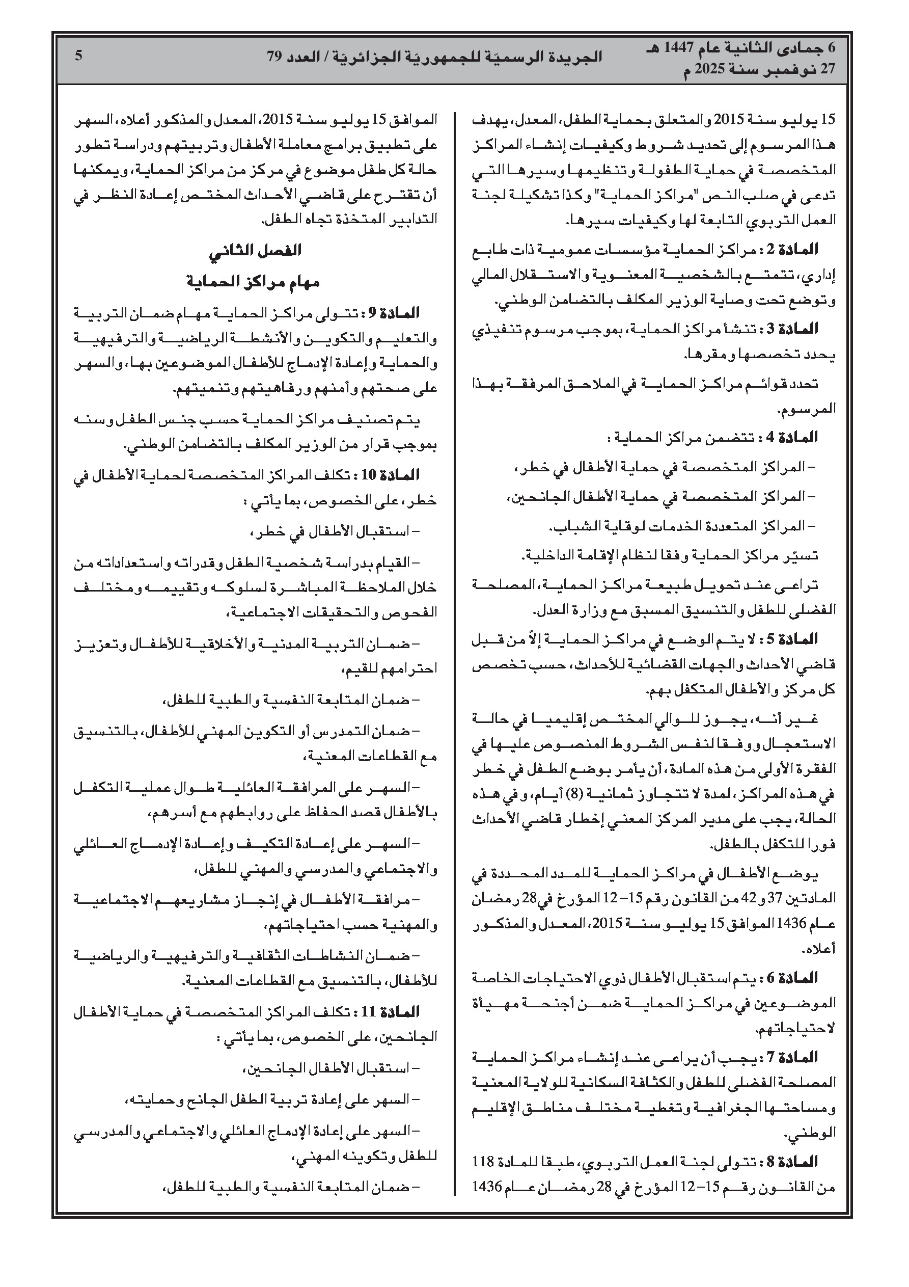 - تحديد كيفيات إنشاء وتنظيم المراكز المتخصصة في حماية الأطفال في خطر والجانحين.