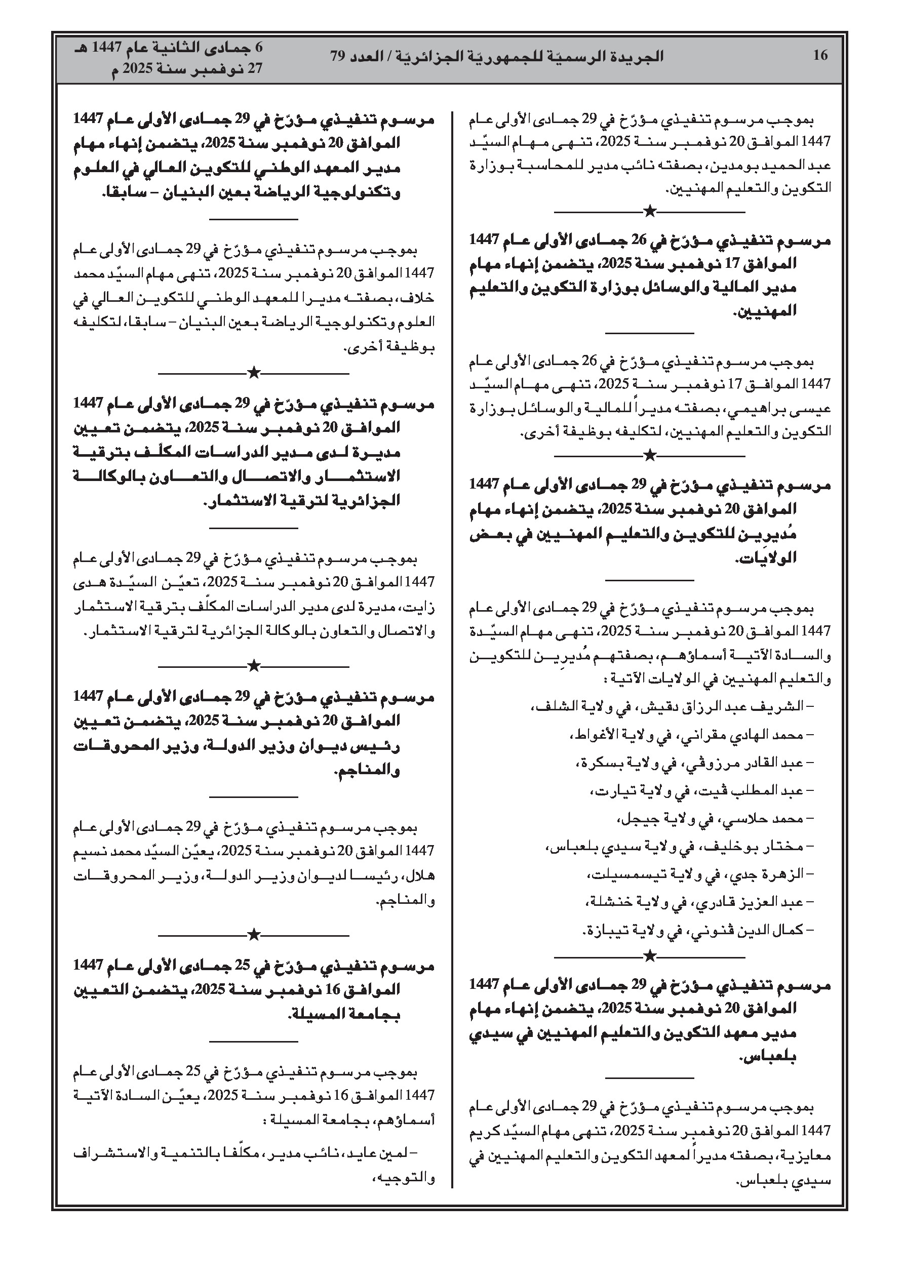 - تعيينات واسعة لمدراء معاهد التكوين المهني في عدة ولايات.