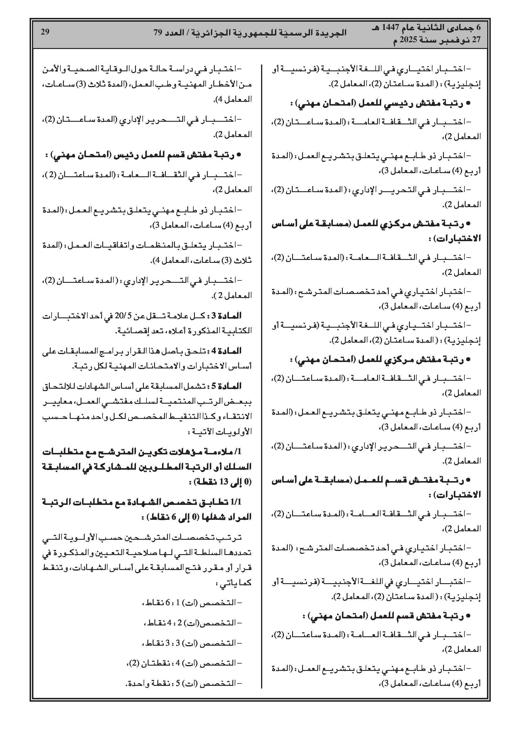 - شروط المسابقات لرتب: مفتش، مفتش رئيسي، ومفتش مركزي للعمل.