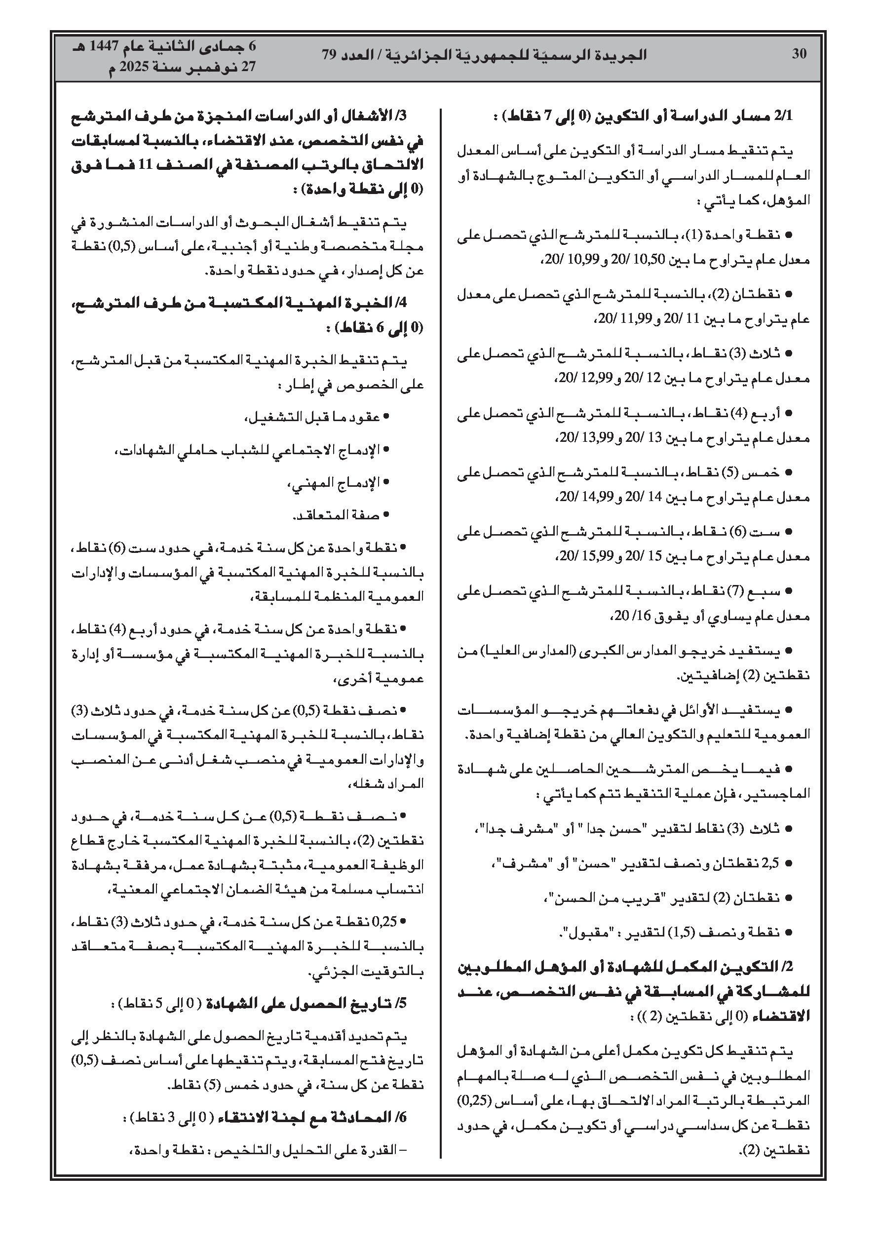 - معايير التنقيط للمسابقات على أساس الشهادة (تطابق التخصص، المسار الدراسي، الخبرة).
