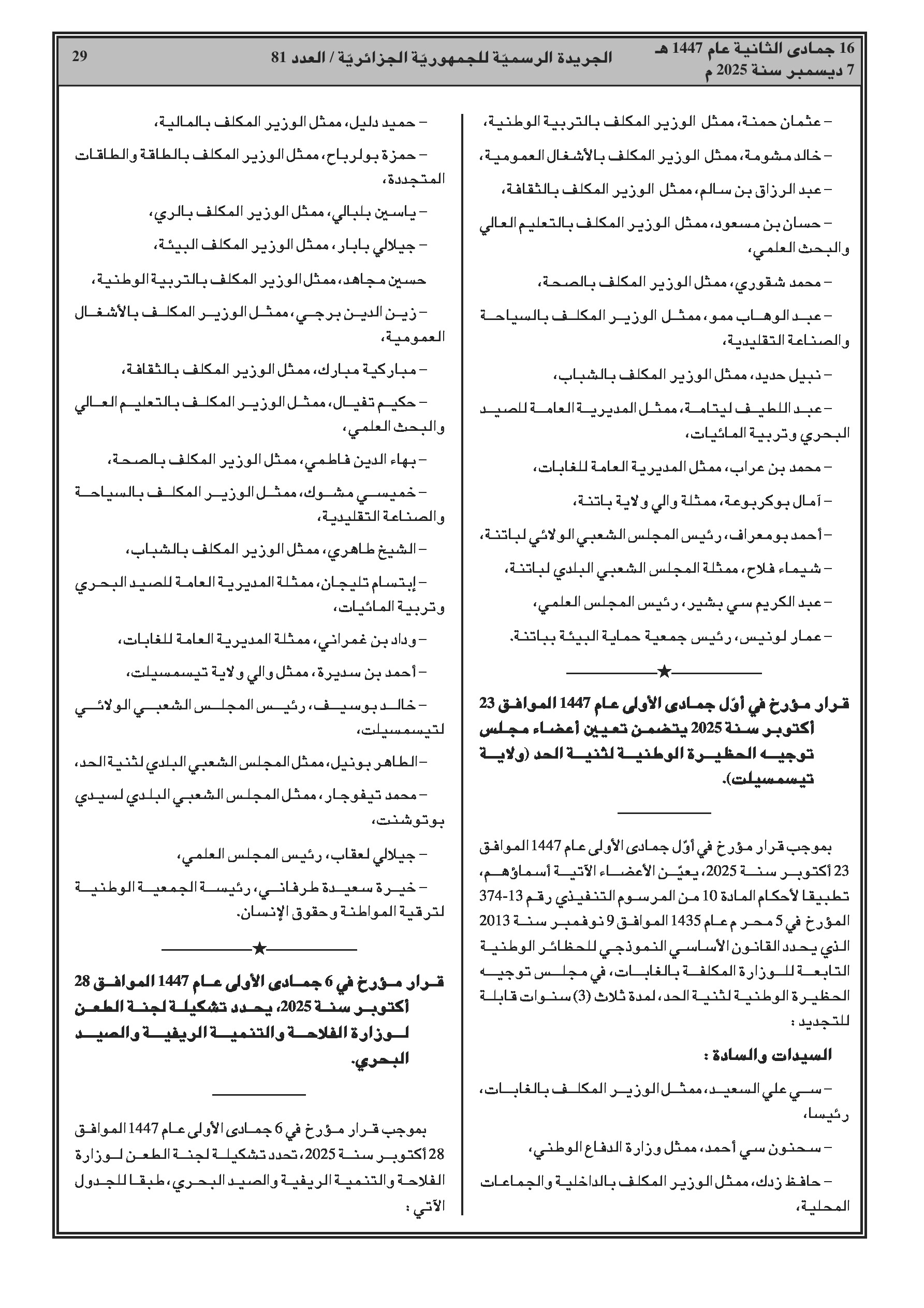 قرارات رئاسية بتعيين إطارات سامية وإنهاء مهام مسؤولين محليين، وتعيينات واسعة في سلك القضاء العسكري.