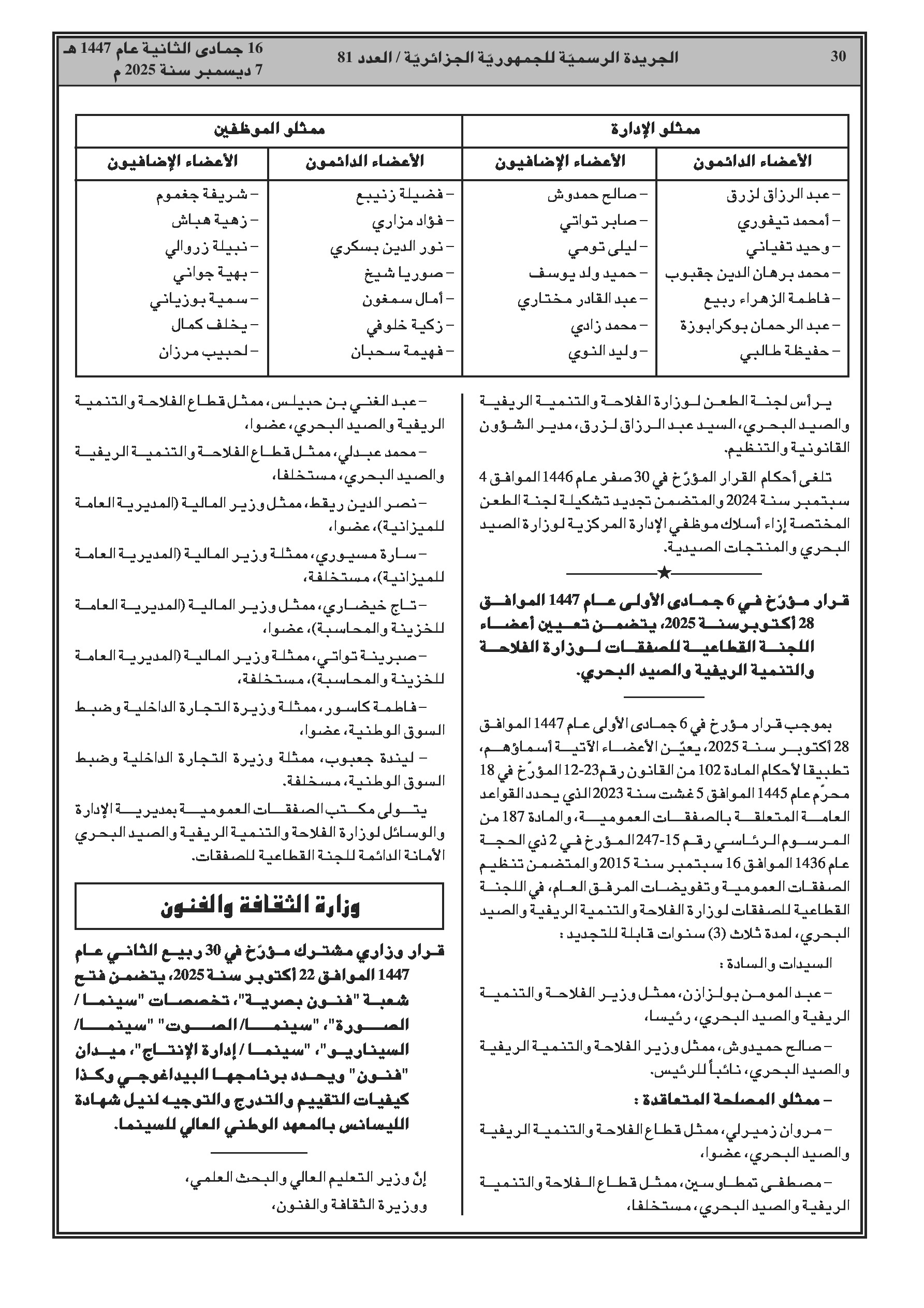 قرارات مشتركة تتعلق بالتكوين الفني العالي وحماية التراث الثقافي المادي.