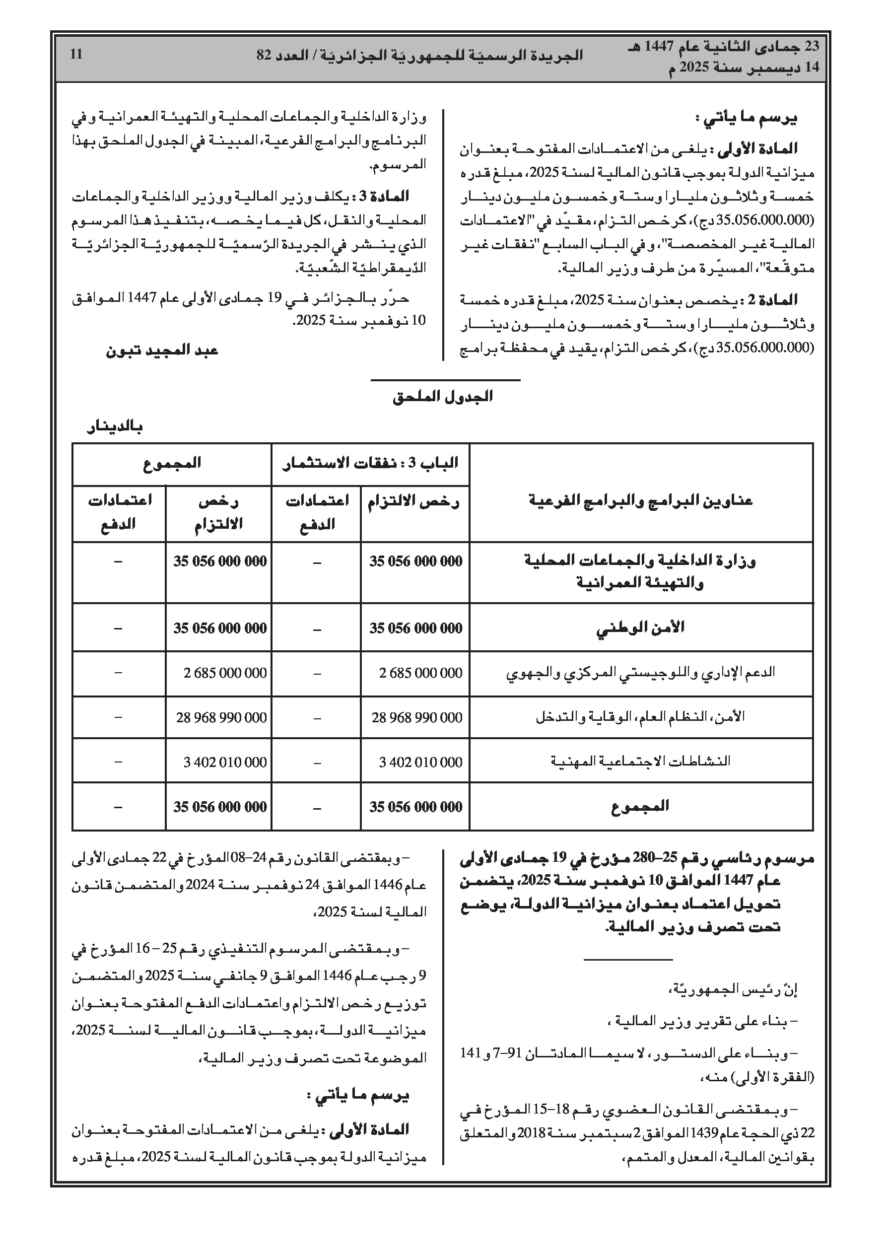 تعيين لجنة خاصة لجرد وتحويل ممتلكات وحقوق والتزامات ديوان رياض الفتح (المنحل) إلى ولاية الجزائر.