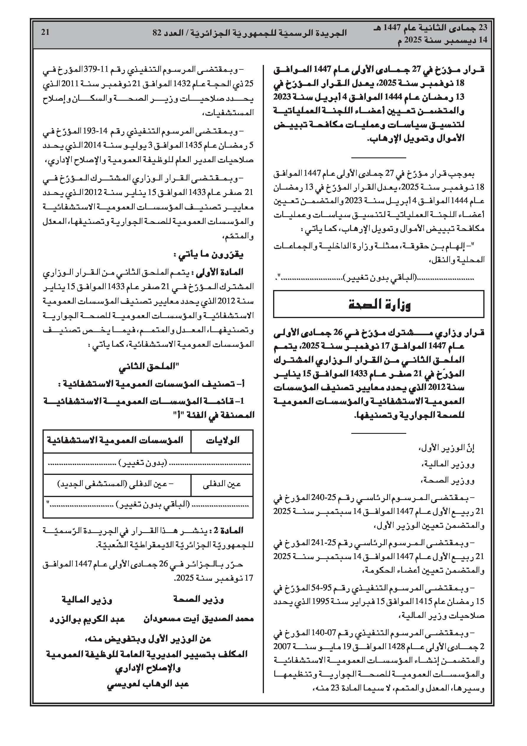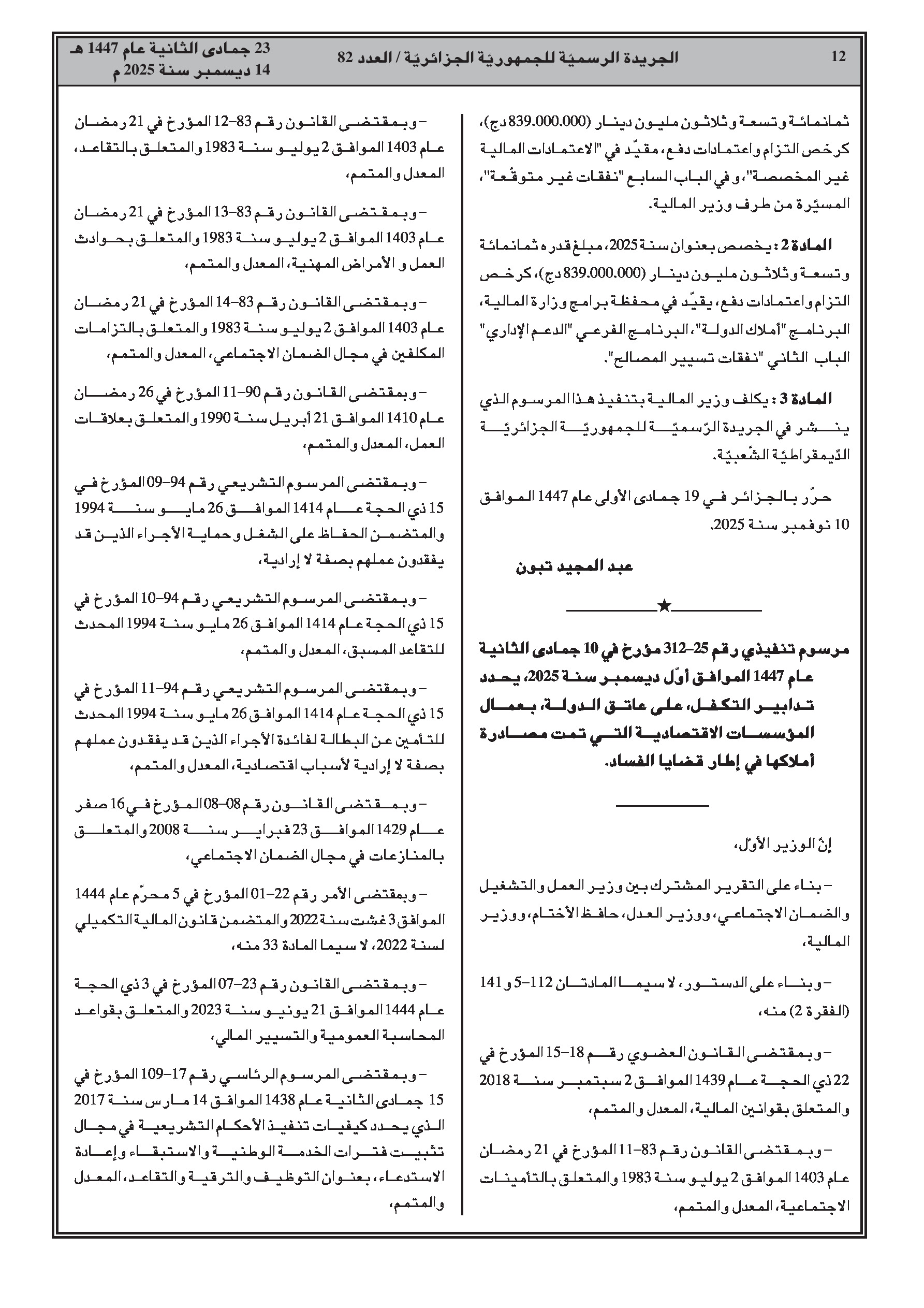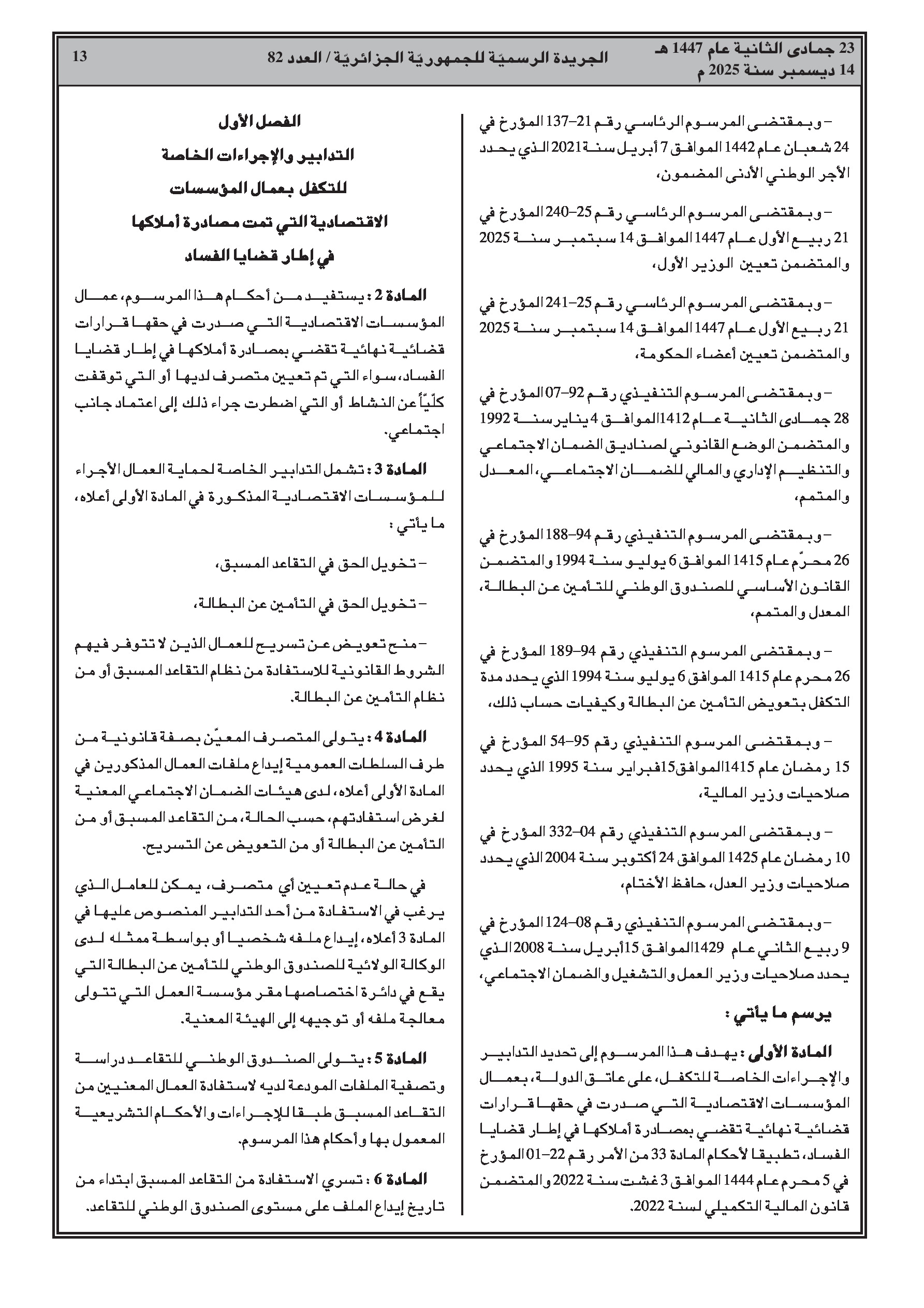 مرسوم تنفيذي يحدد إجراءات تكفل الدولة بعمال الشركات التي صودرت ممتلكاتها نهائياً، لضمان استقرارهم الاجتماعي والمهني.