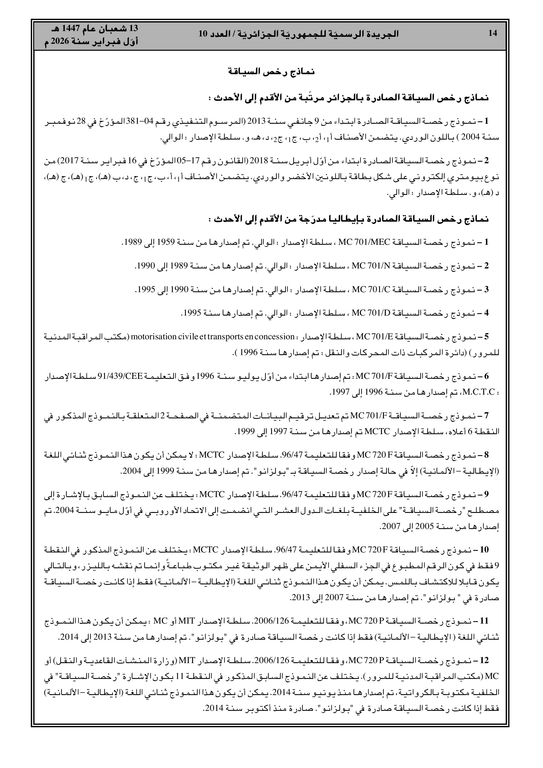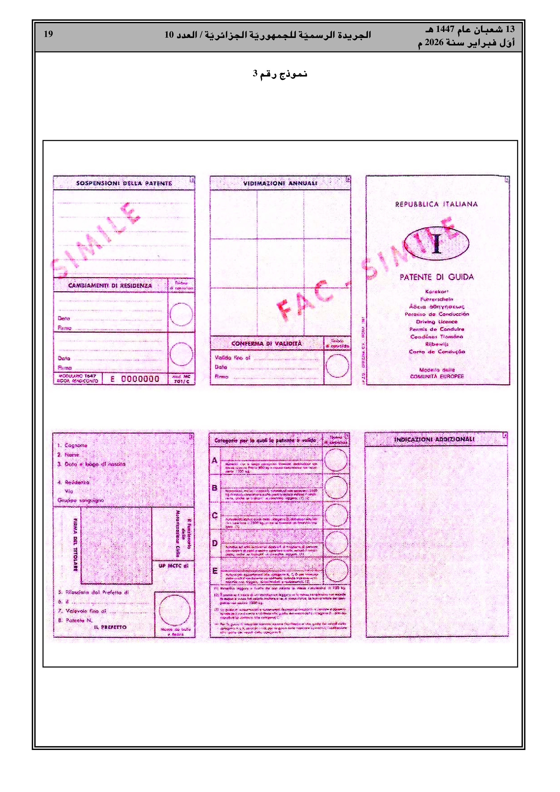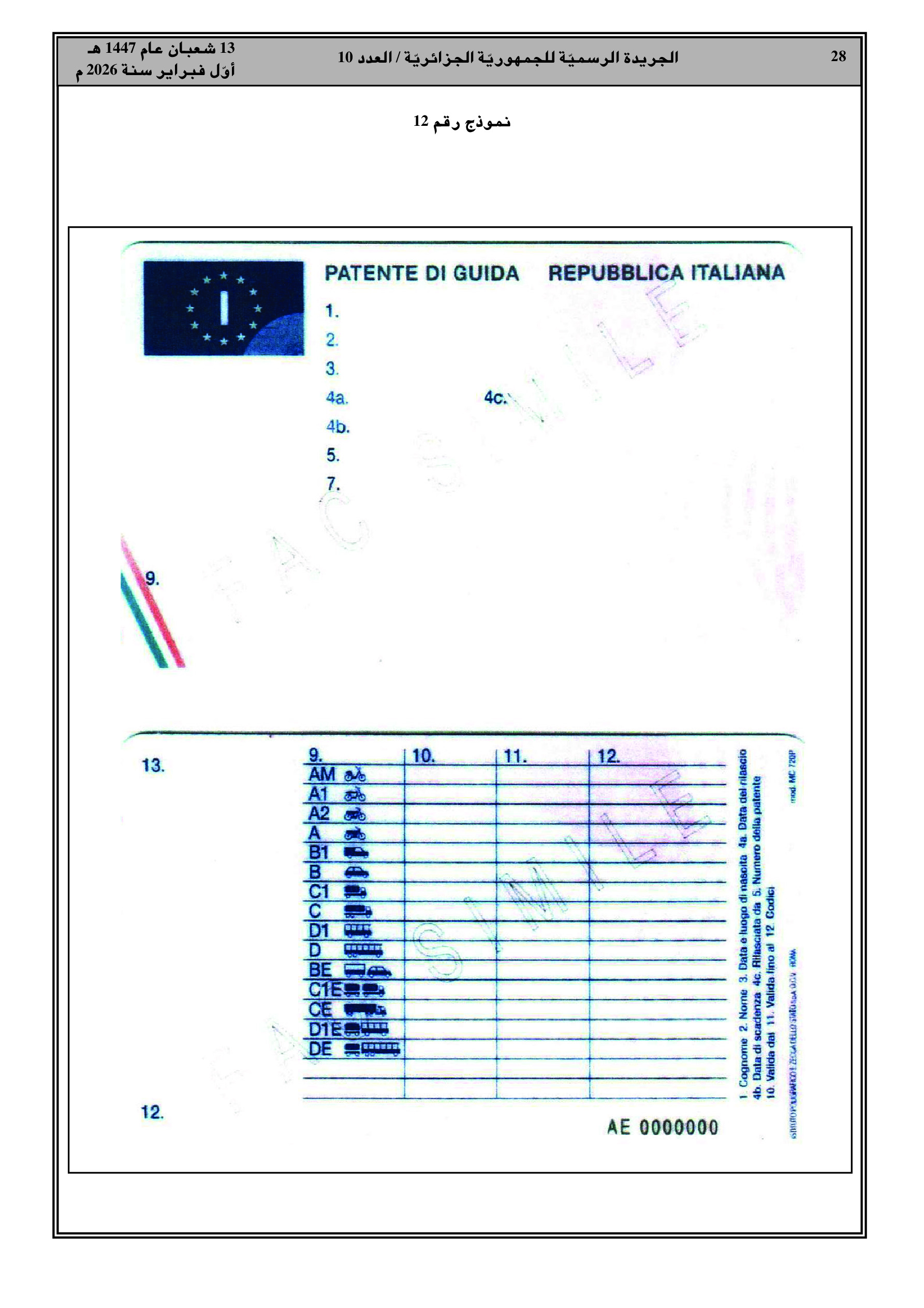 مرسوم رئاسي يصادق على الاتفاقية بين الجزائر وإيطاليا حول الاعتراف المتبادل برخص السياقة واستبدالها.