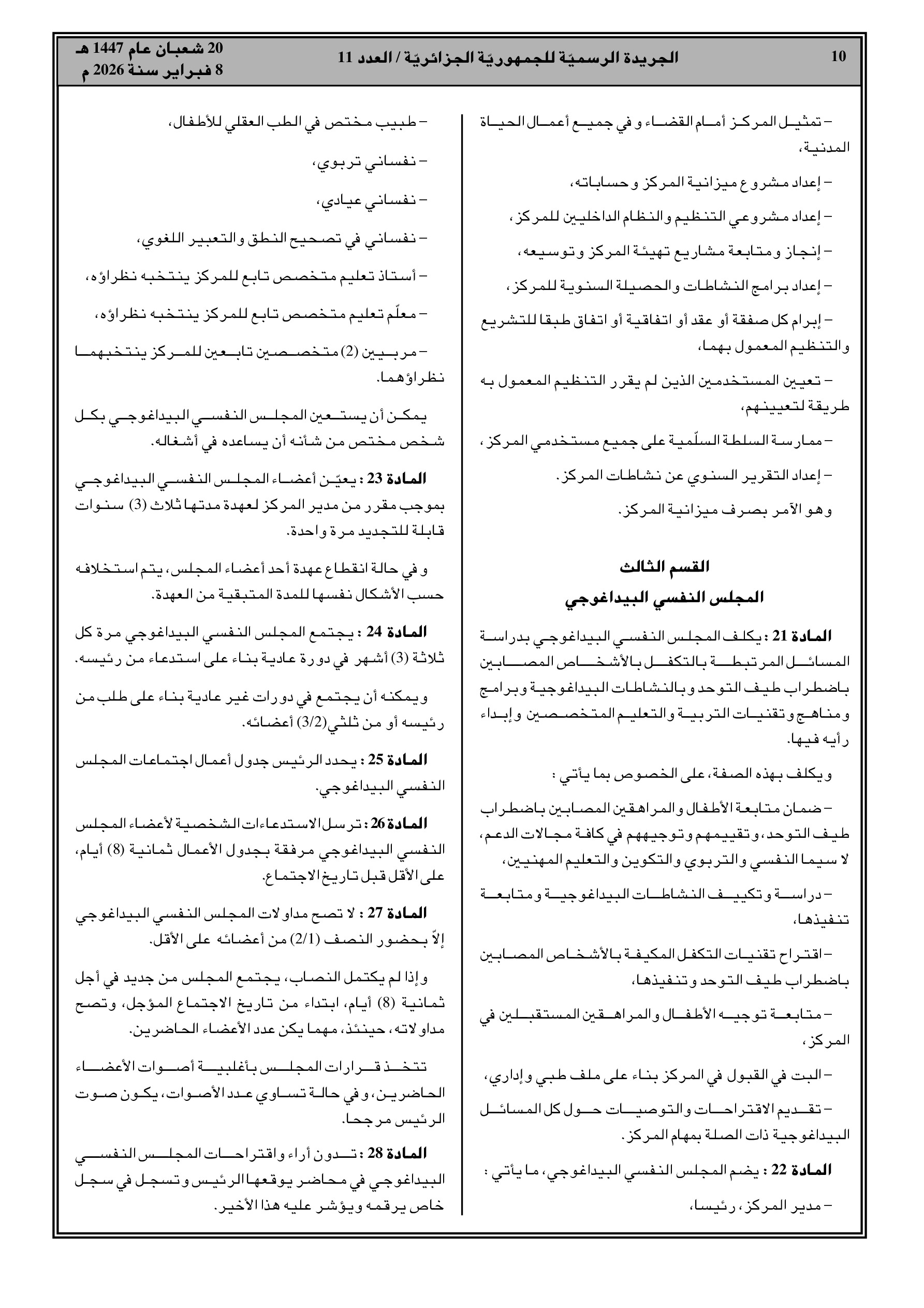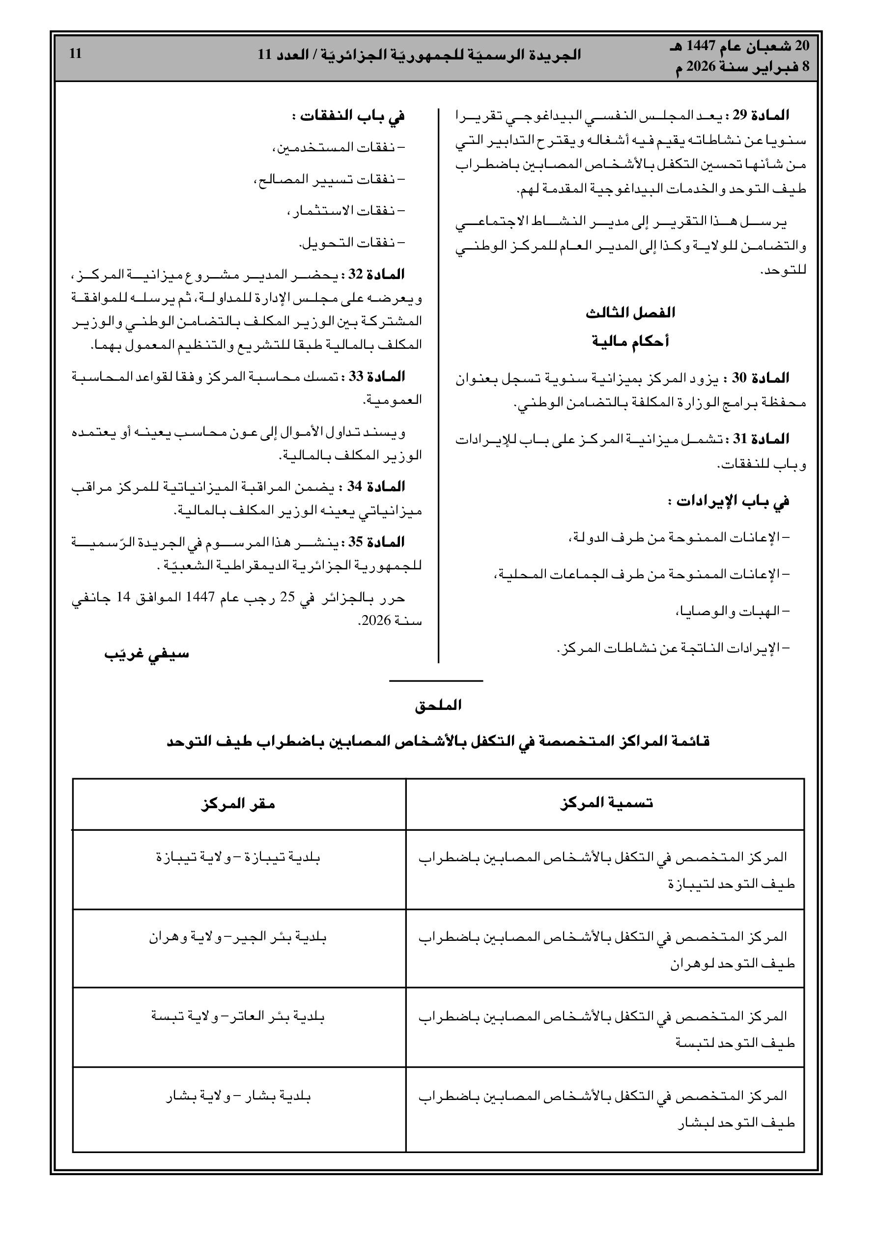مرسوم تنفيذي رقم 26-82: إنشاء مراكز متخصصة للتكفل بالأطفال (من 3 سنوات) والمراهقين المصابين بطيف التوحد في تيبازة، وهران، تبسة، وبشار.