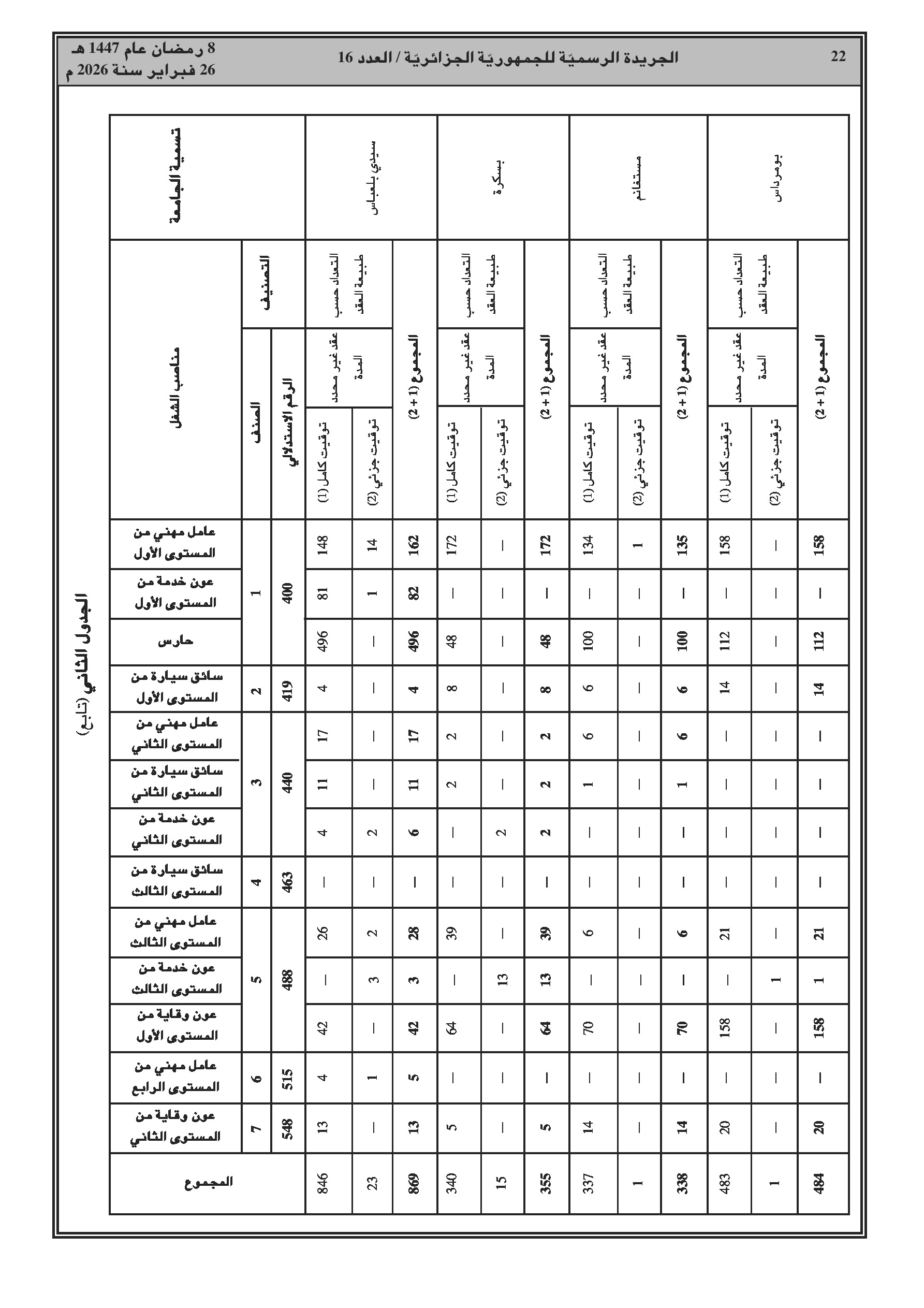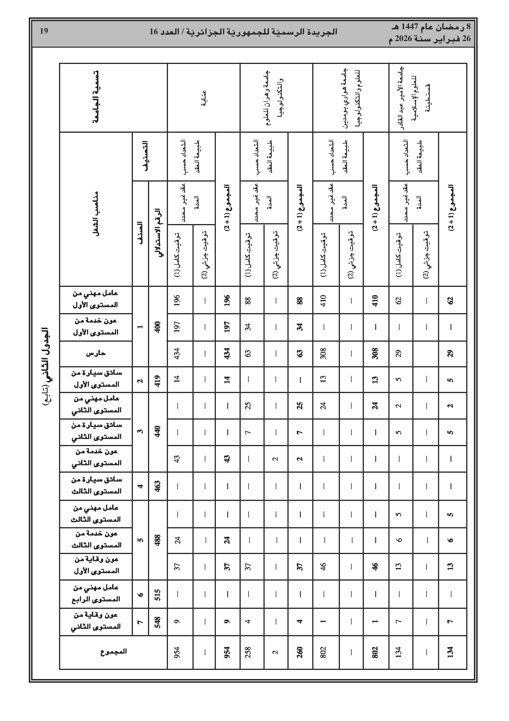 قرار وزاري يحدد تعداد مناصب الشغل وتصنيفها للعمال المهنيين وأعوان الخدمة في المؤسسات الجامعية.