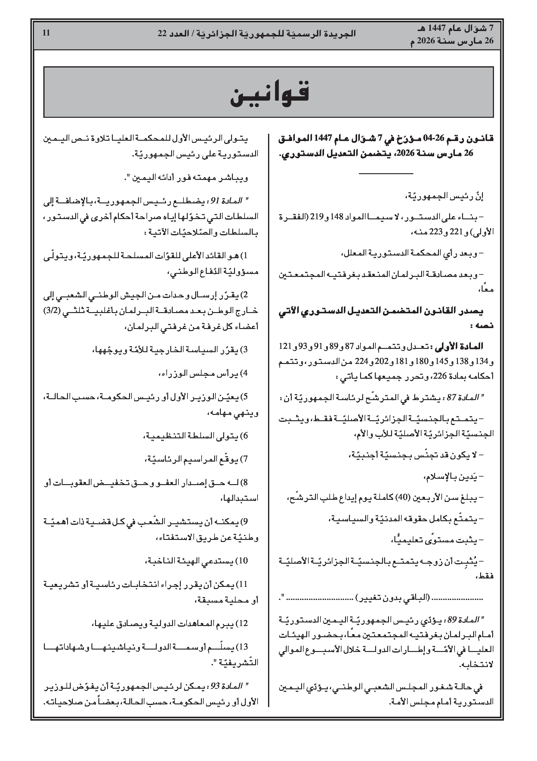 التعديل الدستوري وتدابير العفو بمناسبة عيد الفطر
