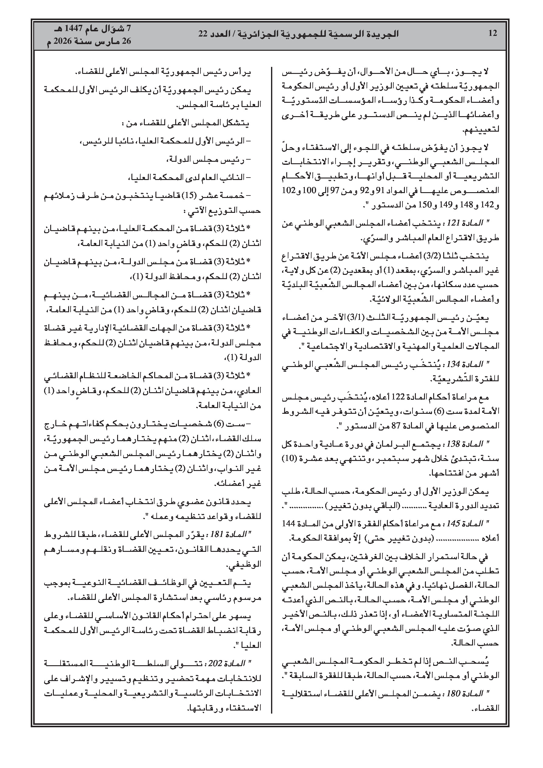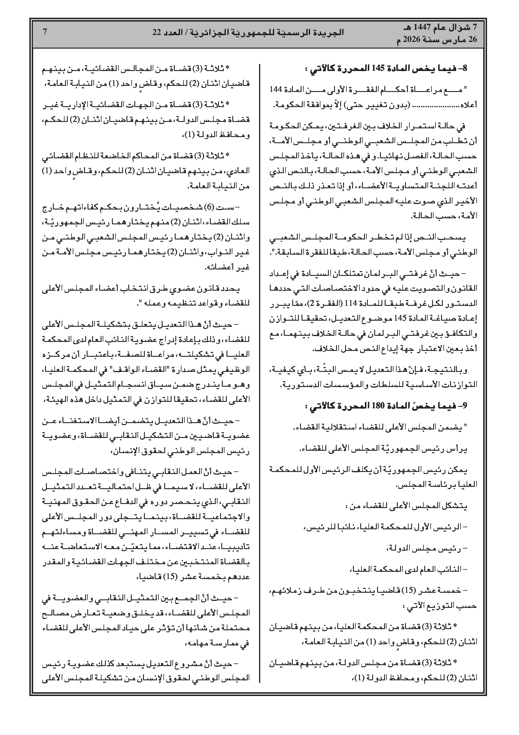 - تعديل تشكيلة المجلس الأعلى للقضاء ومجلس الأمة.