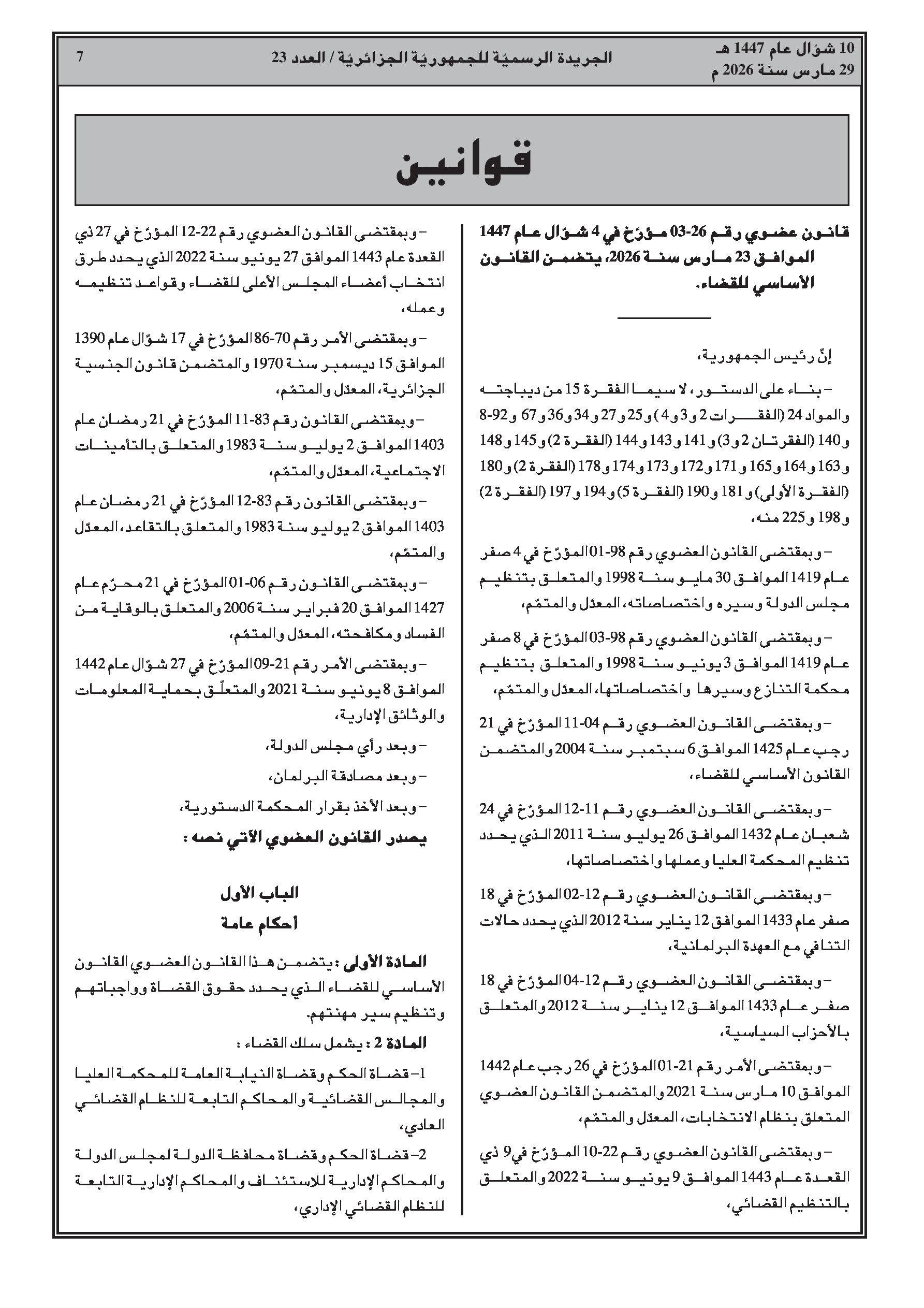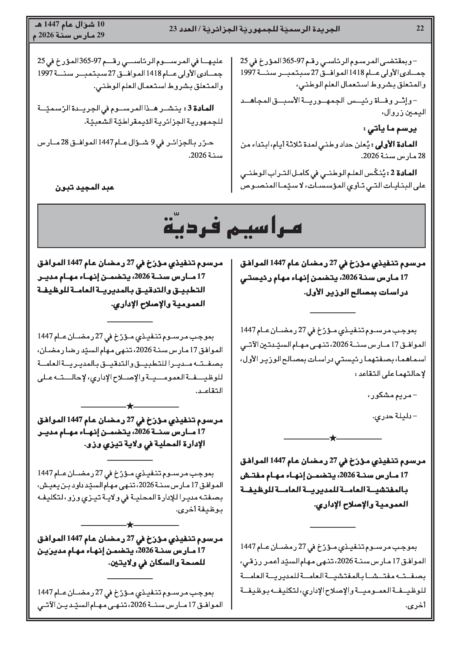 العدد 23 الأمانة العامة للحكومة الجزائرية