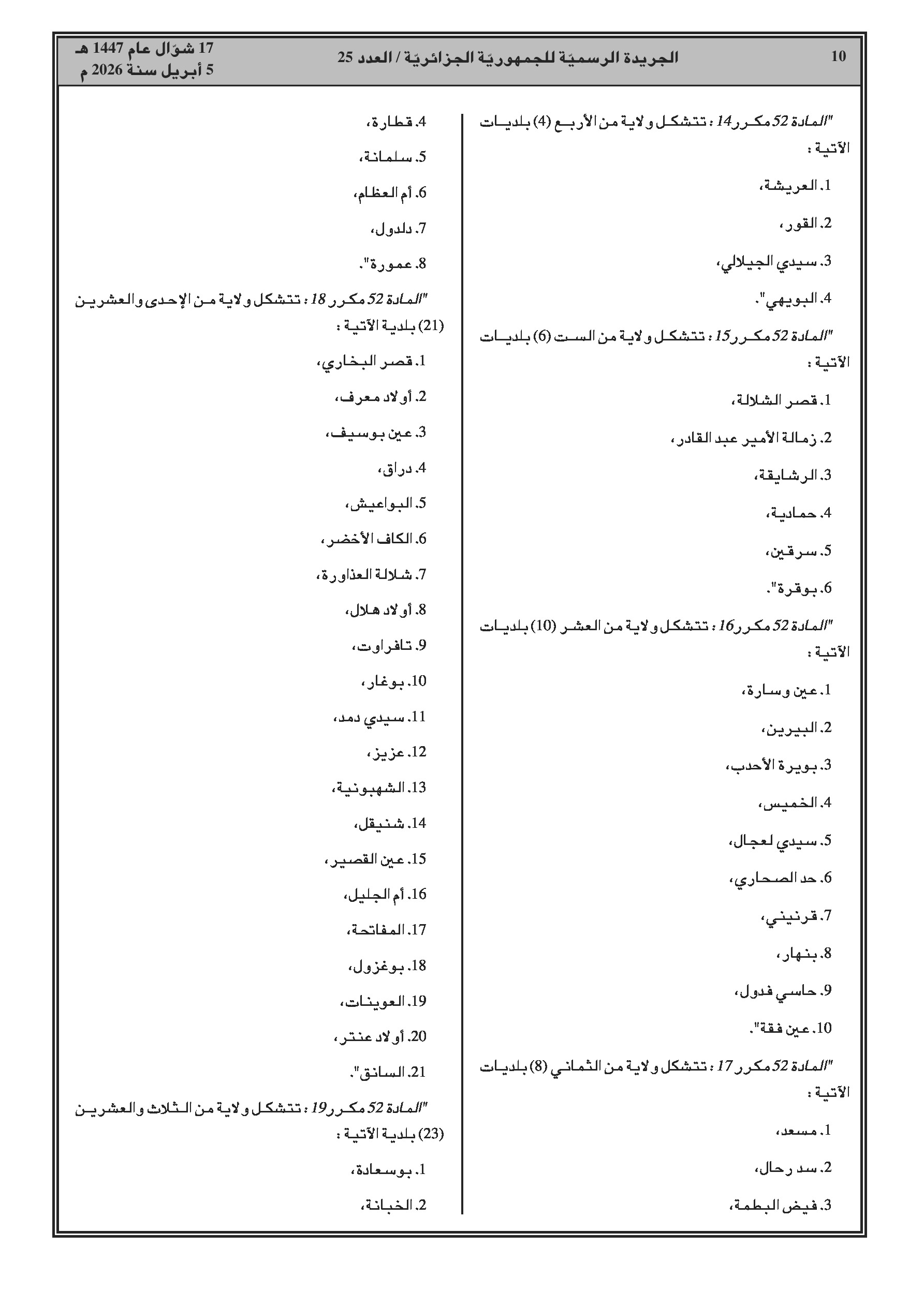 - رفع عدد الولايات إلى 69 ولاية و1541 بلدية.