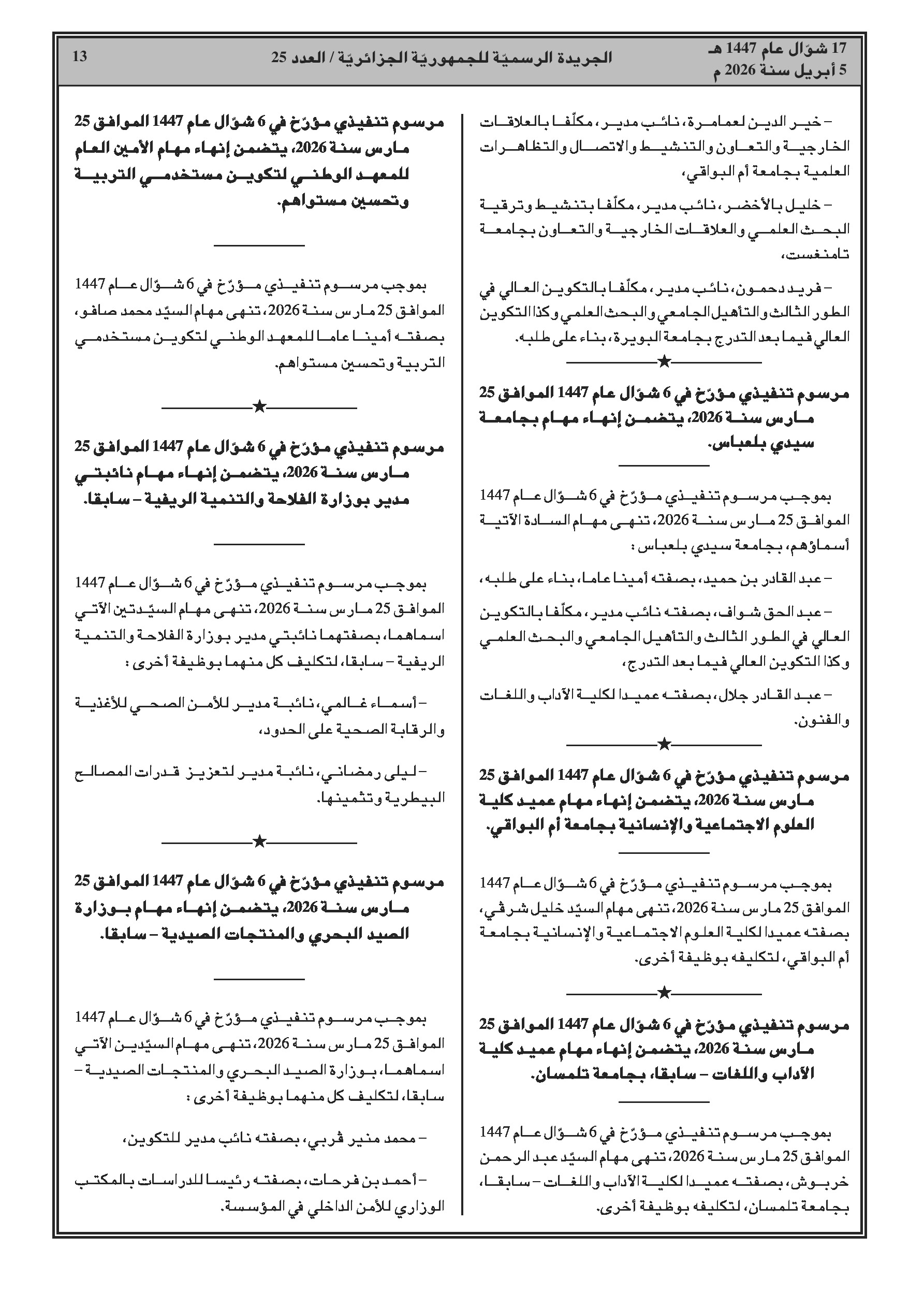 - تعيين وإعفاء نواب مدراء وعمداء كليات في عدد من الجامعات الوطنية.