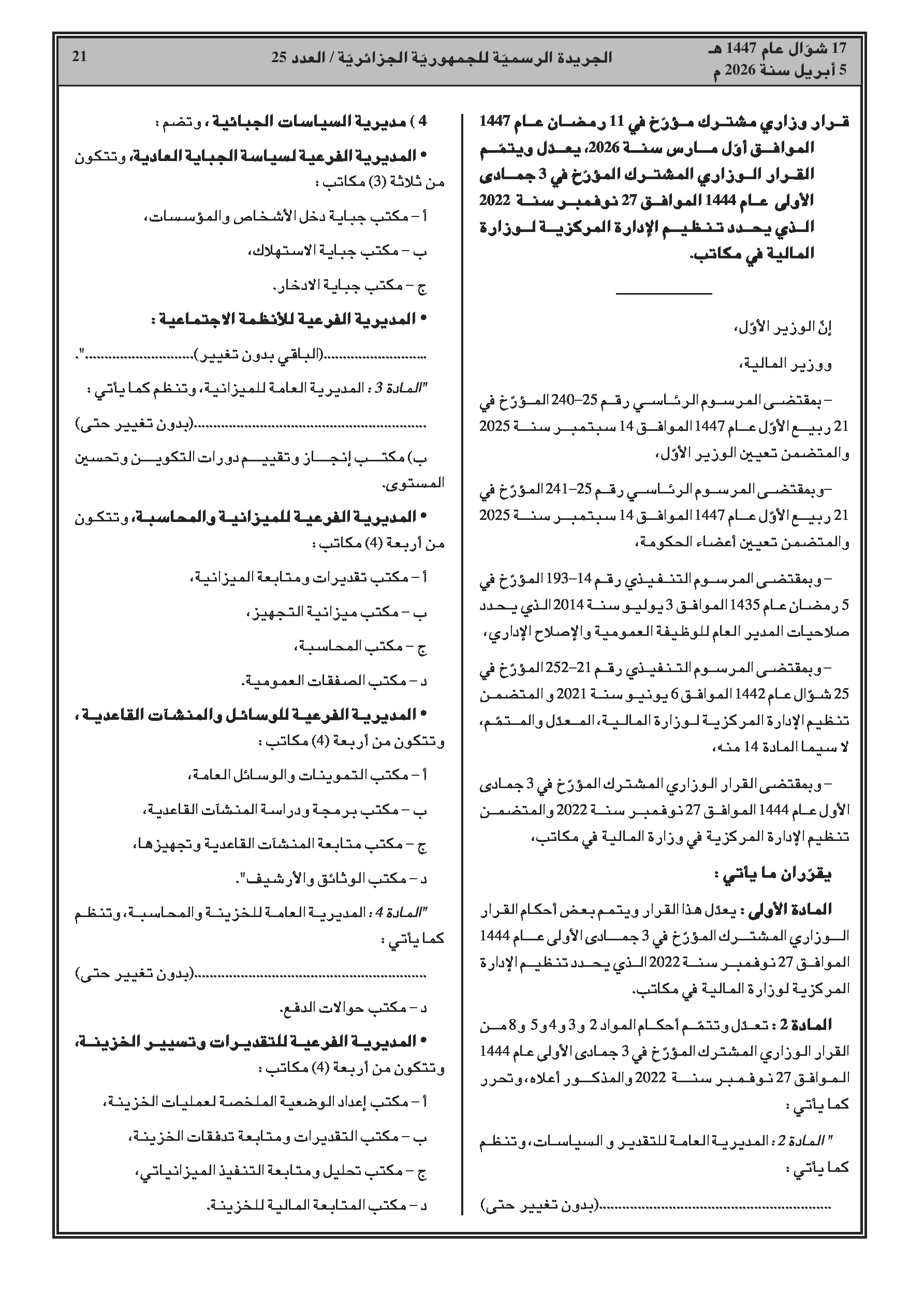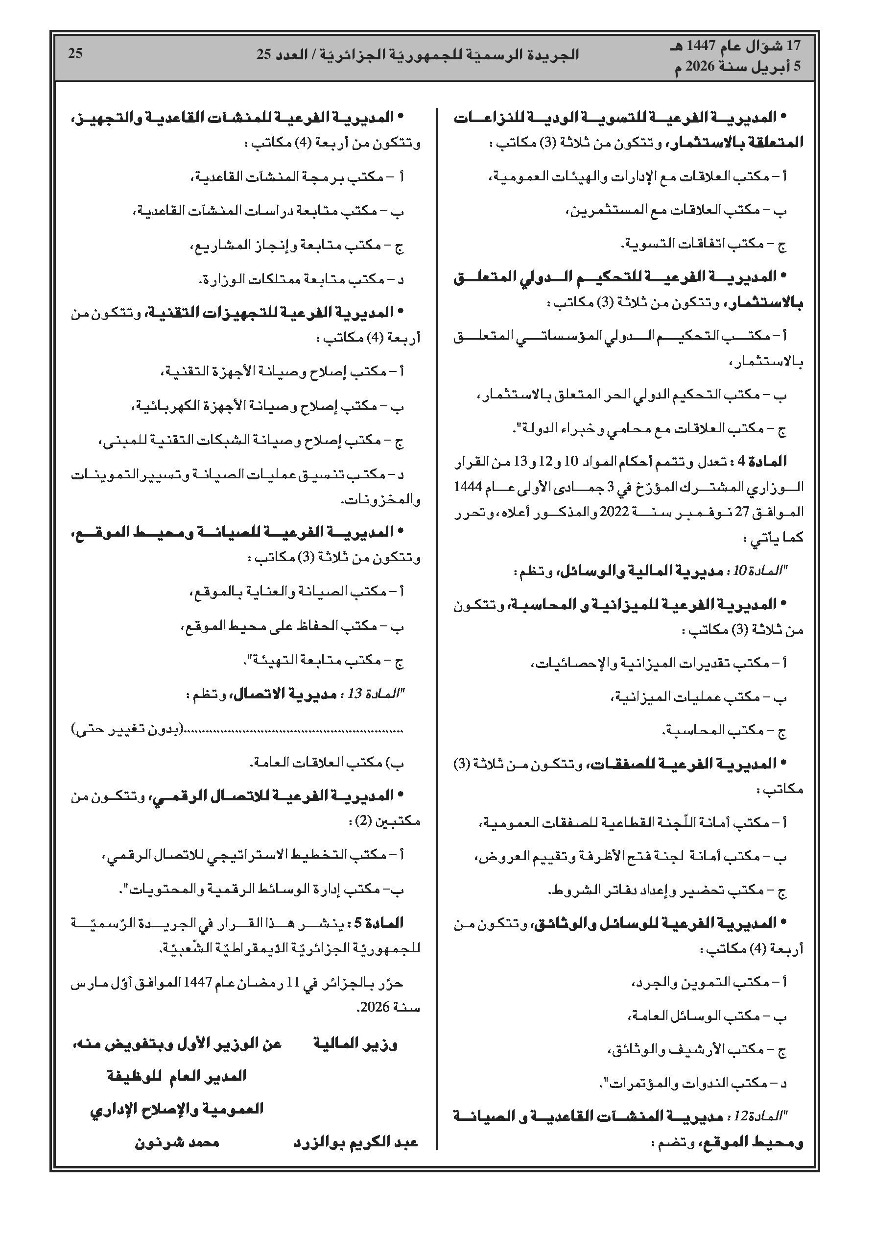 العدد 25 الأمانة العامة للحكومة الجزائرية