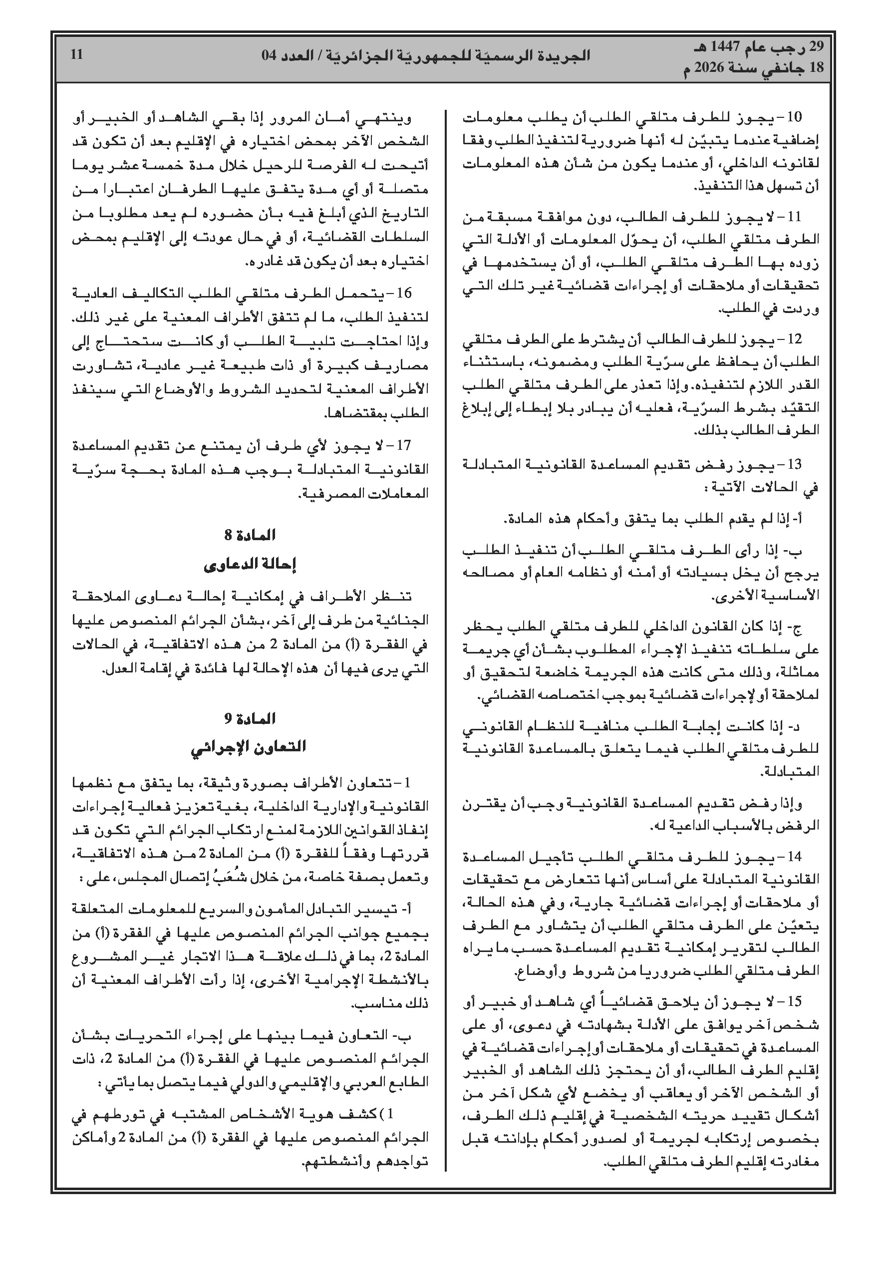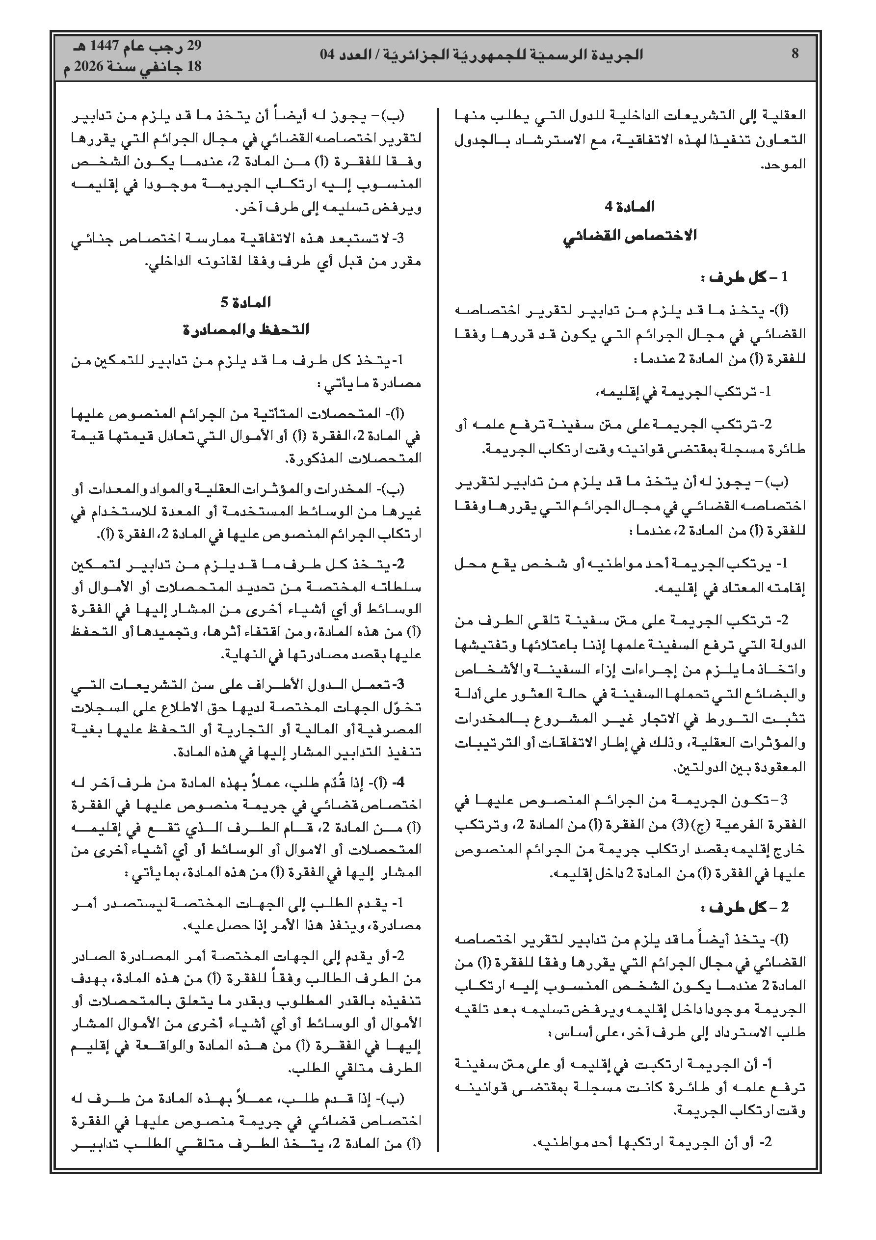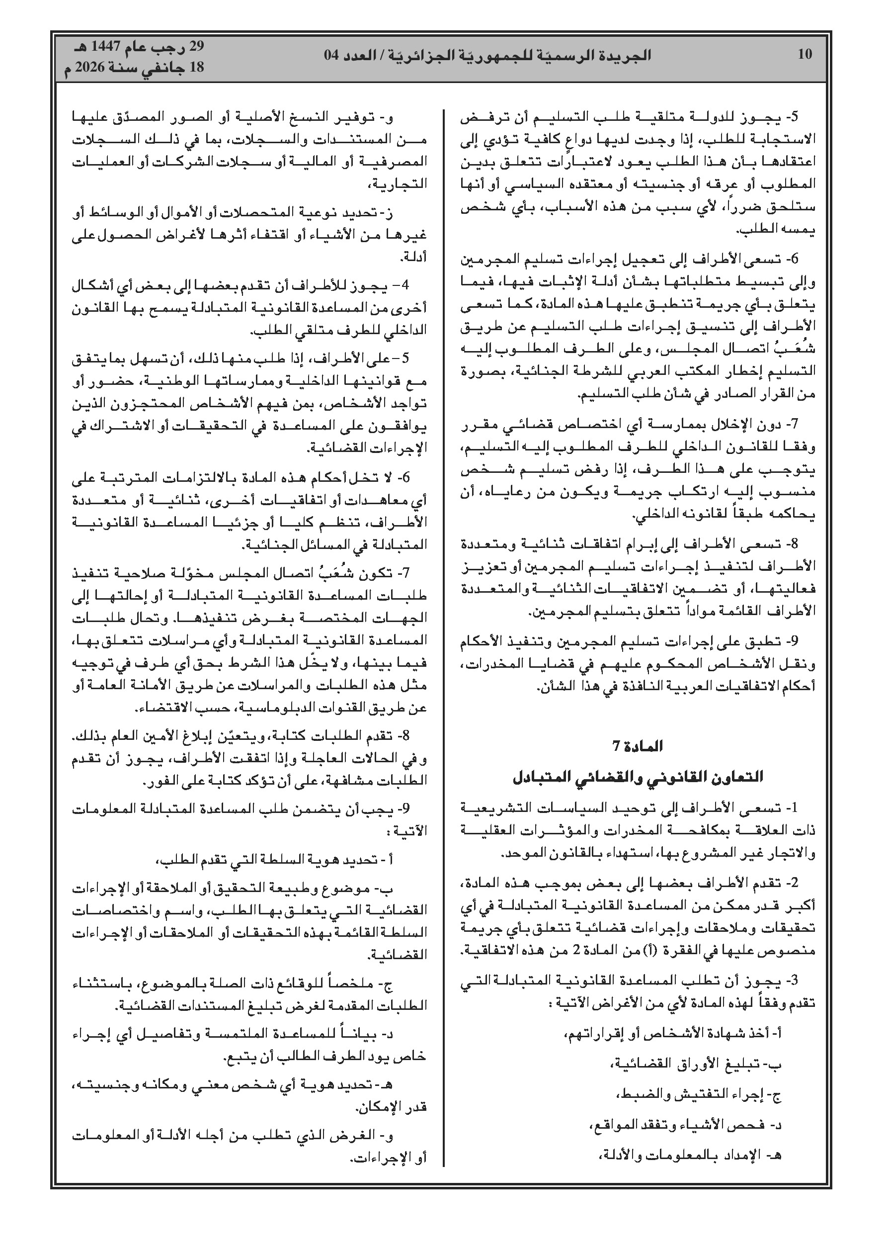 انضمام الجزائر للاتفاقية العربية لمكافحة الاتجار غير المشروع بالمخدرات والمؤثرات العقلية.