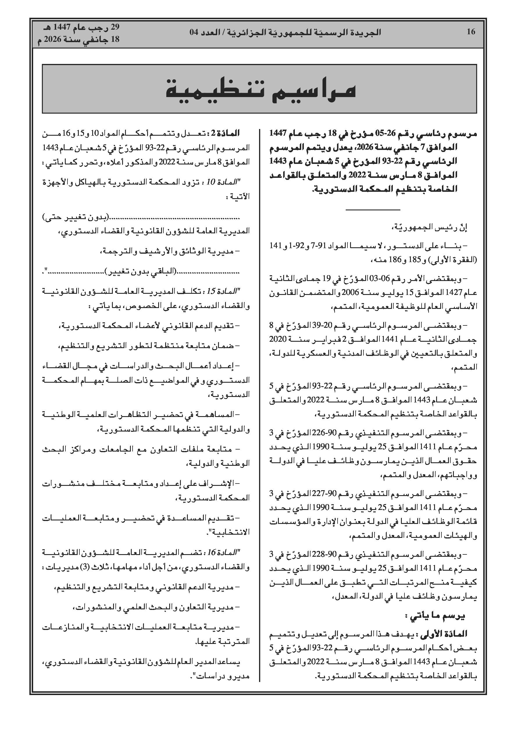 تعديل القواعد المتعلقة بتنظيم المحكمة الدستورية واستحداث مديريات جديدة.